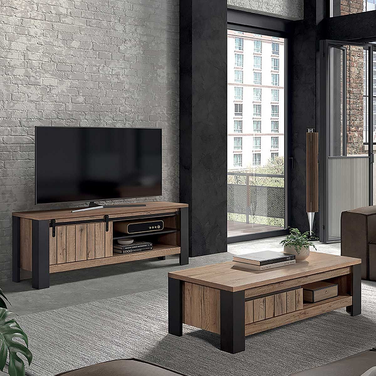 CLODIUS - Ensemble Salon Meuble TV et Table Basse 1 Tiroir et 1 Niche