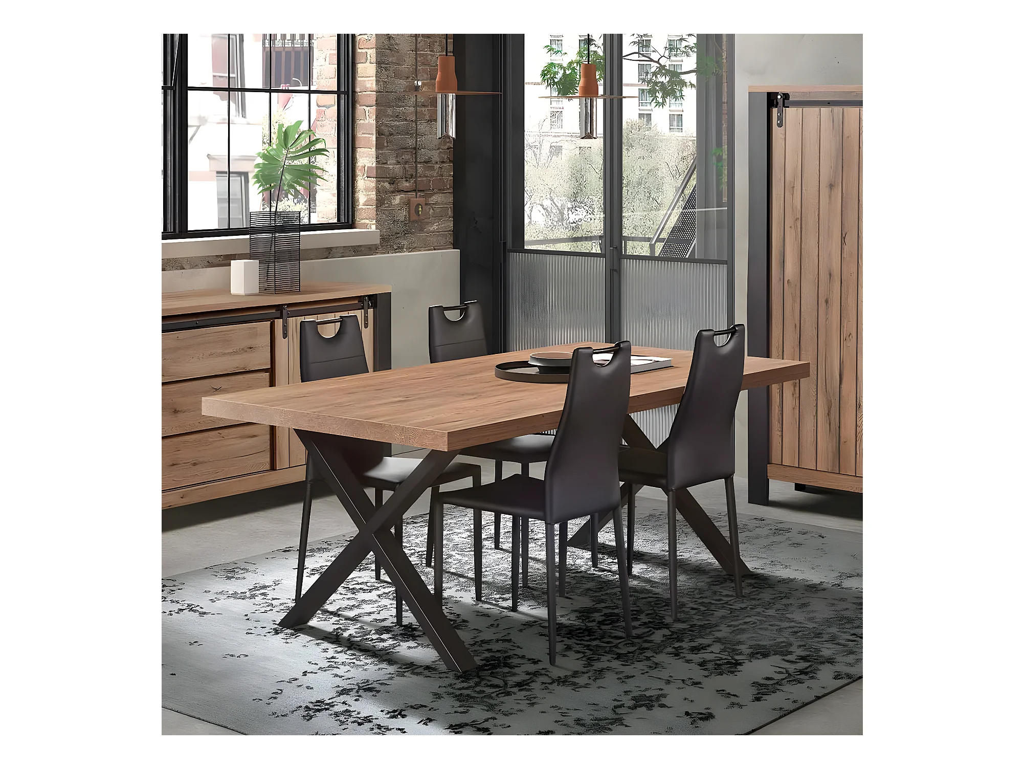 CLODIUS - Table 170cm Aspect Bois Piètement X Métal Noir