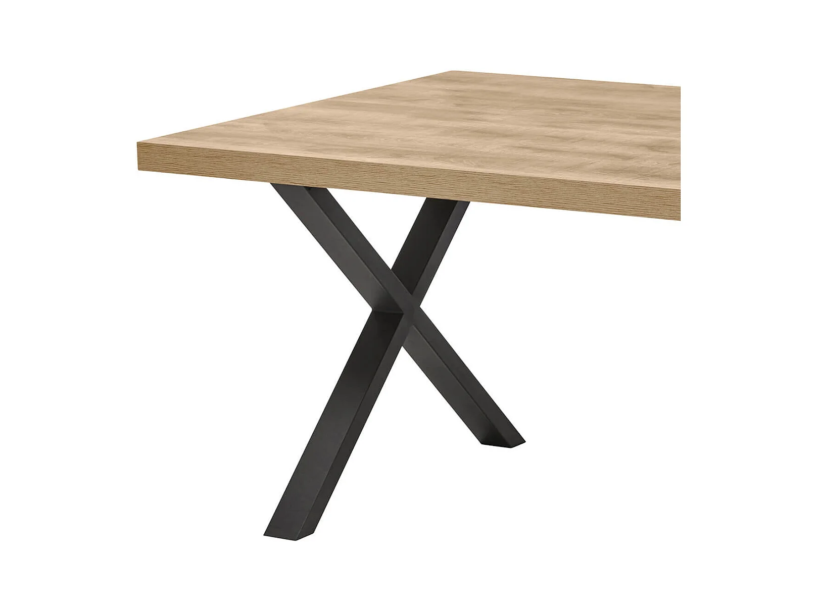 CLODIUS - Table 200cm Aspect Bois Piètement X Métal Noir
