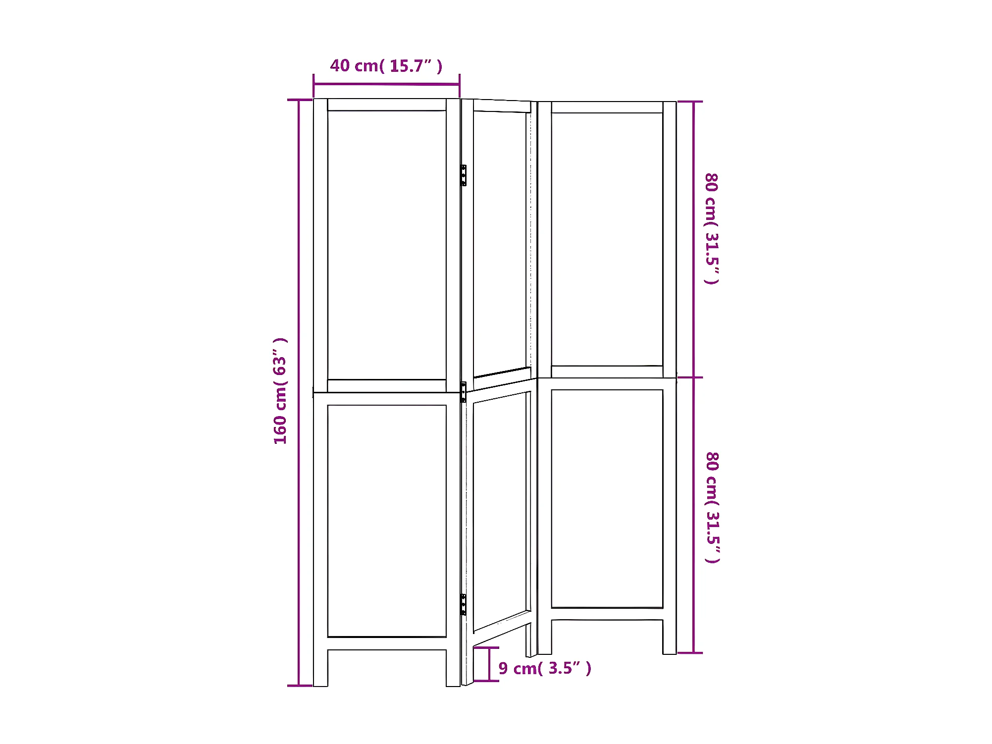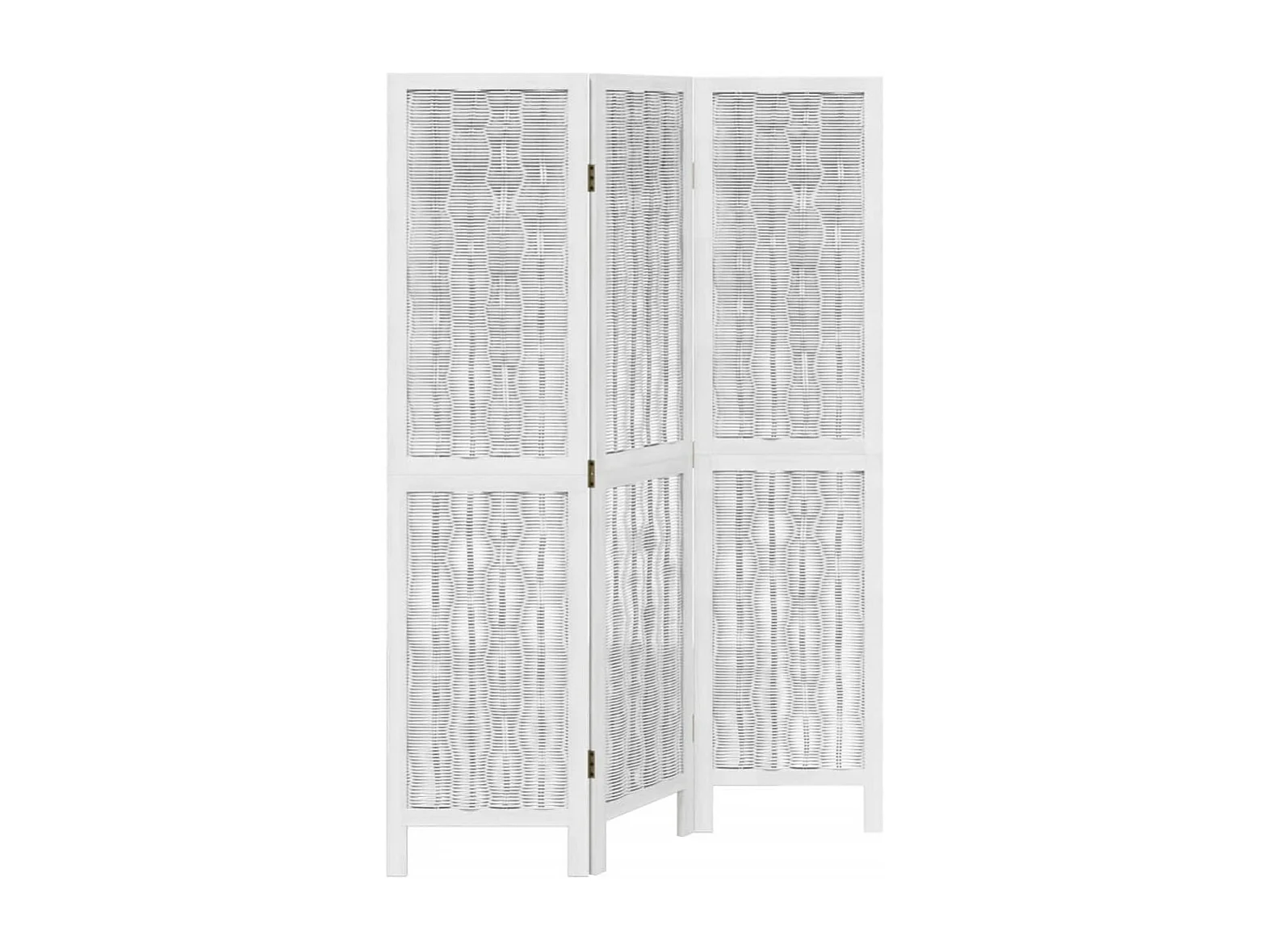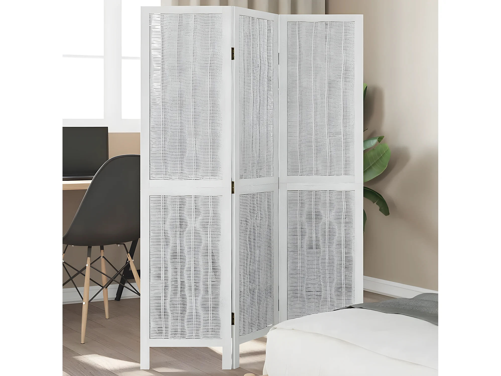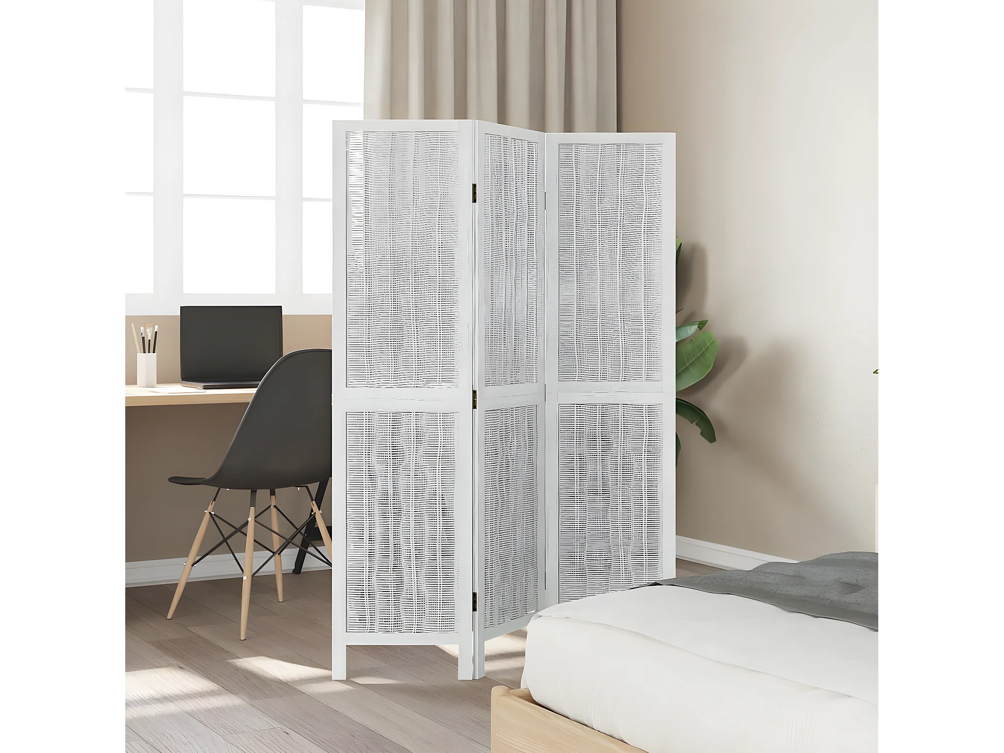 Cloison de séparation 3 panneaux blanc bois de paulownia massif