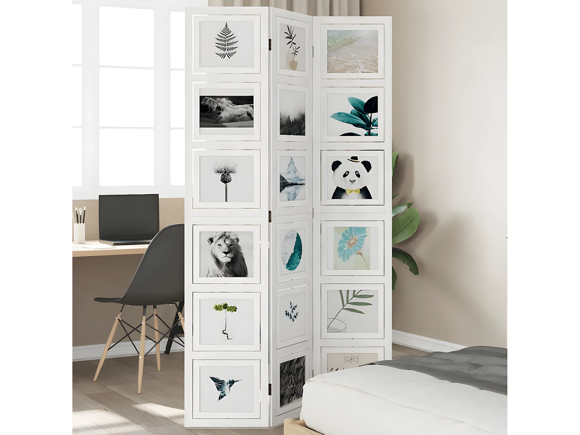 Cloison de séparation 3 panneaux blanc bois de paulownia massif