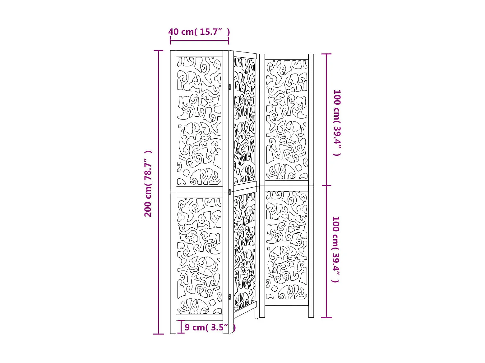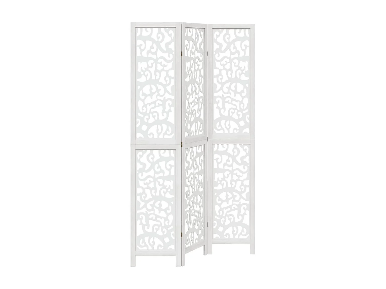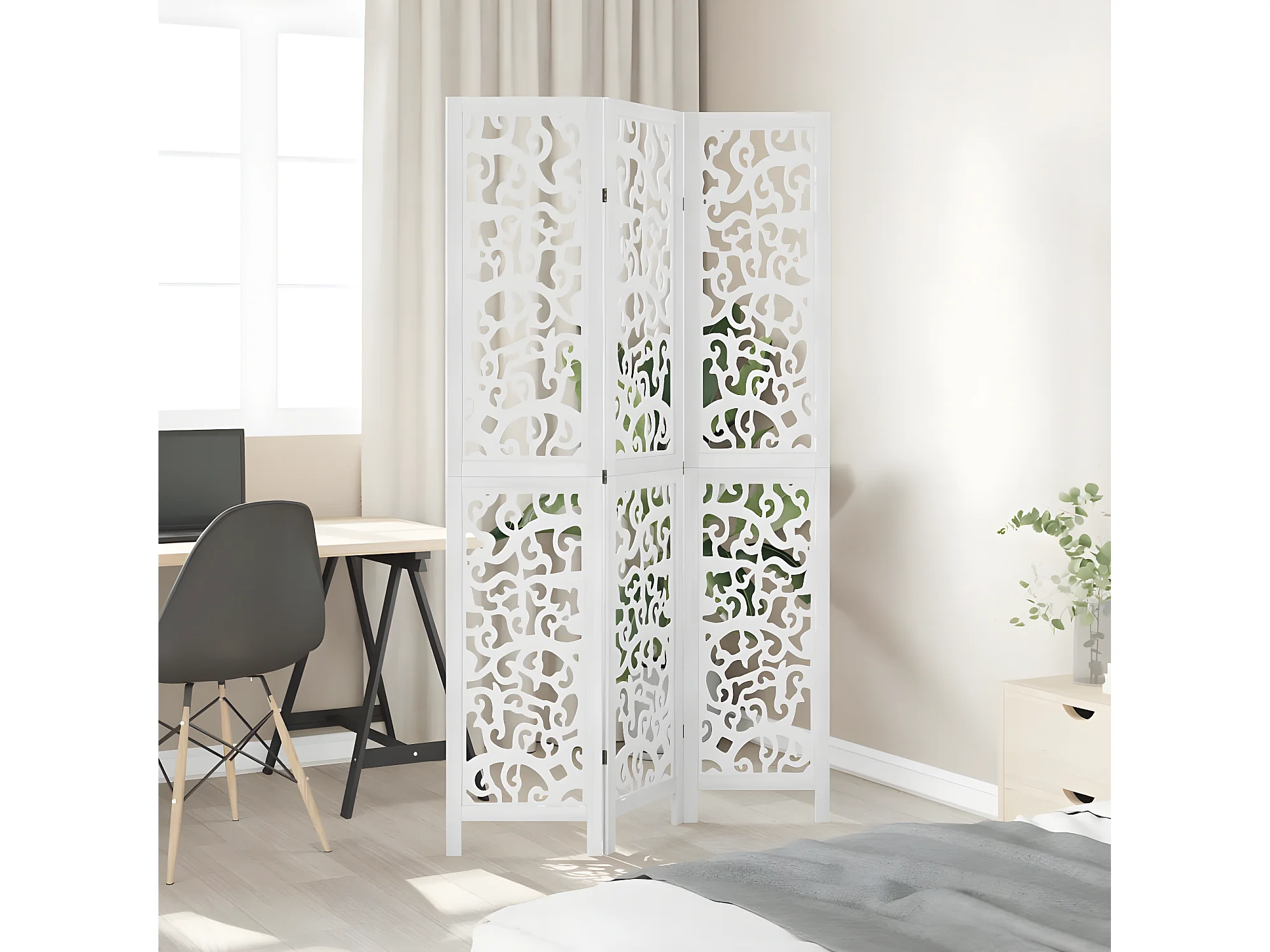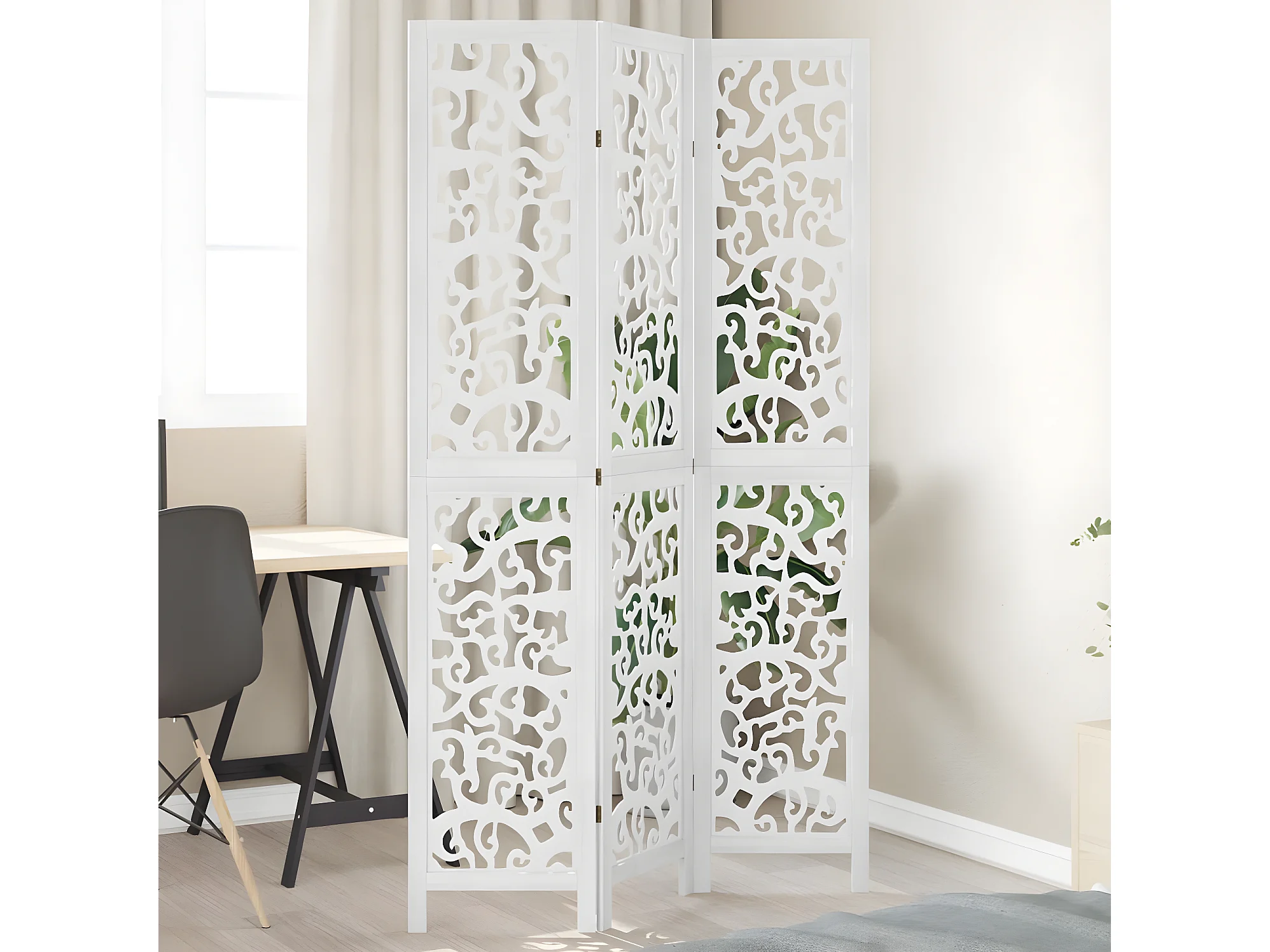 Cloison de séparation 3 panneaux blanc bois de paulownia massif