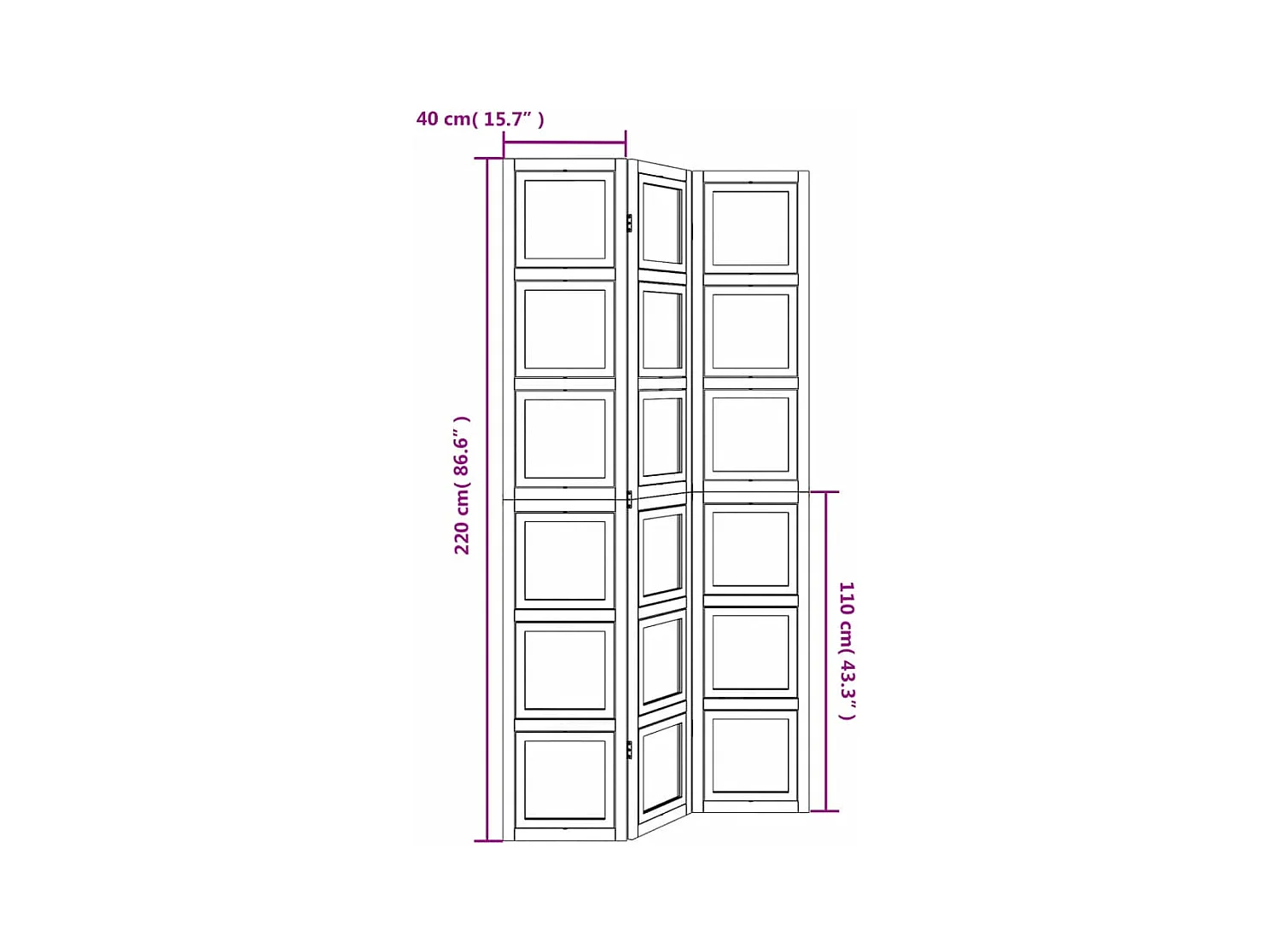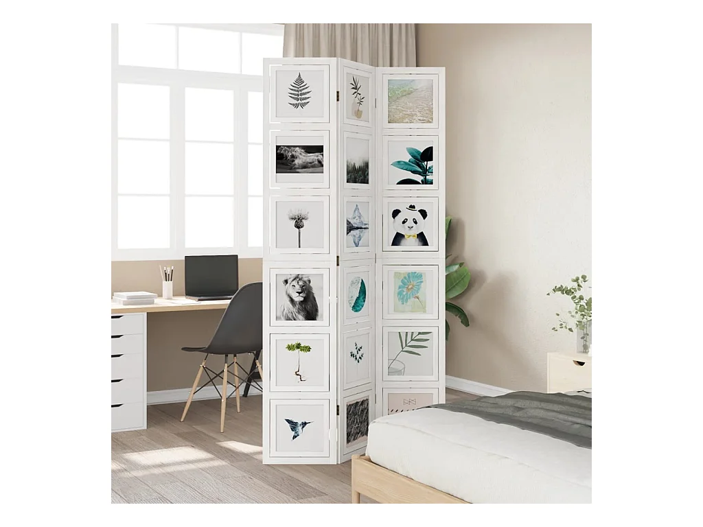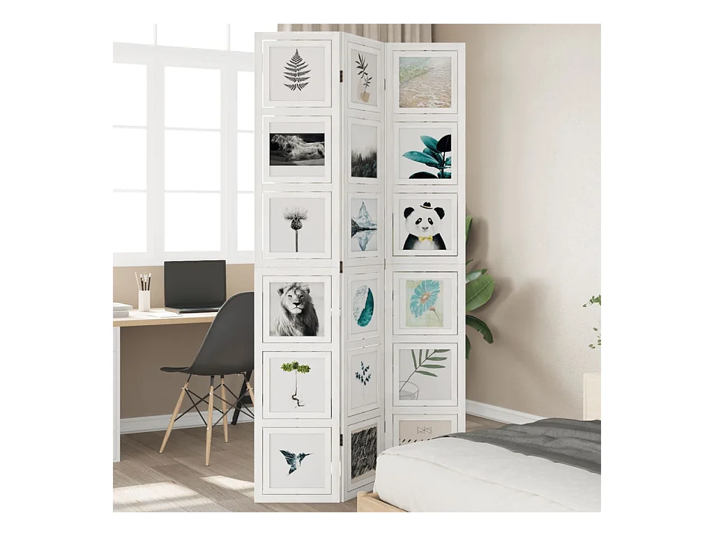 Cloison de séparation 3 panneaux blanc bois de paulownia massif