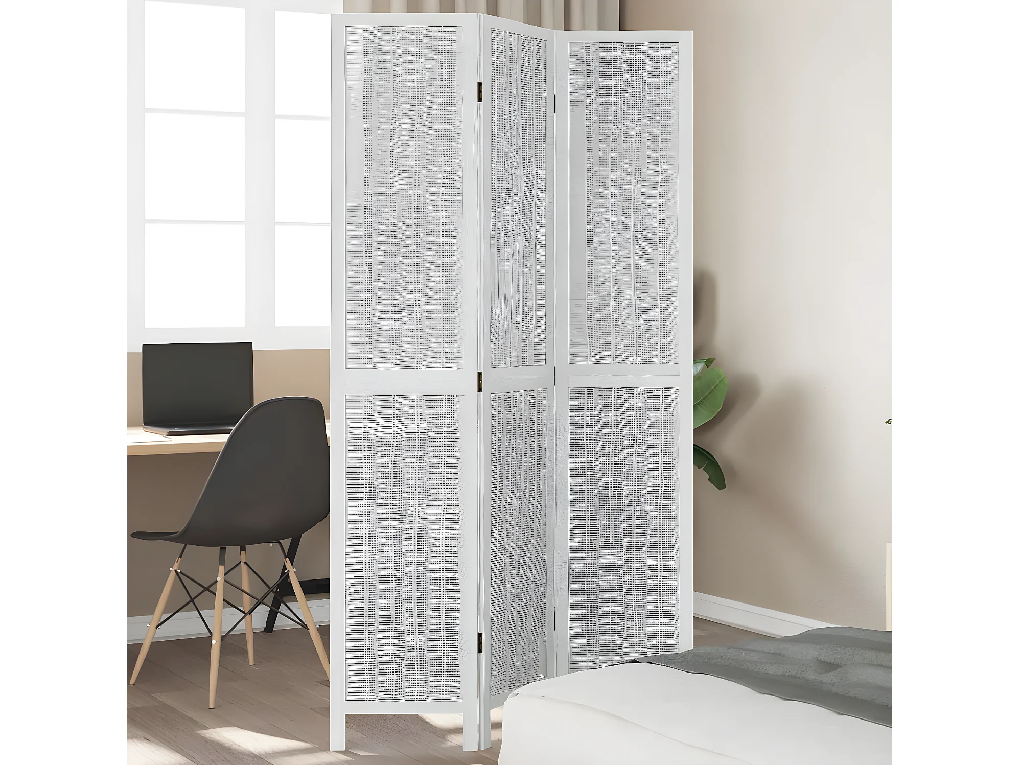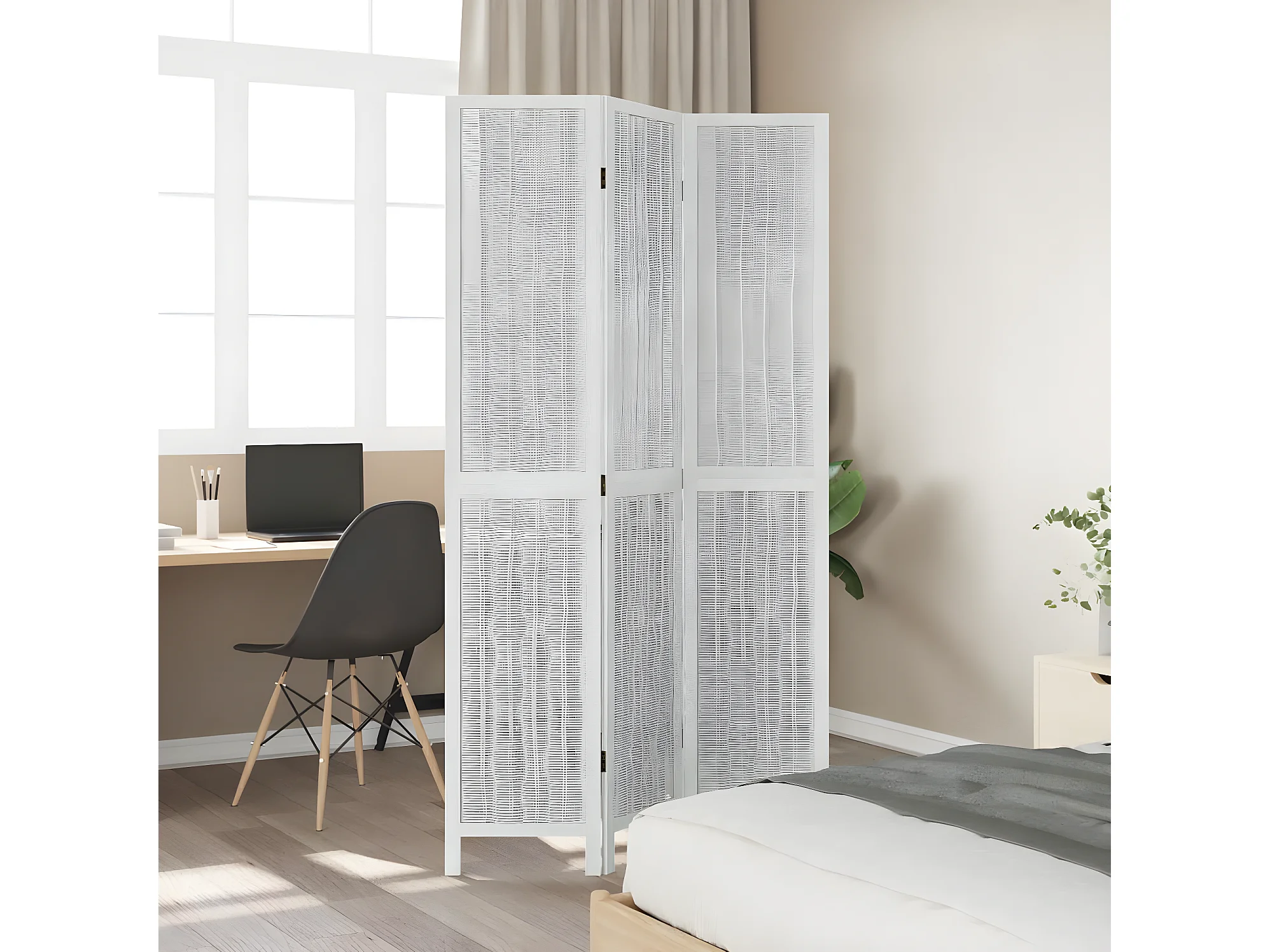 Cloison de séparation 3 panneaux blanc bois de paulownia massif