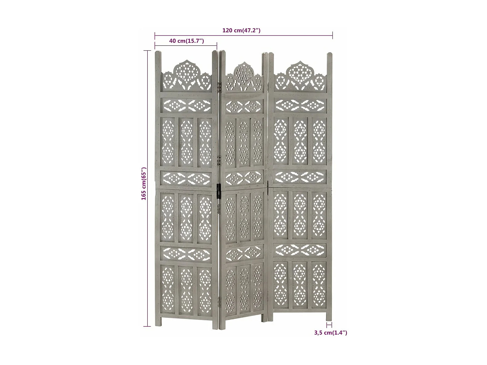Cloison de séparation 3 panneaux Gris 120x165 cm Bois manguier