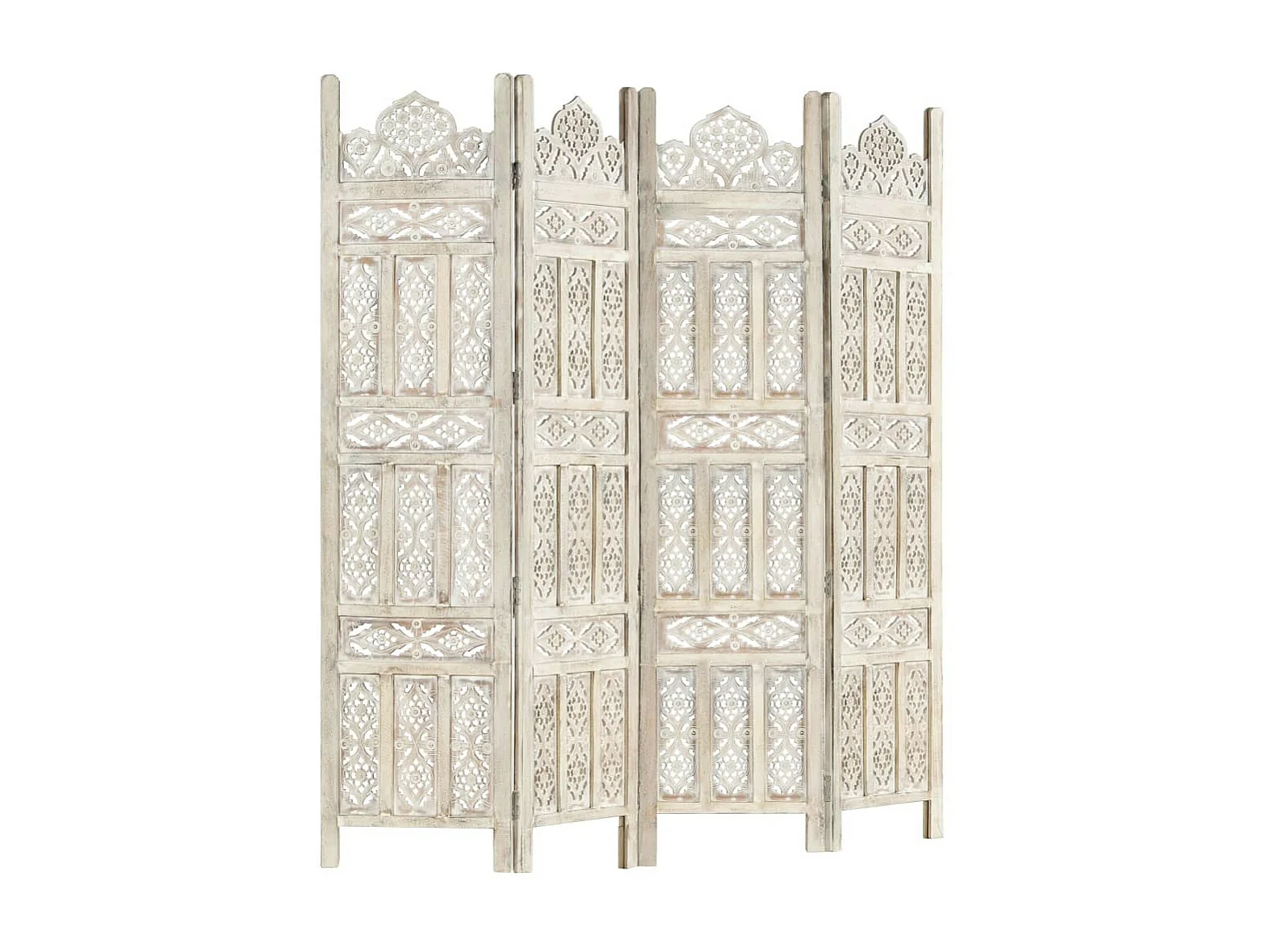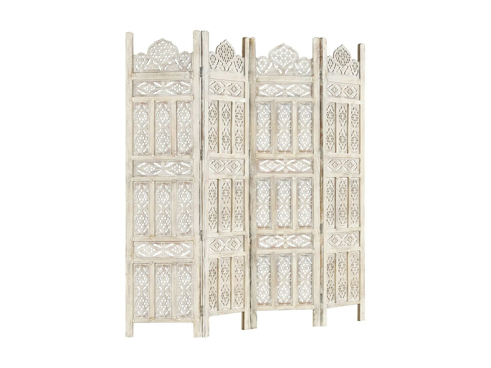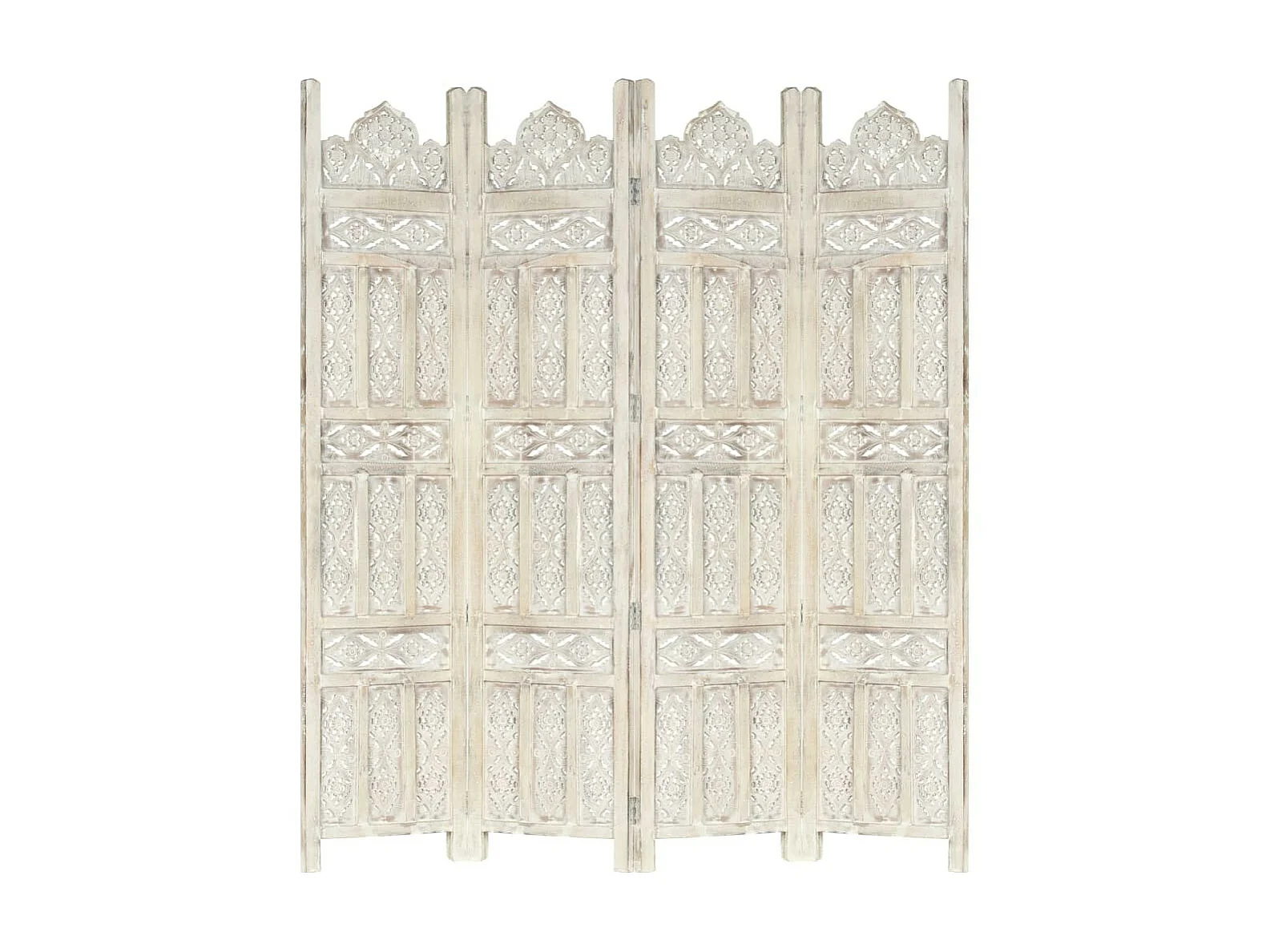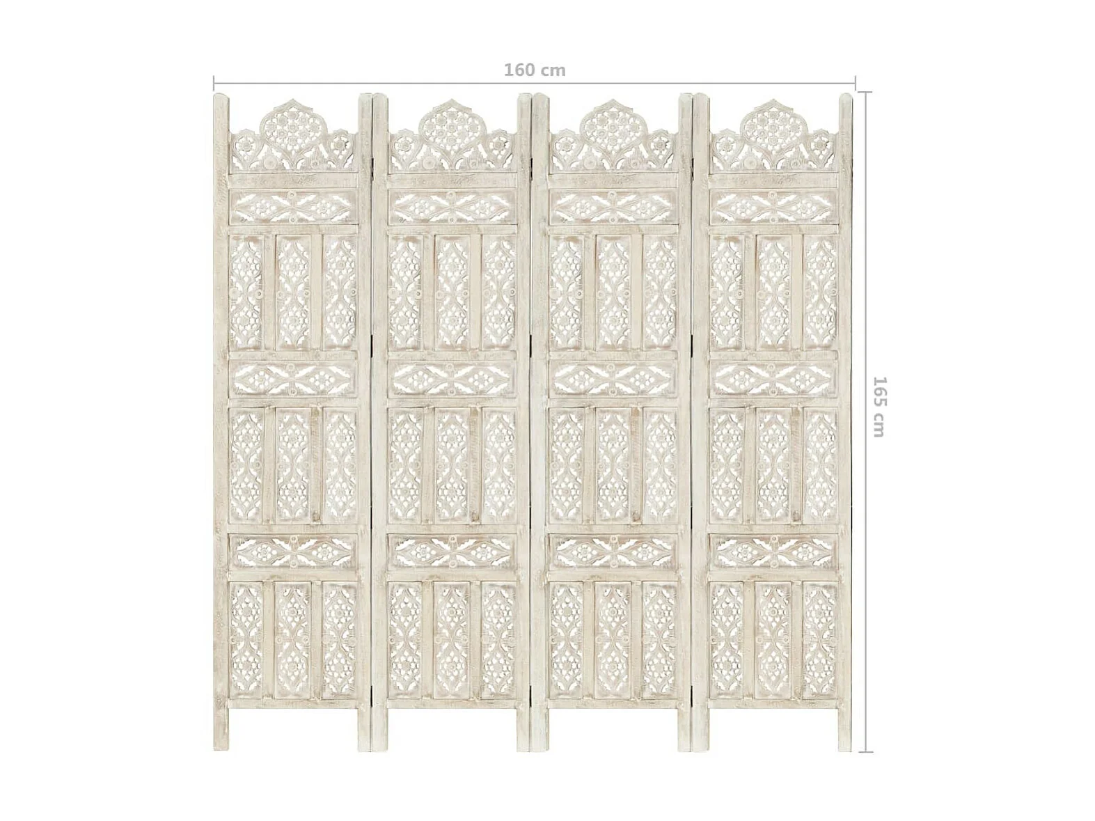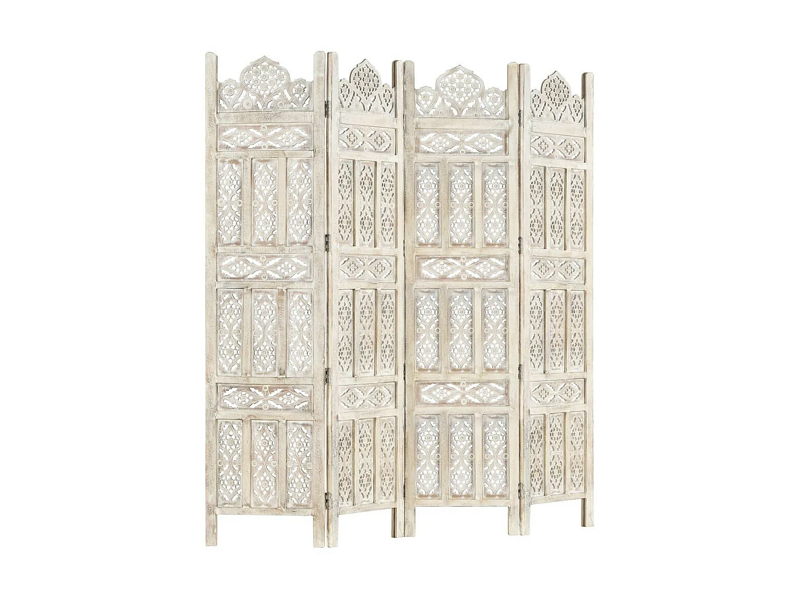 Cloison de séparation 4 panneaux Blanc 160x165 Bois manguier