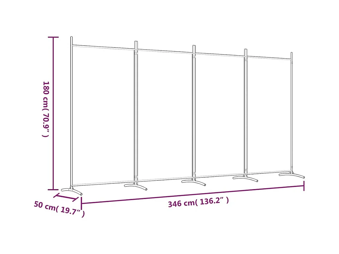 Cloison de séparation 4 panneaux Blanc 346x180 Tissu
