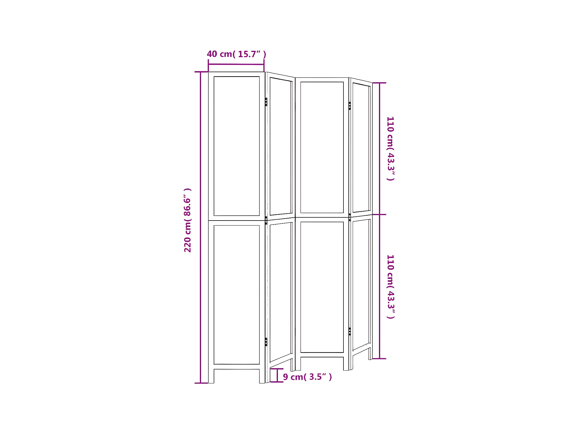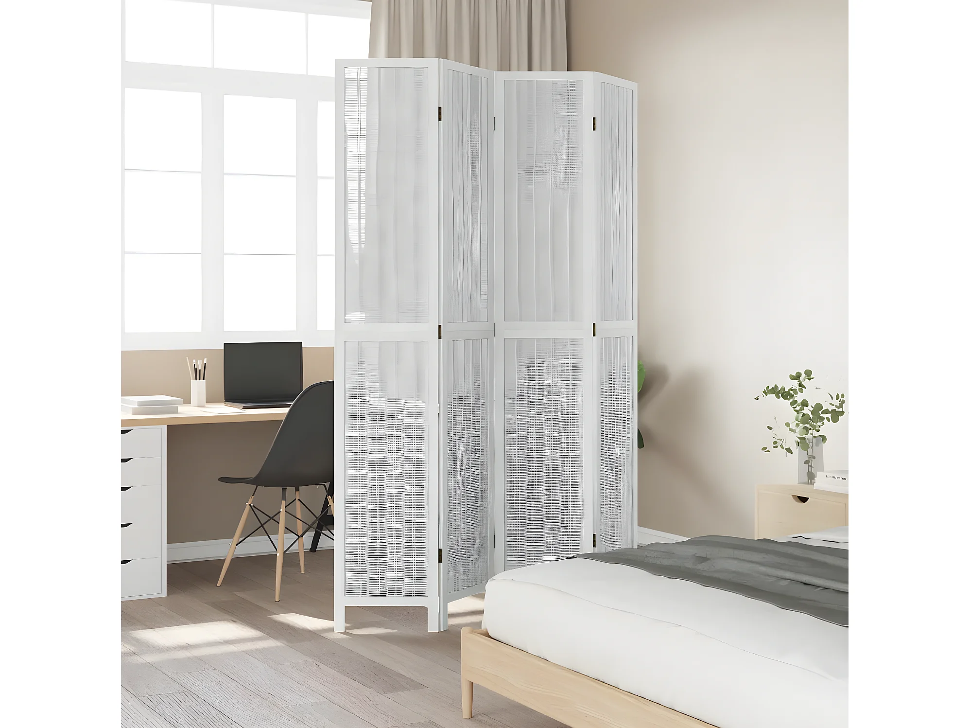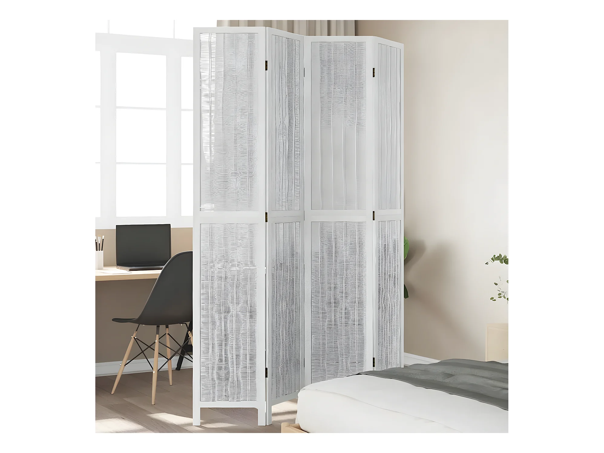 Cloison de séparation 4 panneaux blanc bois de paulownia massif