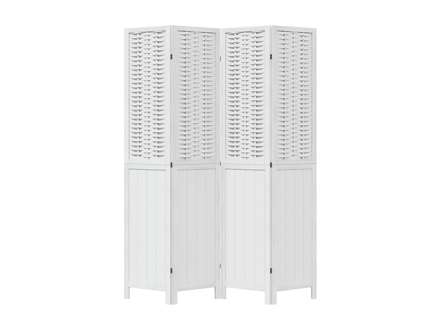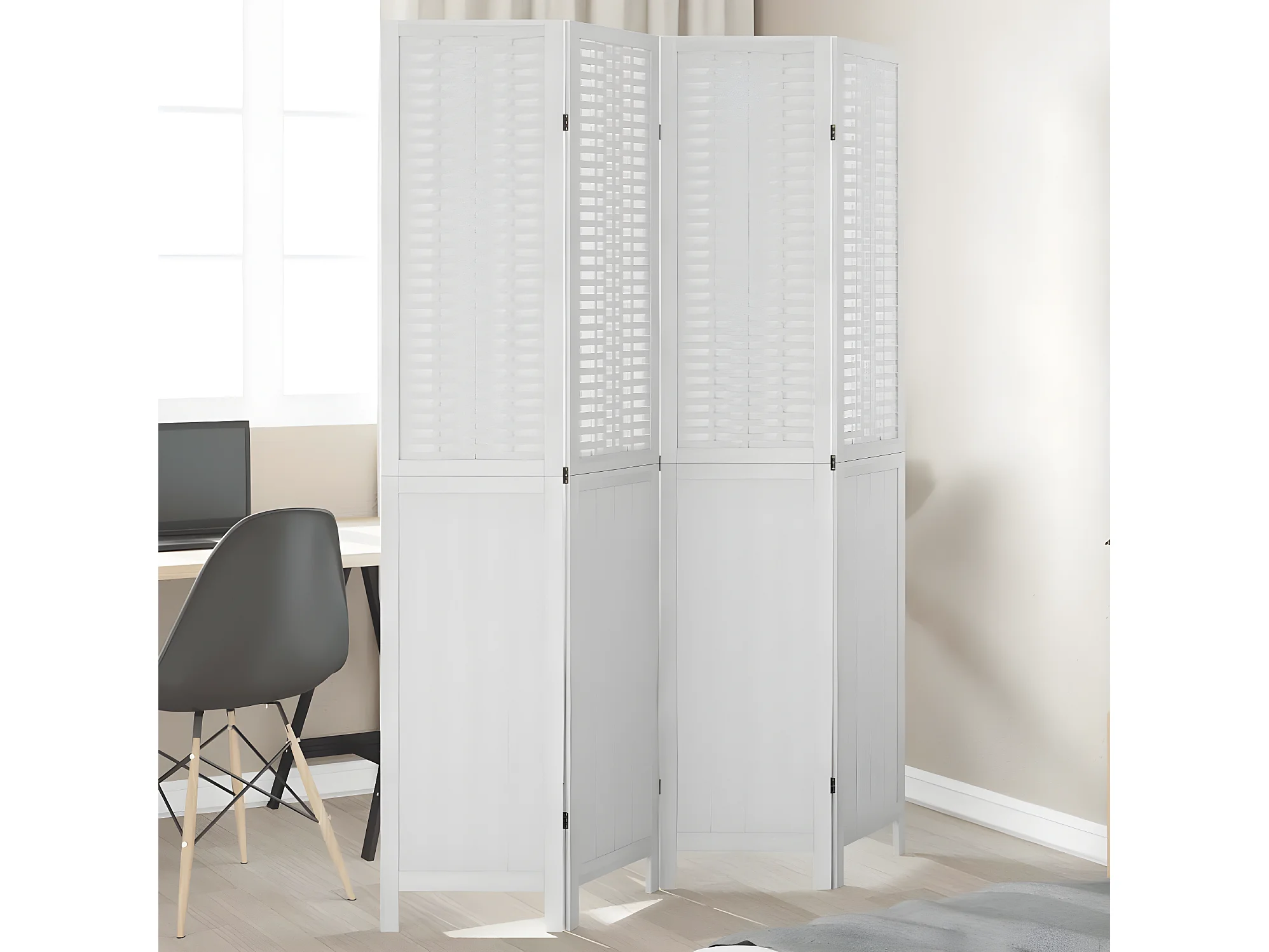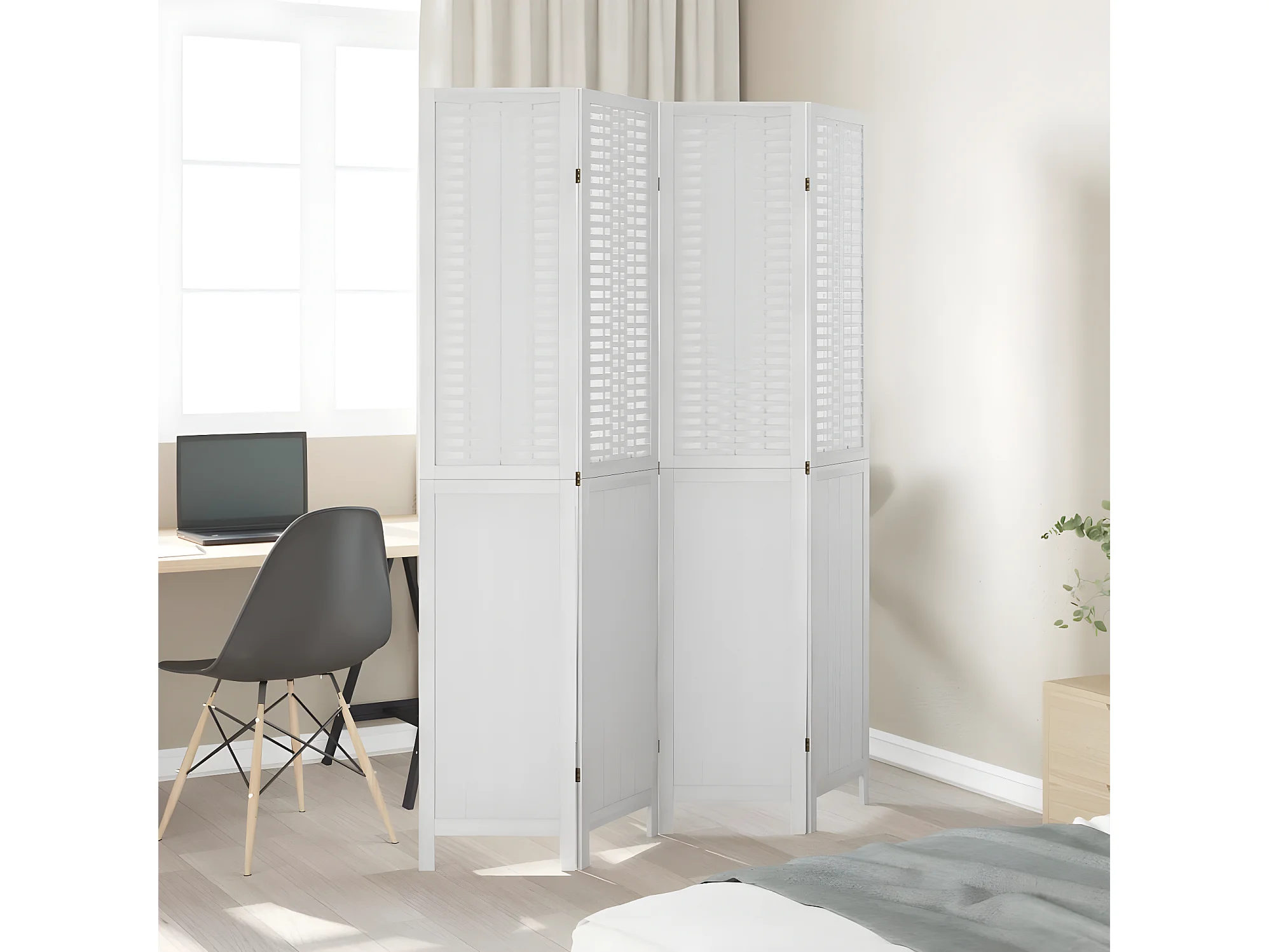Cloison de séparation 4 panneaux blanc bois de paulownia massif