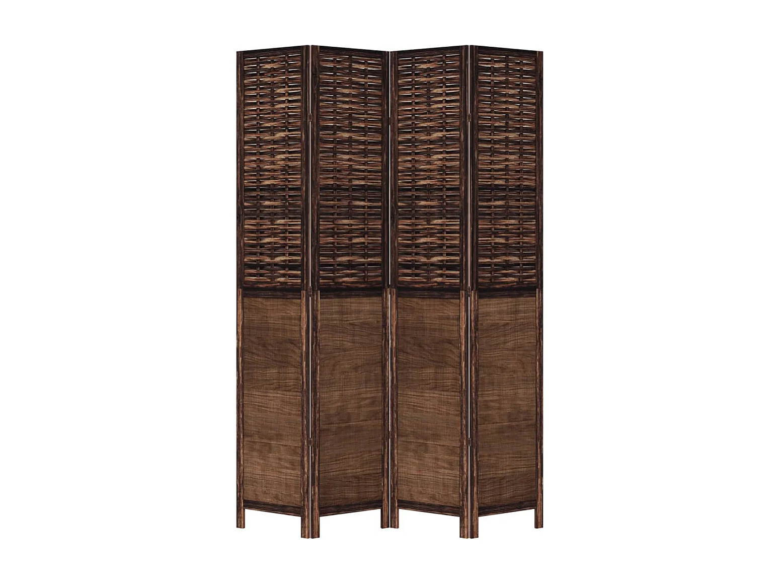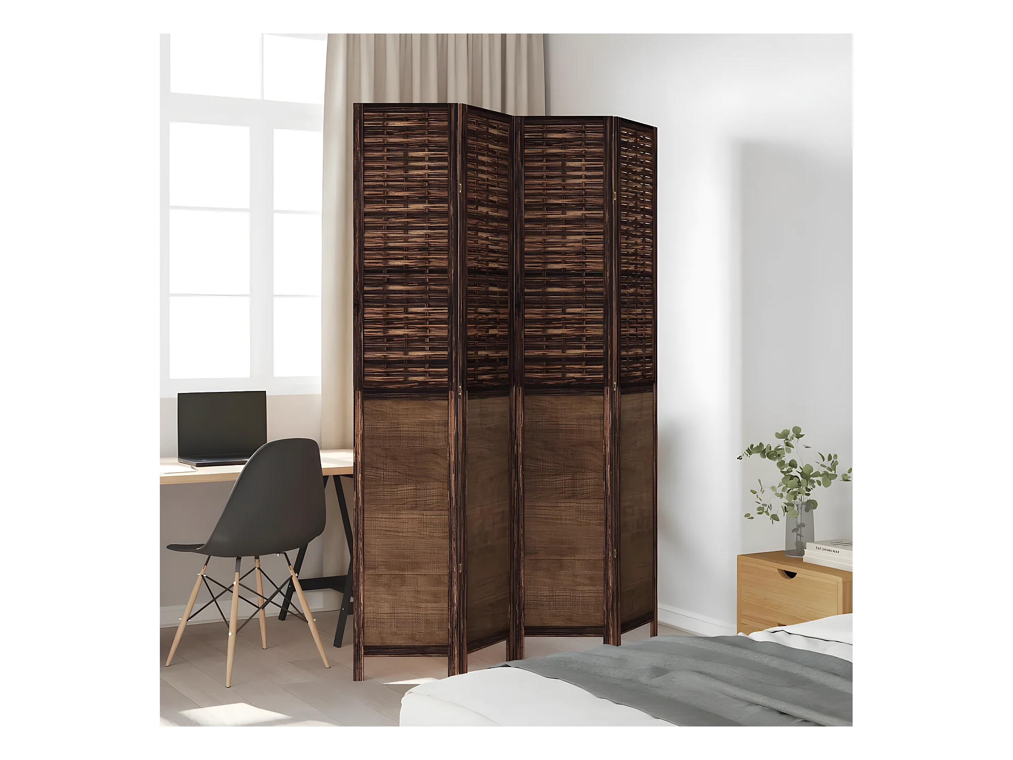 Cloison de séparation 4 panneaux marron foncé paulownia massif
