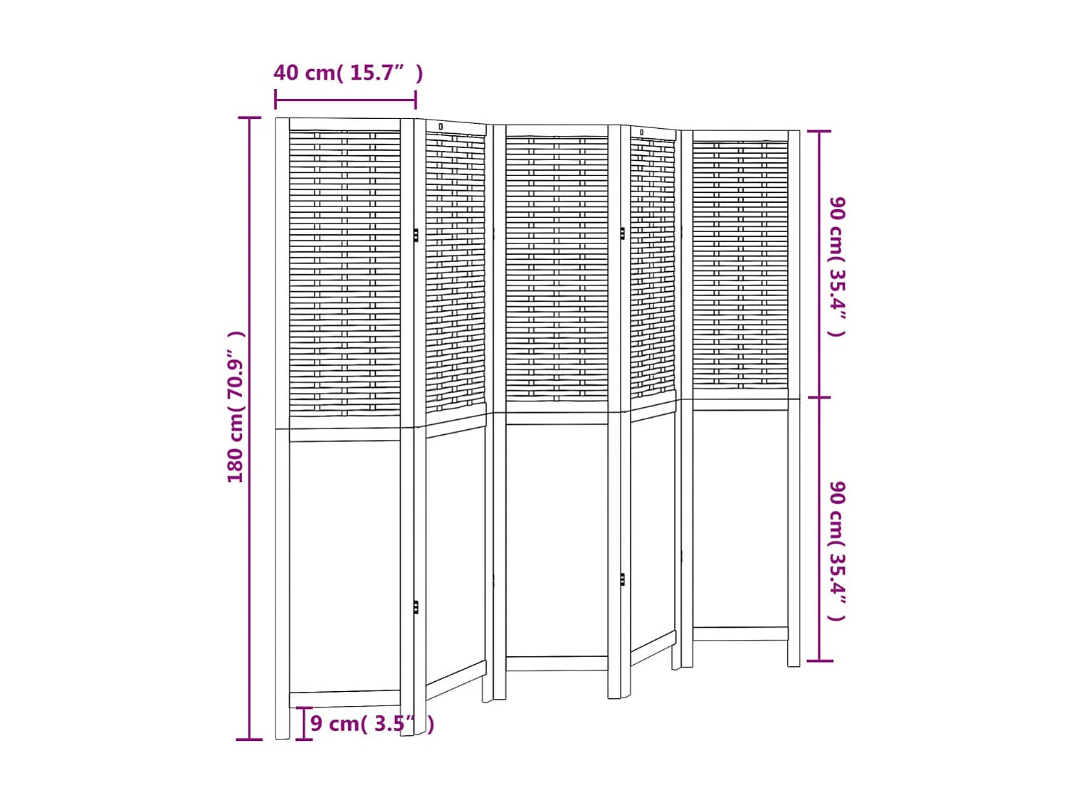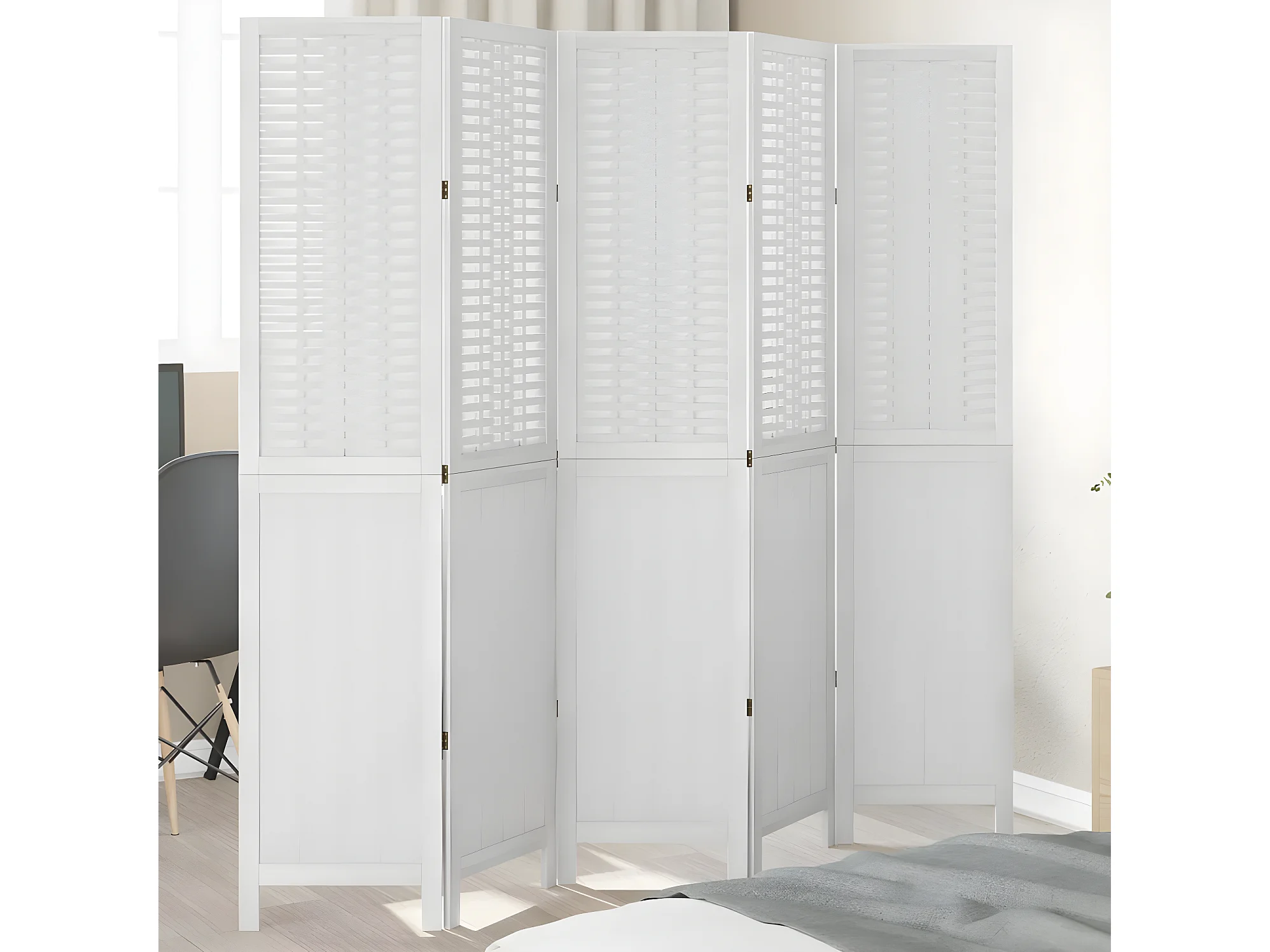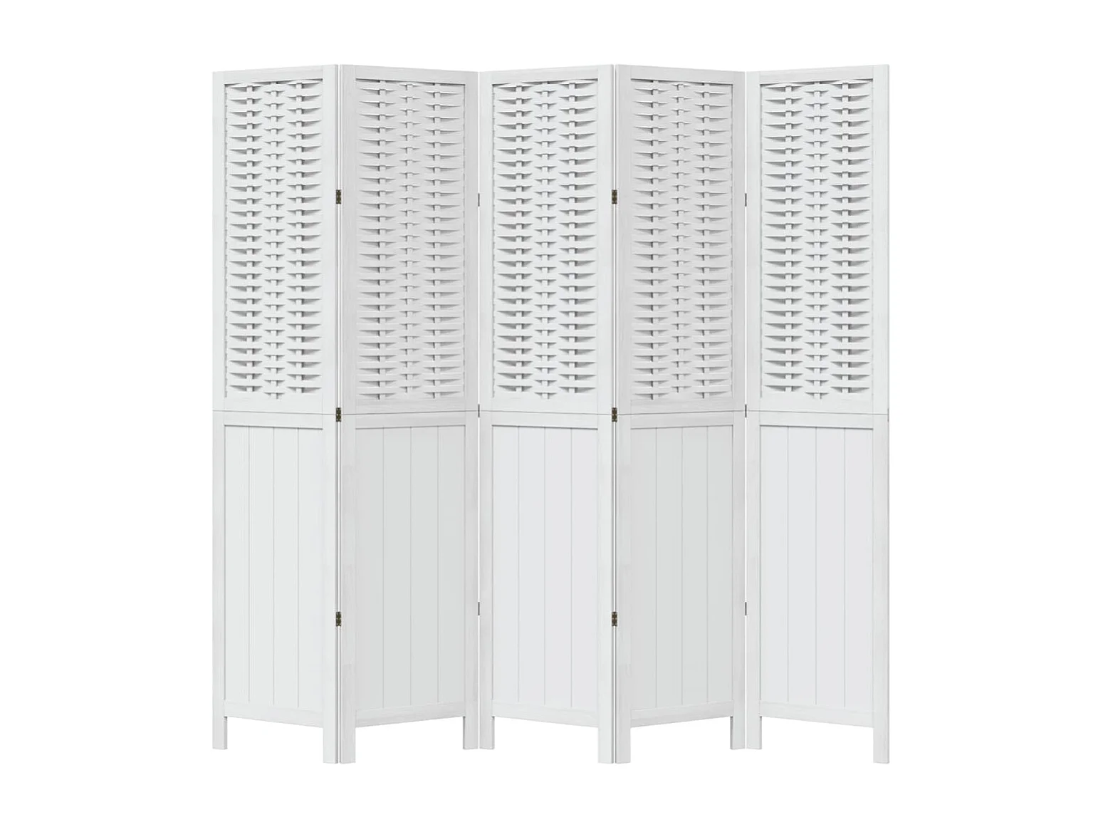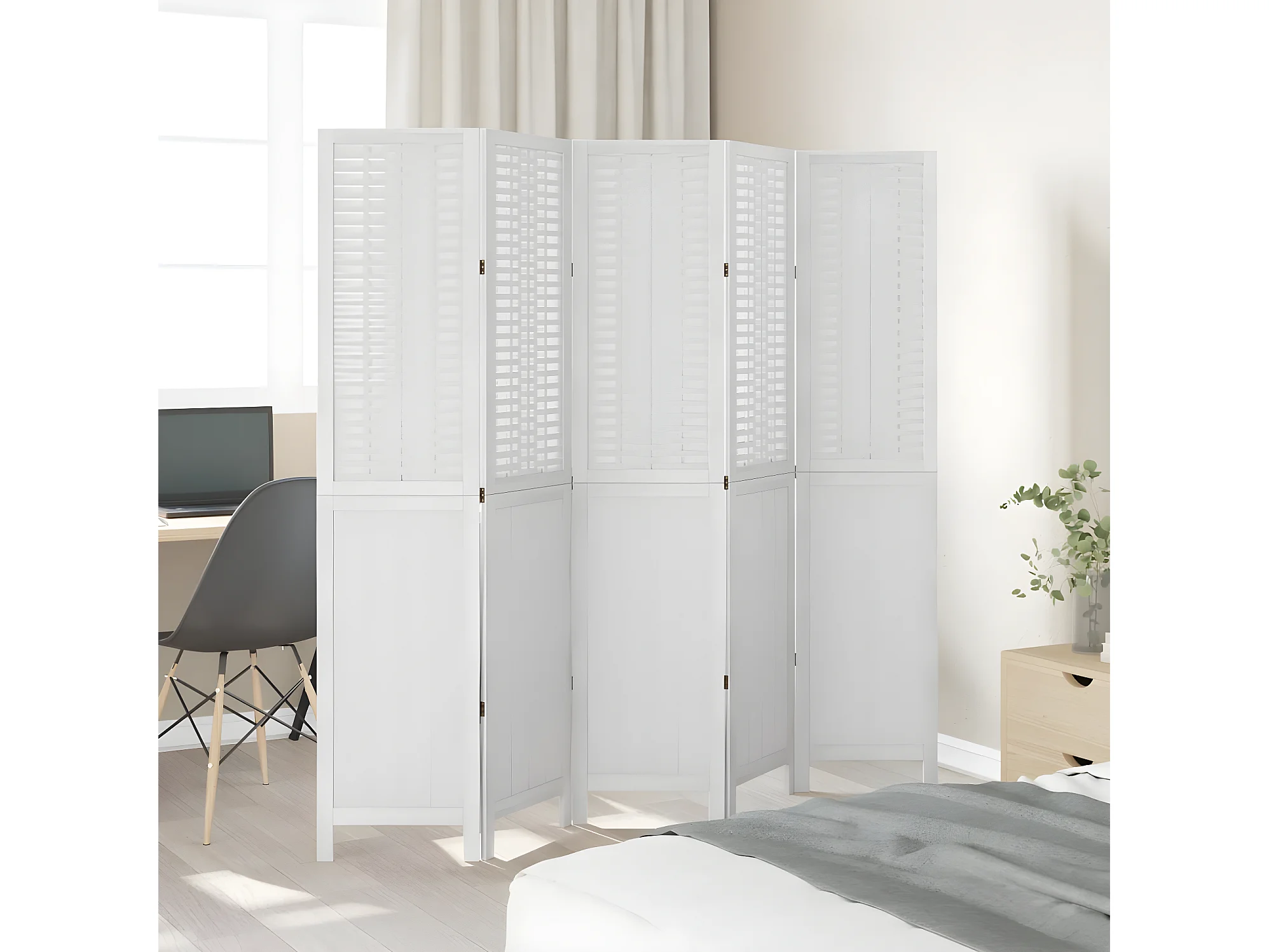 Cloison de séparation 5 panneaux blanc bois de paulownia massif