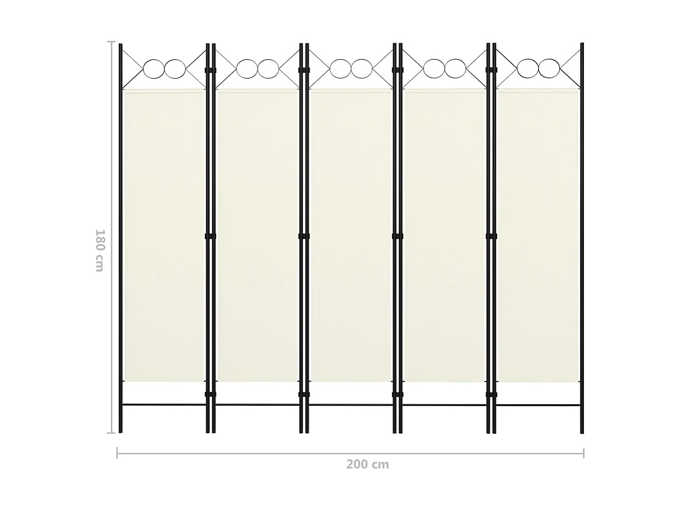 Cloison de séparation 5 panneaux Blanc crème 200x180