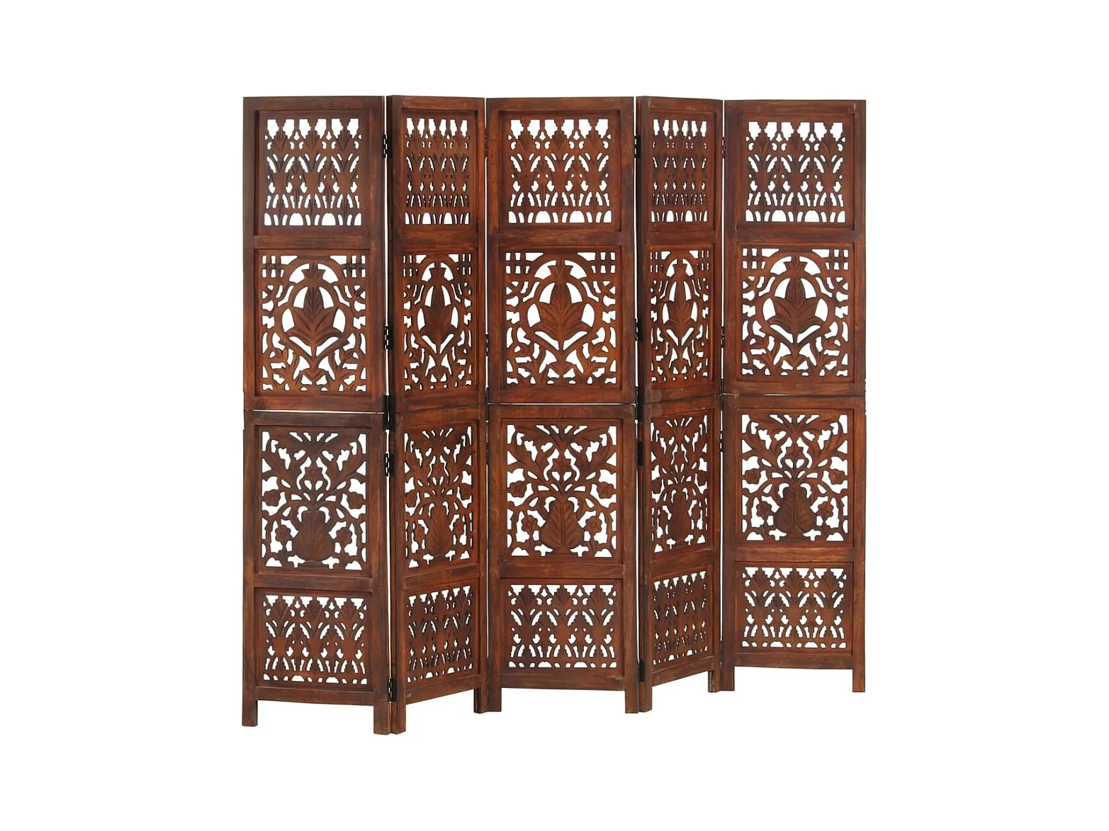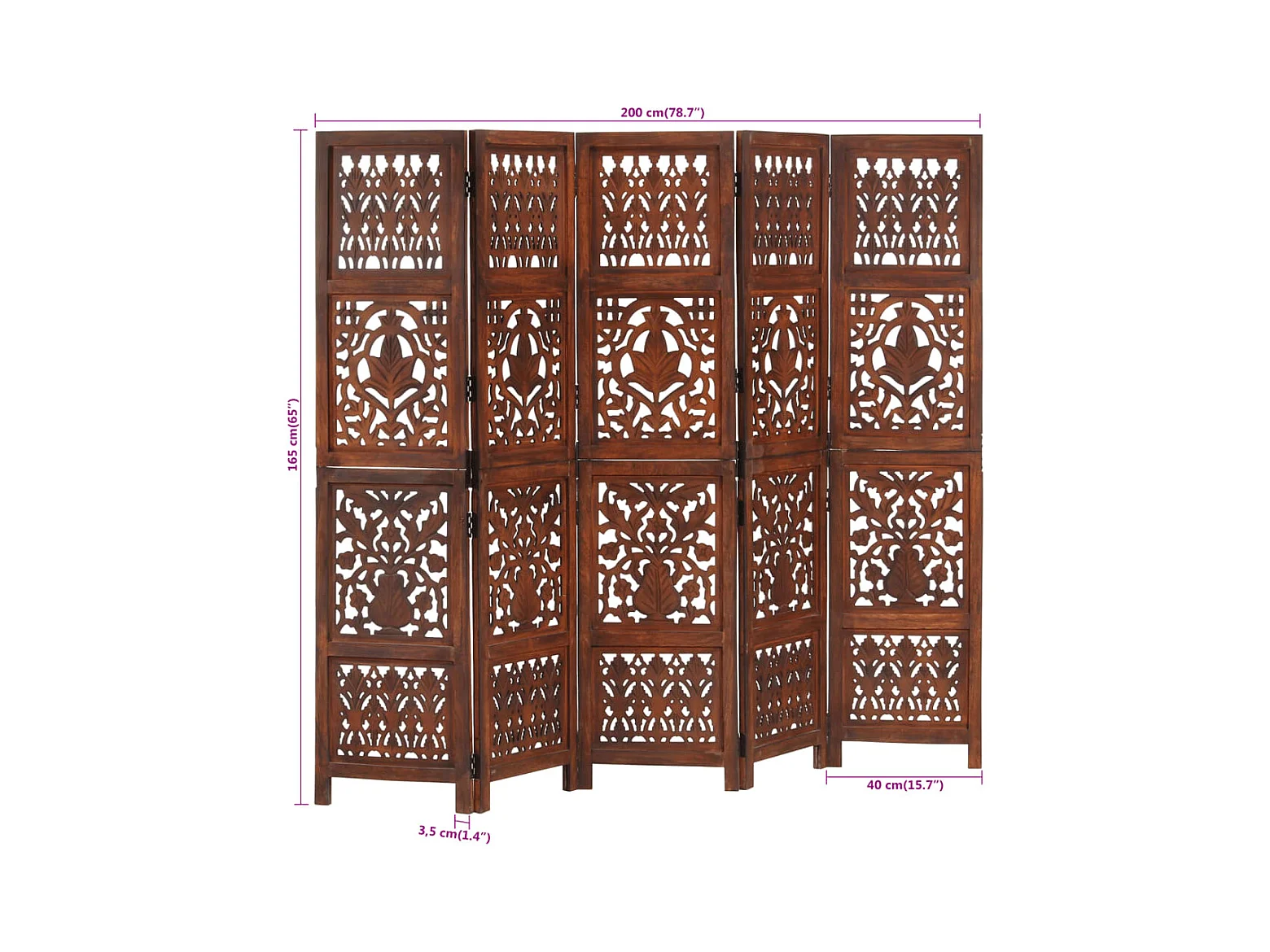 Cloison de séparation 5 panneaux Marron 200x165cm Bois manguier