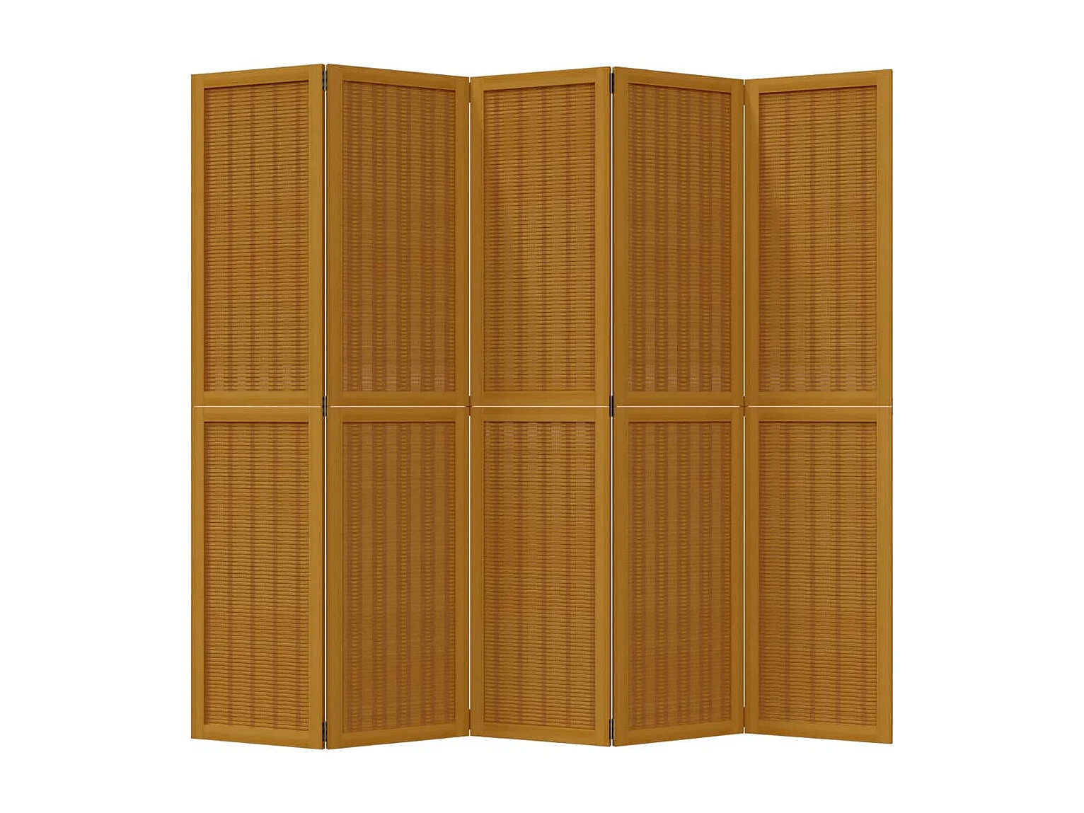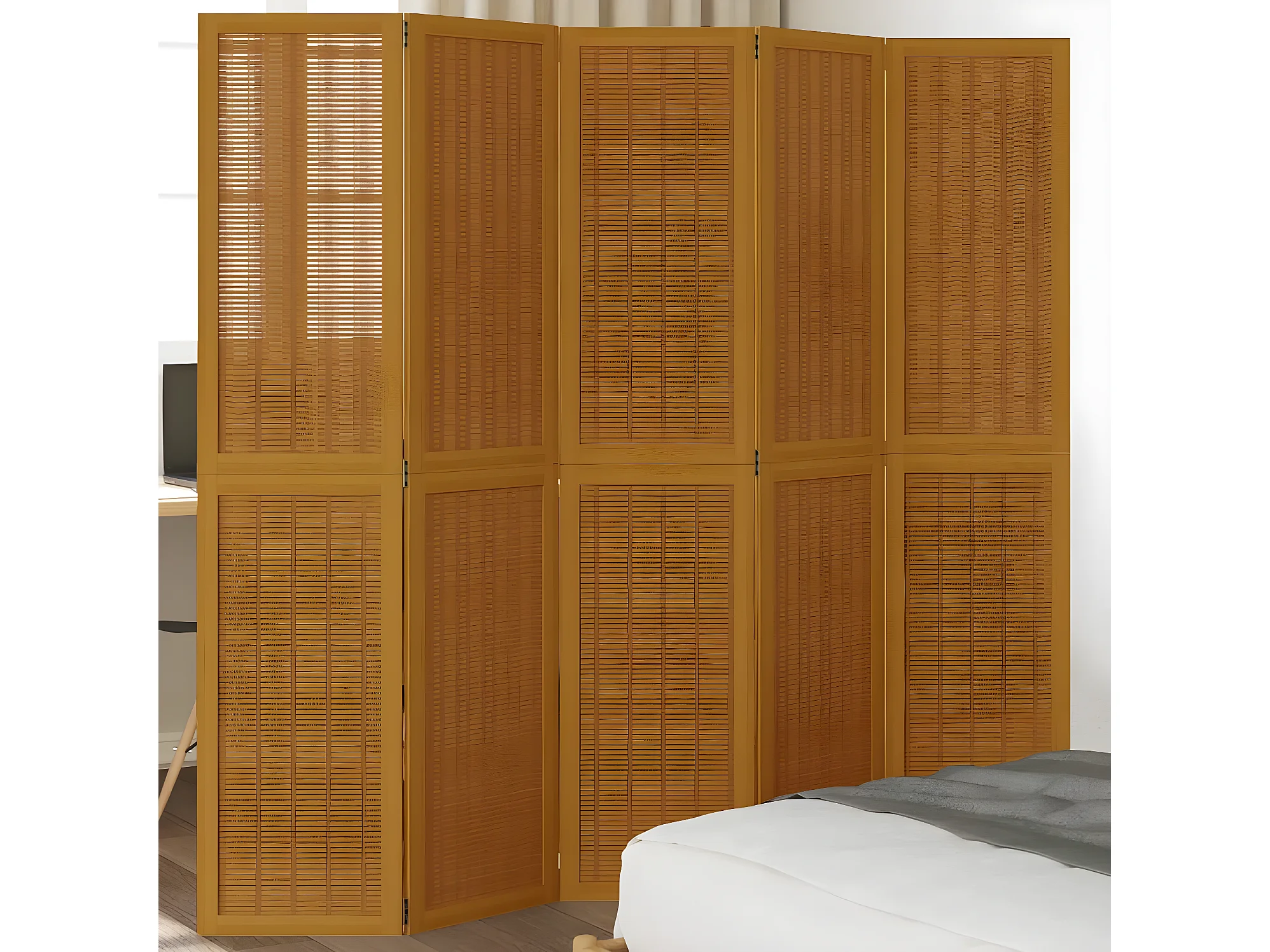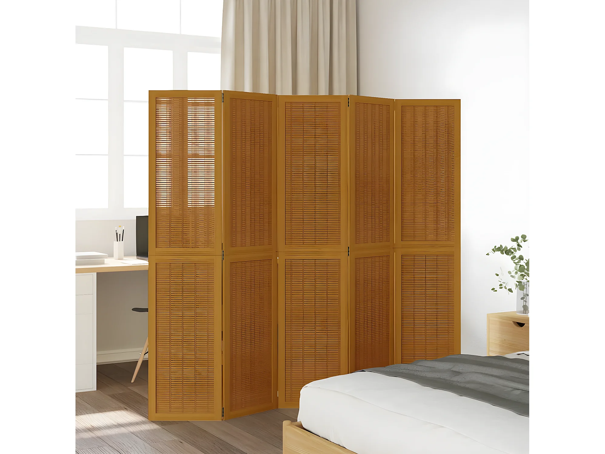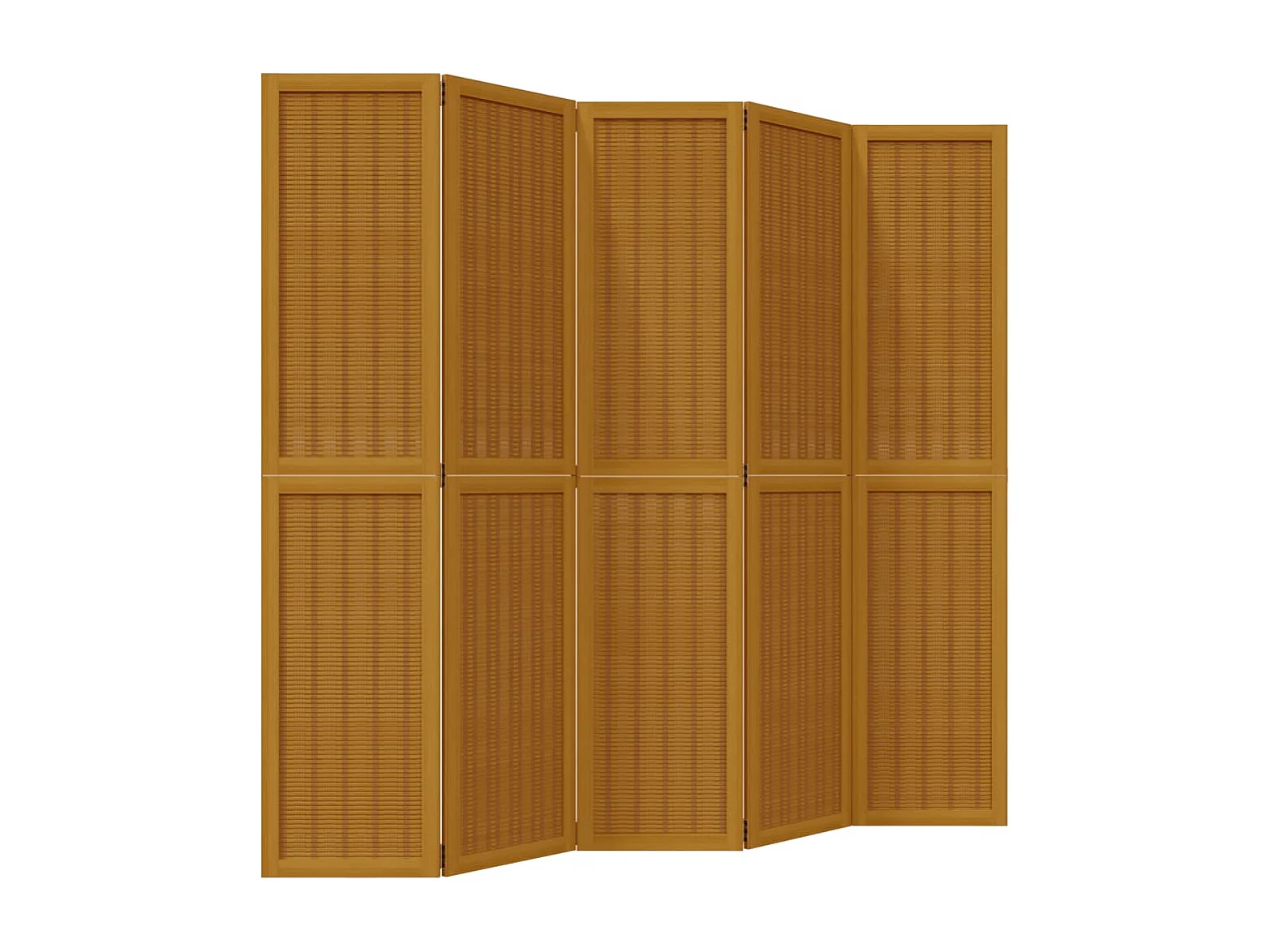 Cloison de séparation 5 panneaux marron bois paulownia massif