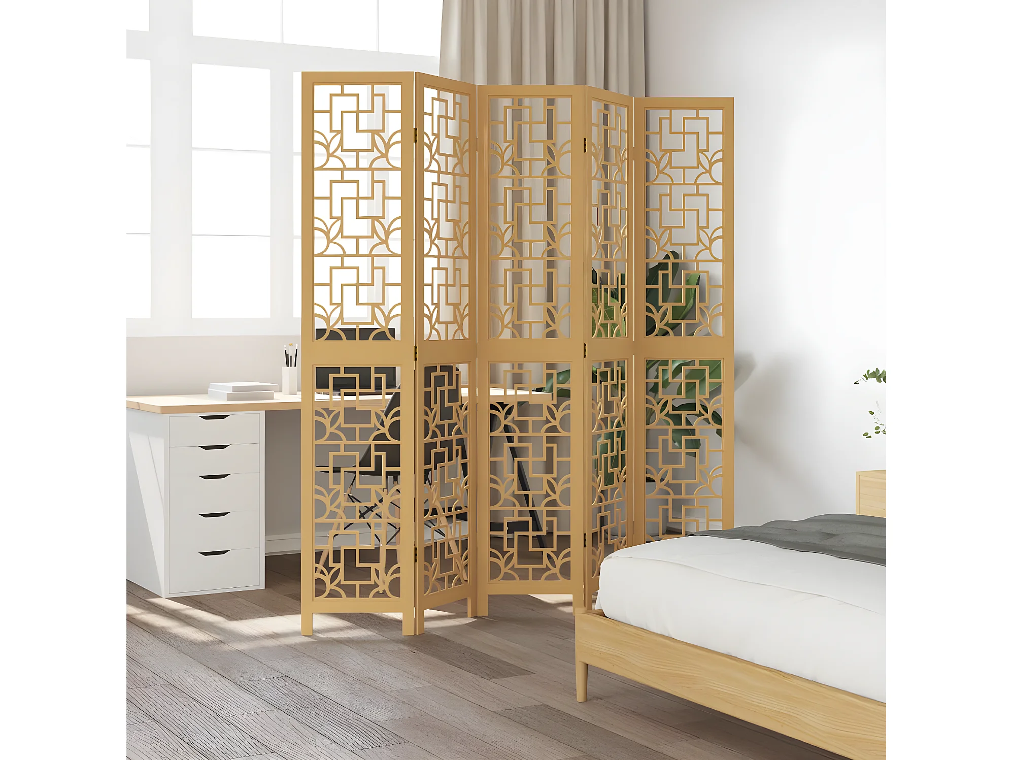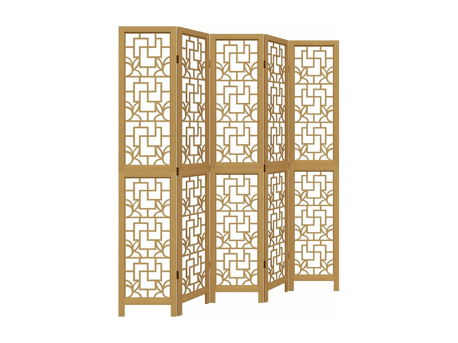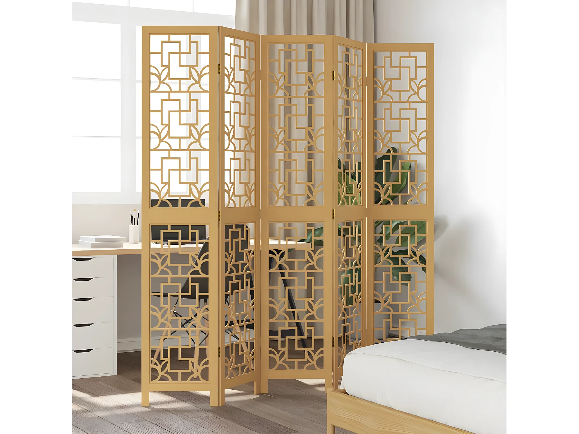 Cloison de séparation 5 panneaux marron bois paulownia massif
