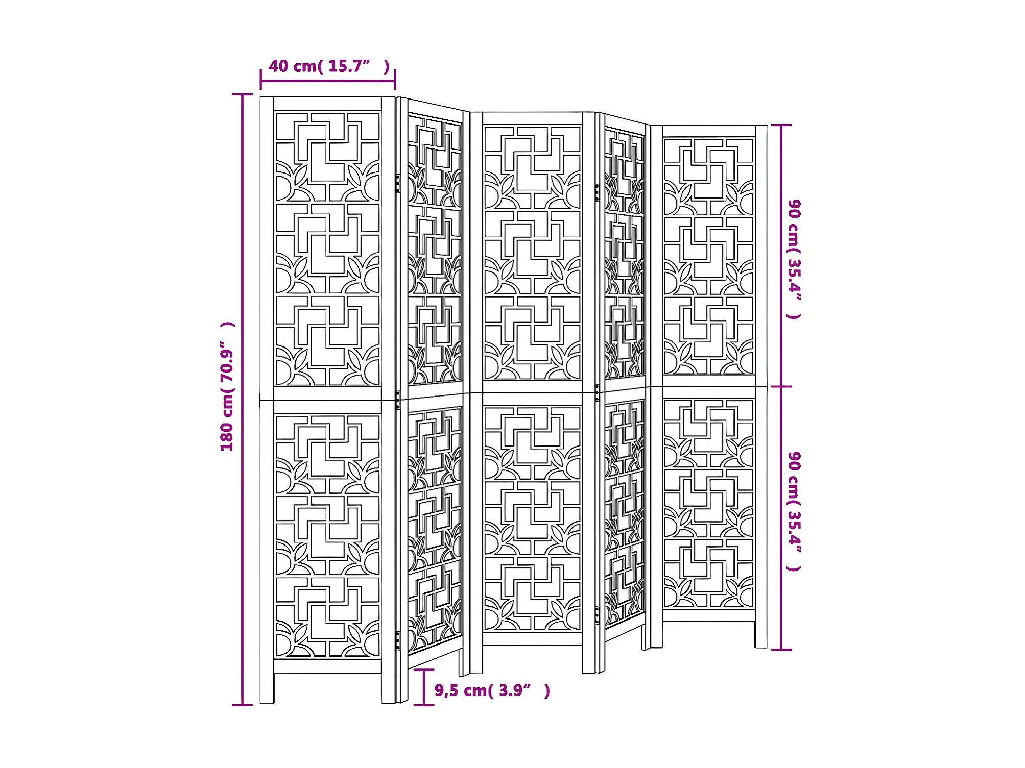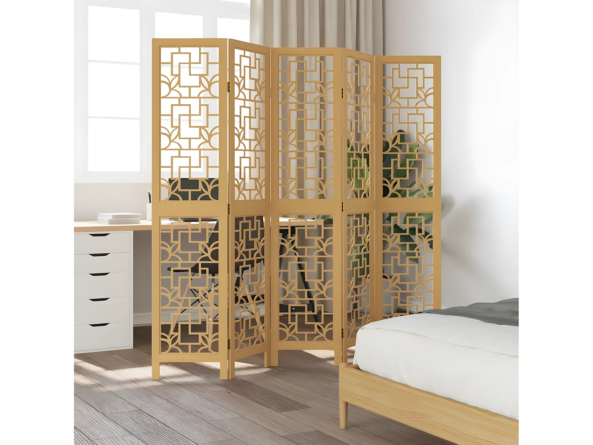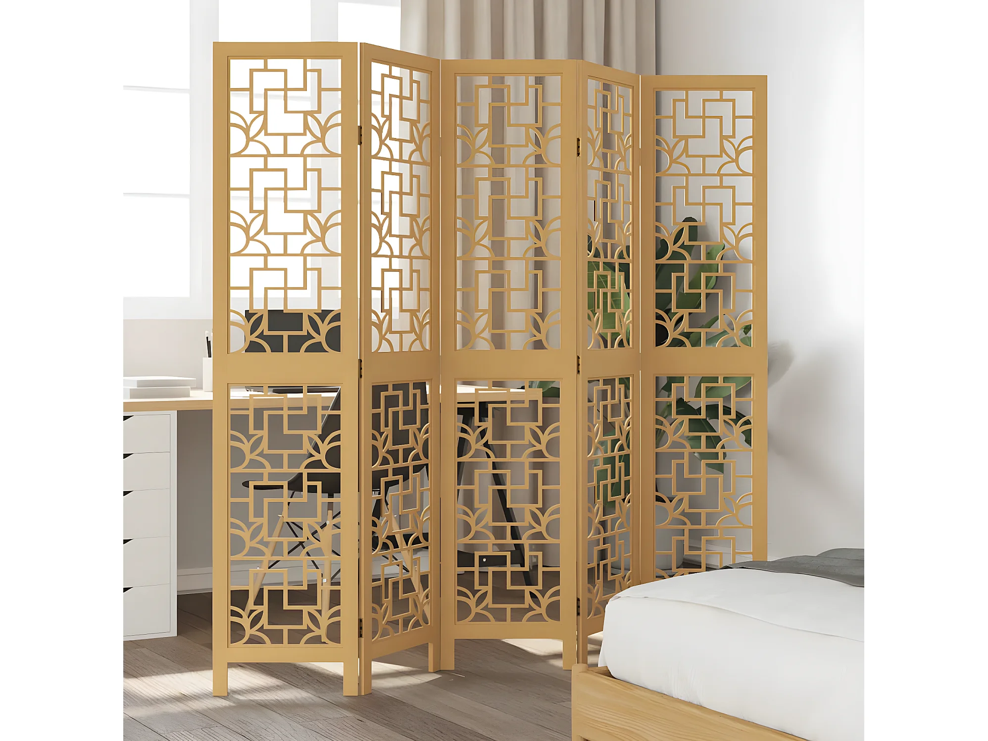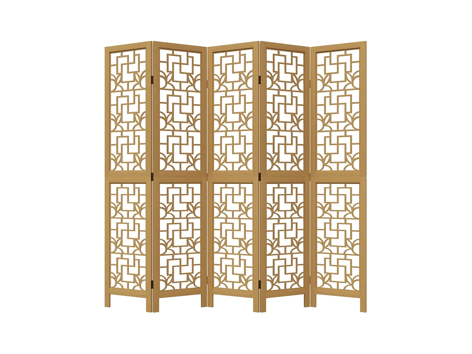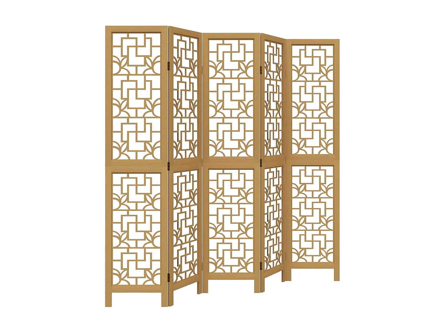 Cloison de séparation 5 panneaux marron bois paulownia massif