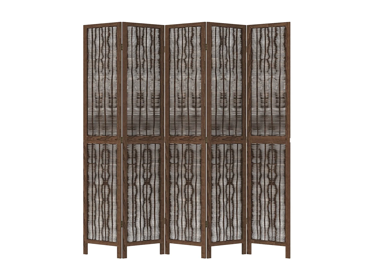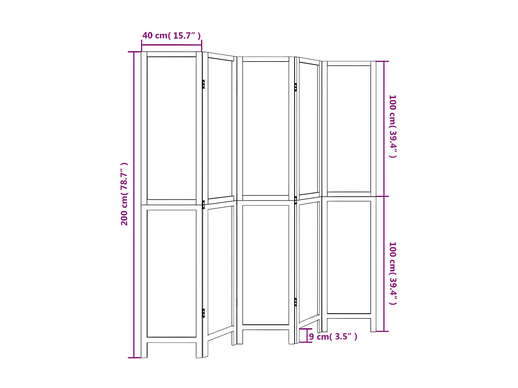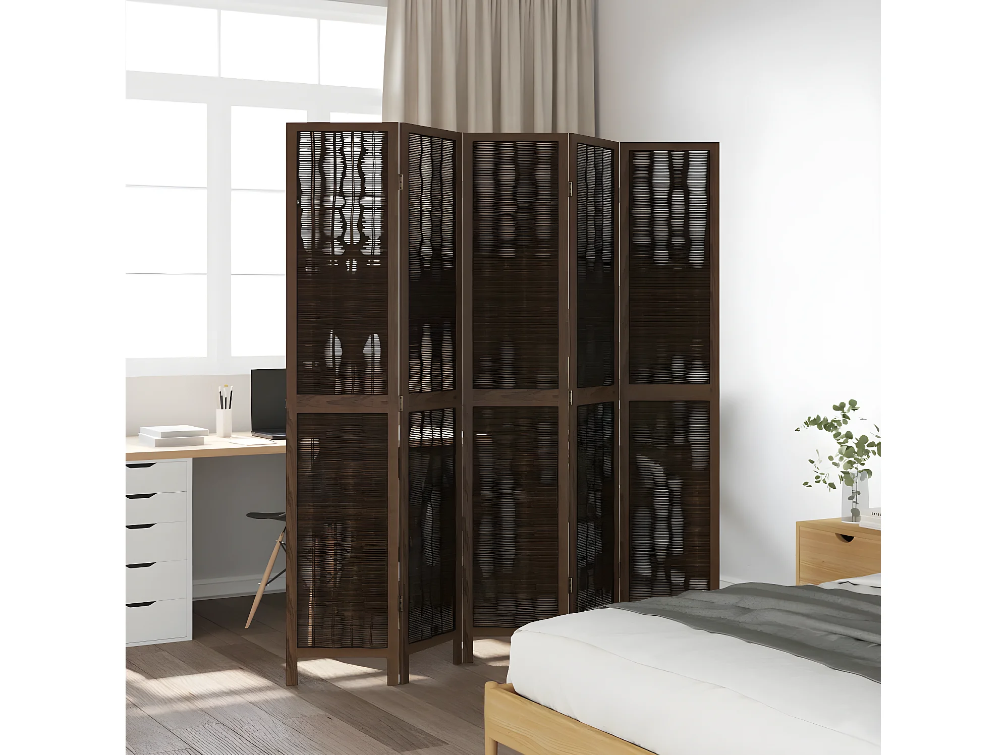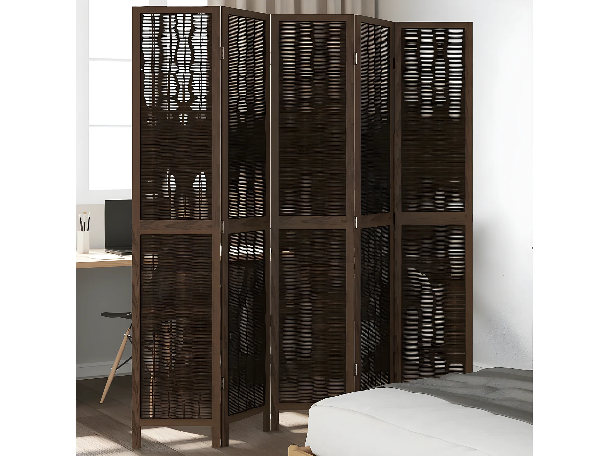 Cloison de séparation 5 panneaux marron foncé paulownia massif