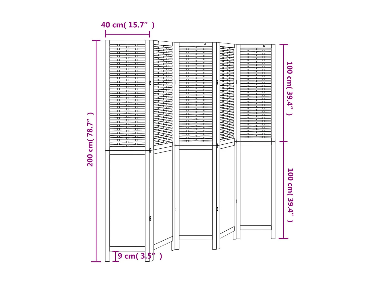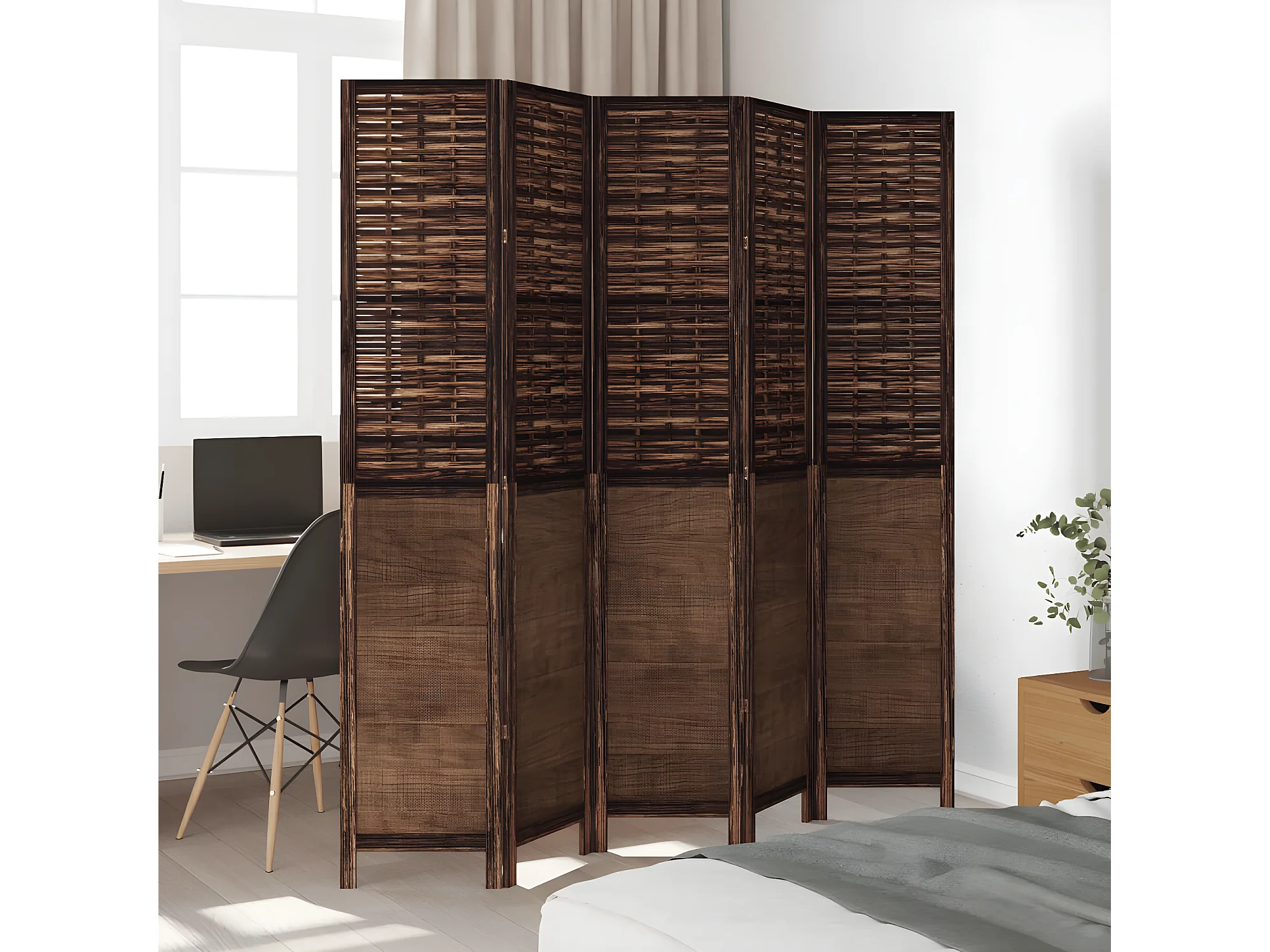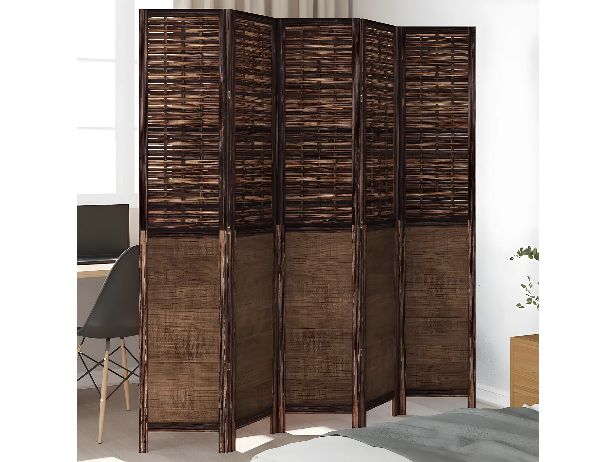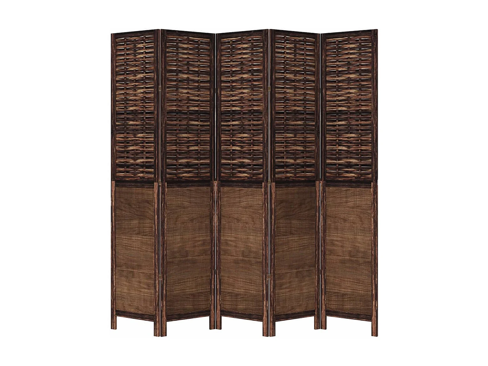 Cloison de séparation 5 panneaux marron foncé paulownia massif
