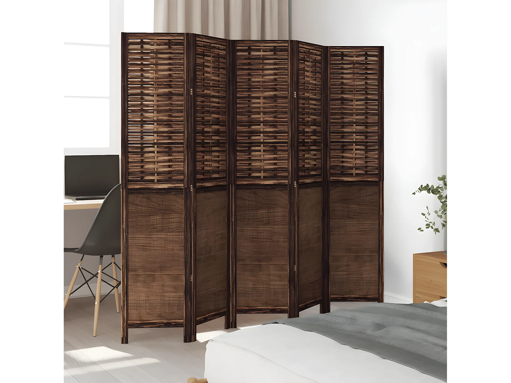 Cloison de séparation 5 panneaux marron foncé paulownia massif