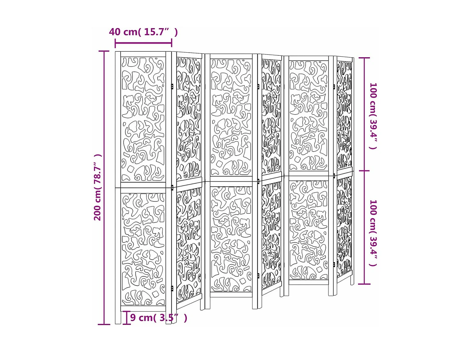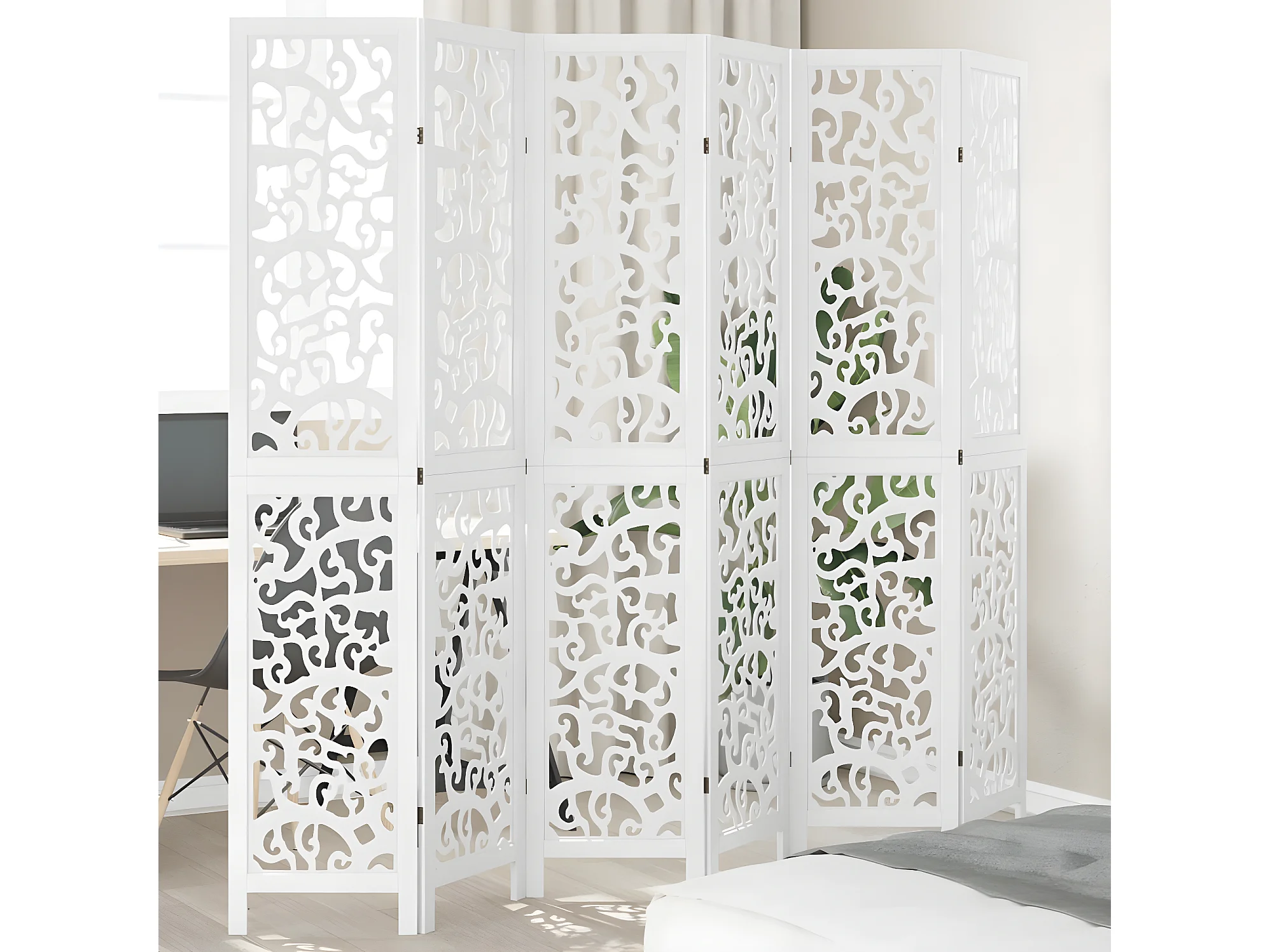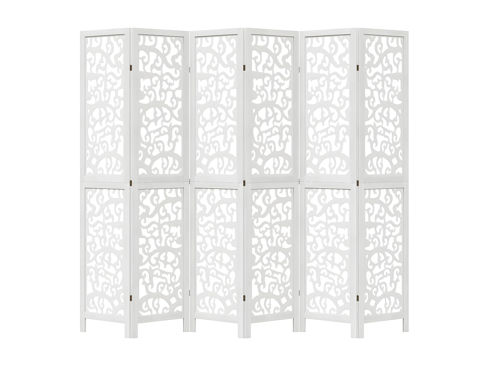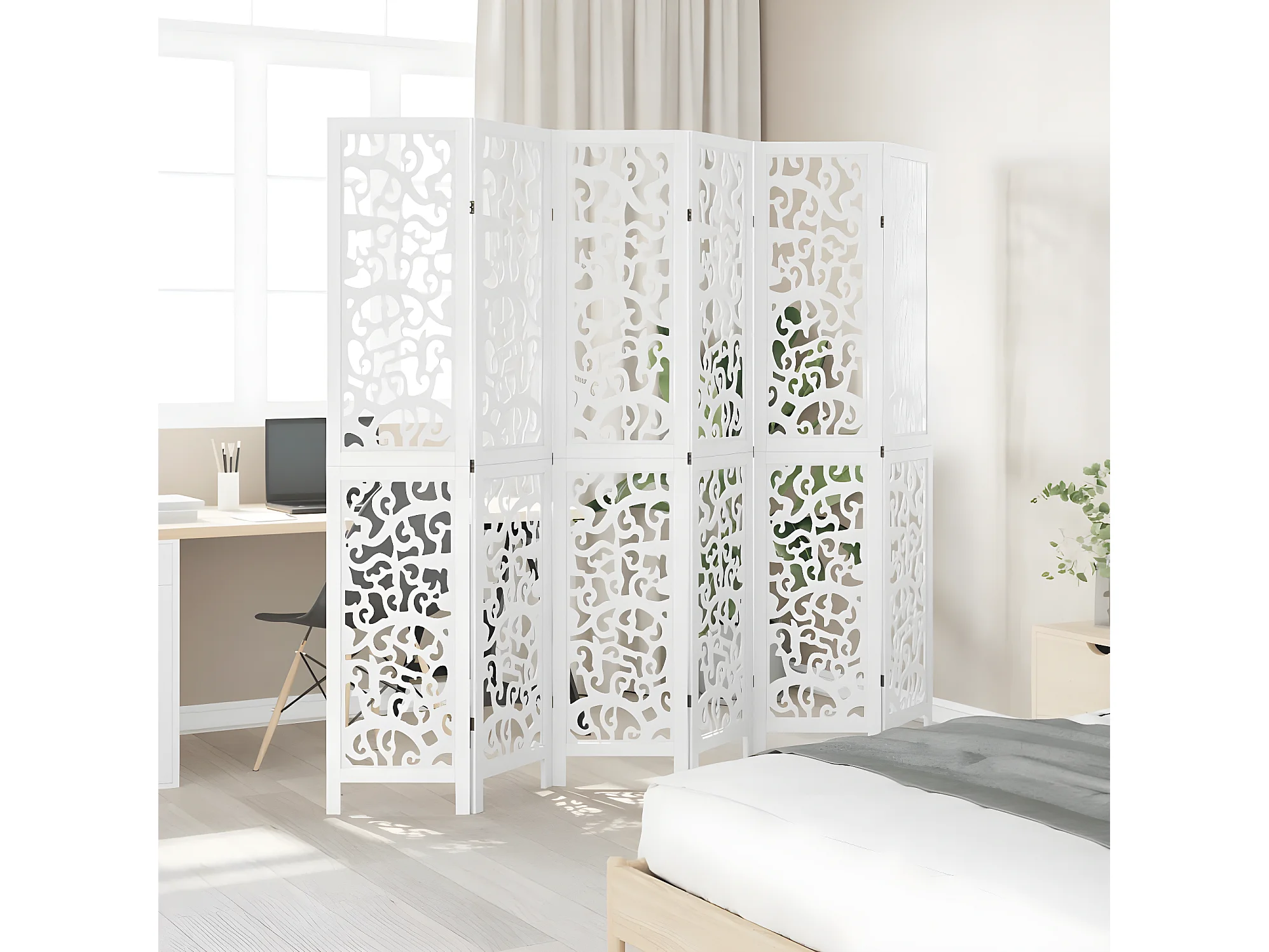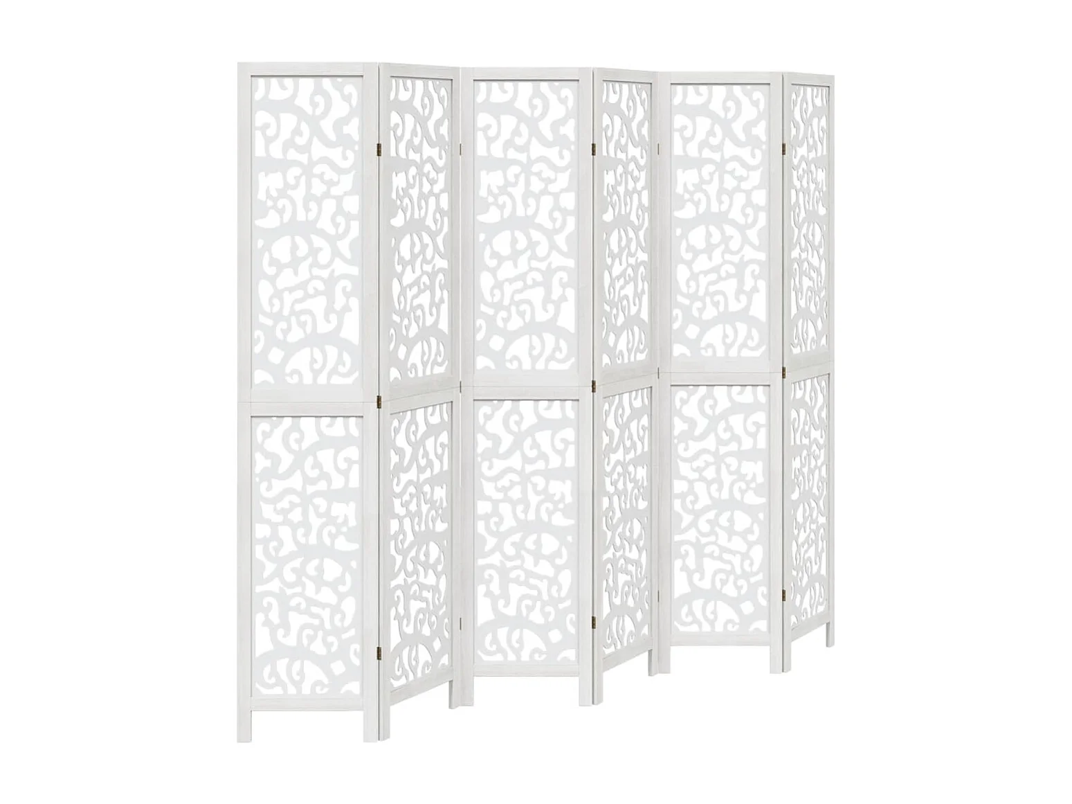 Cloison de séparation 6 panneaux blanc bois de paulownia massif