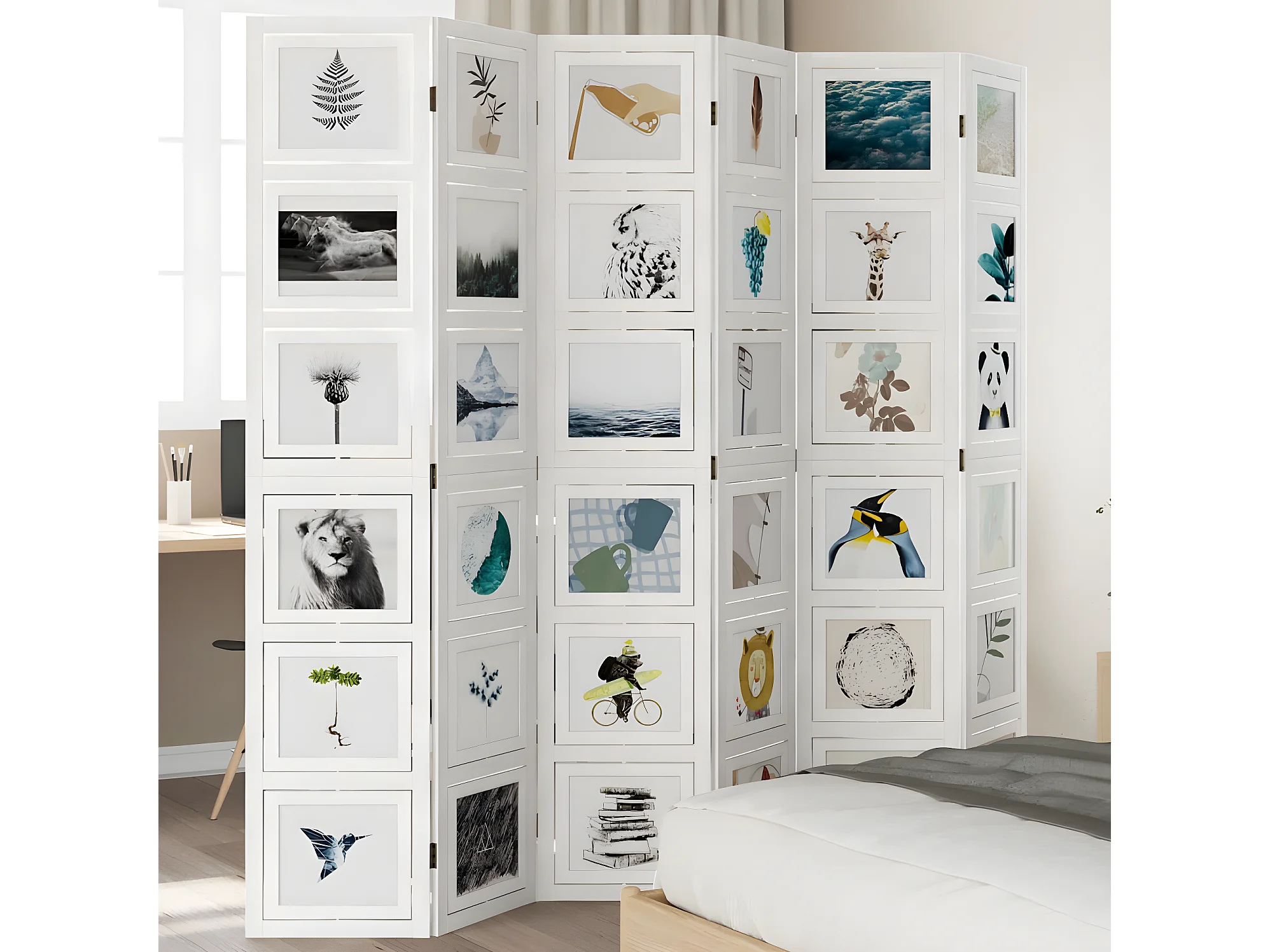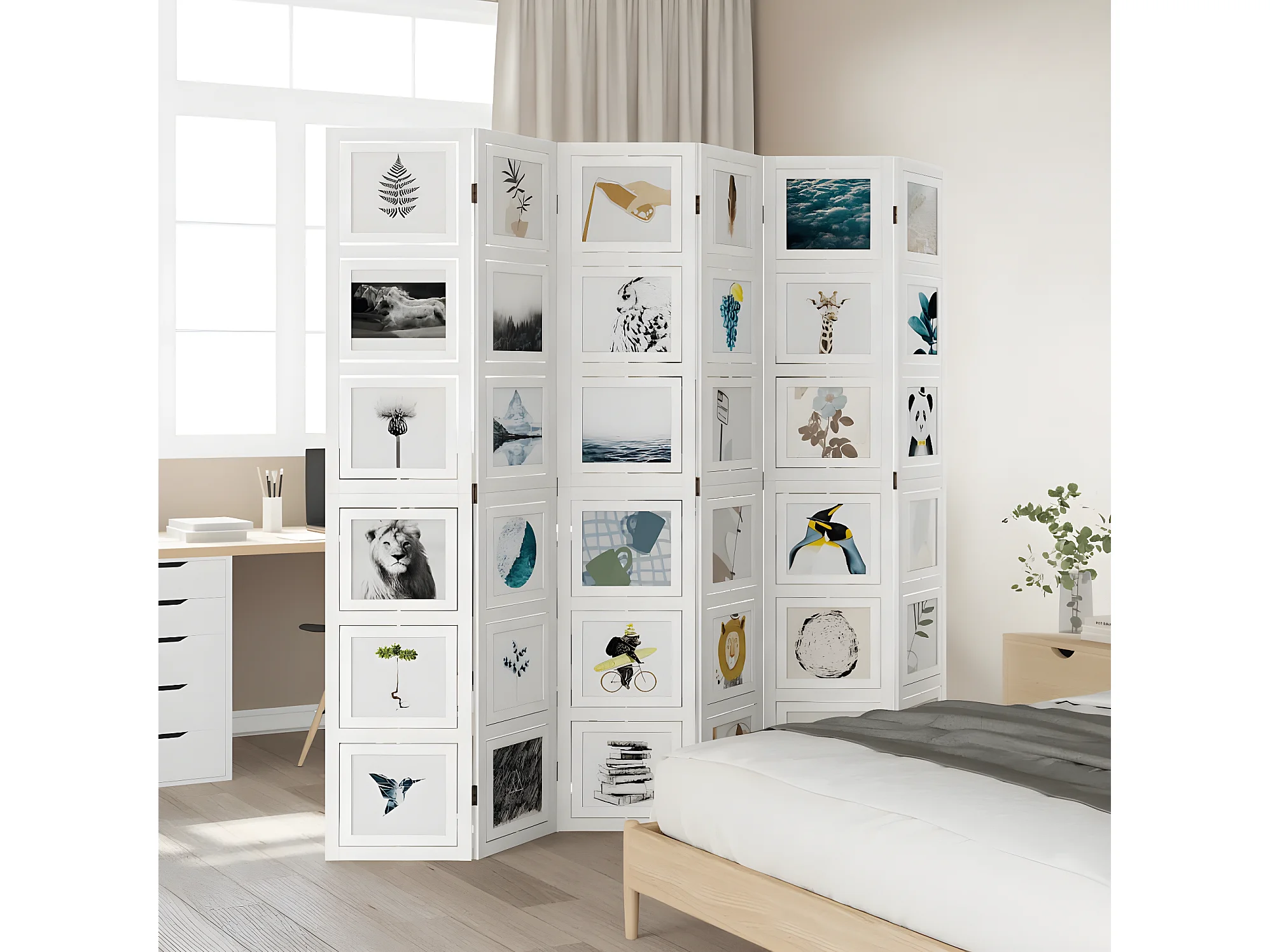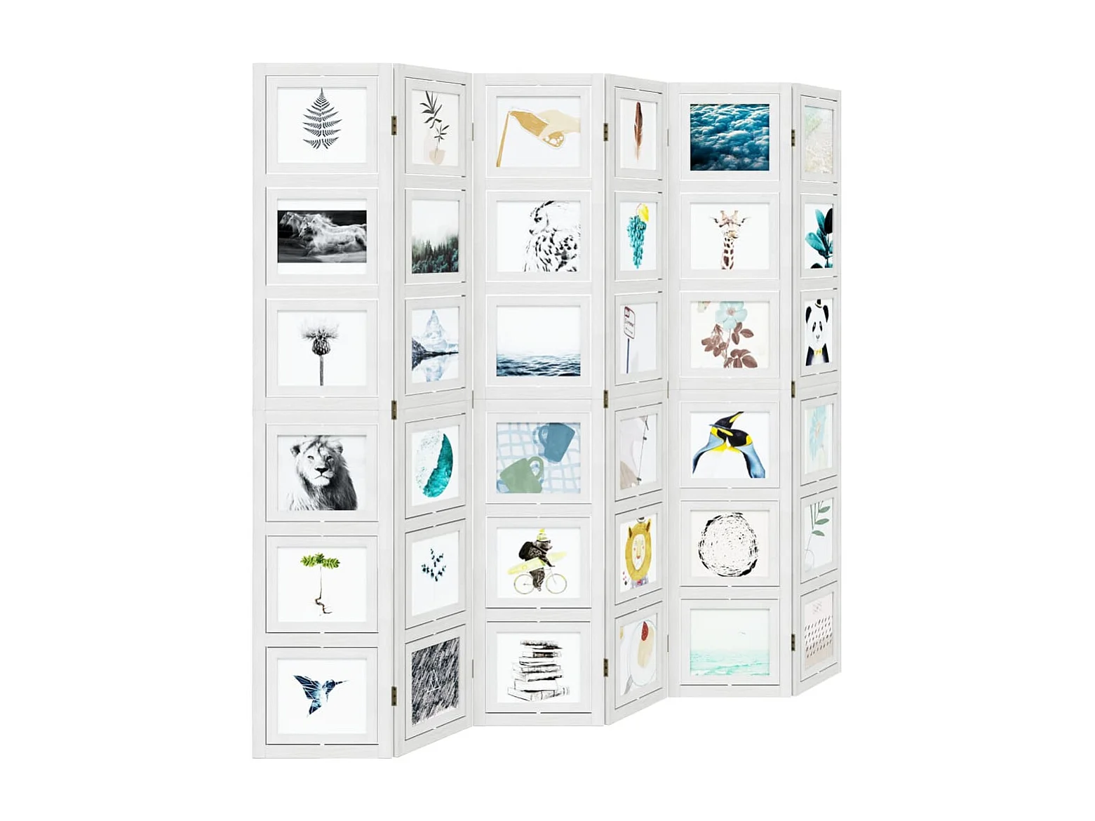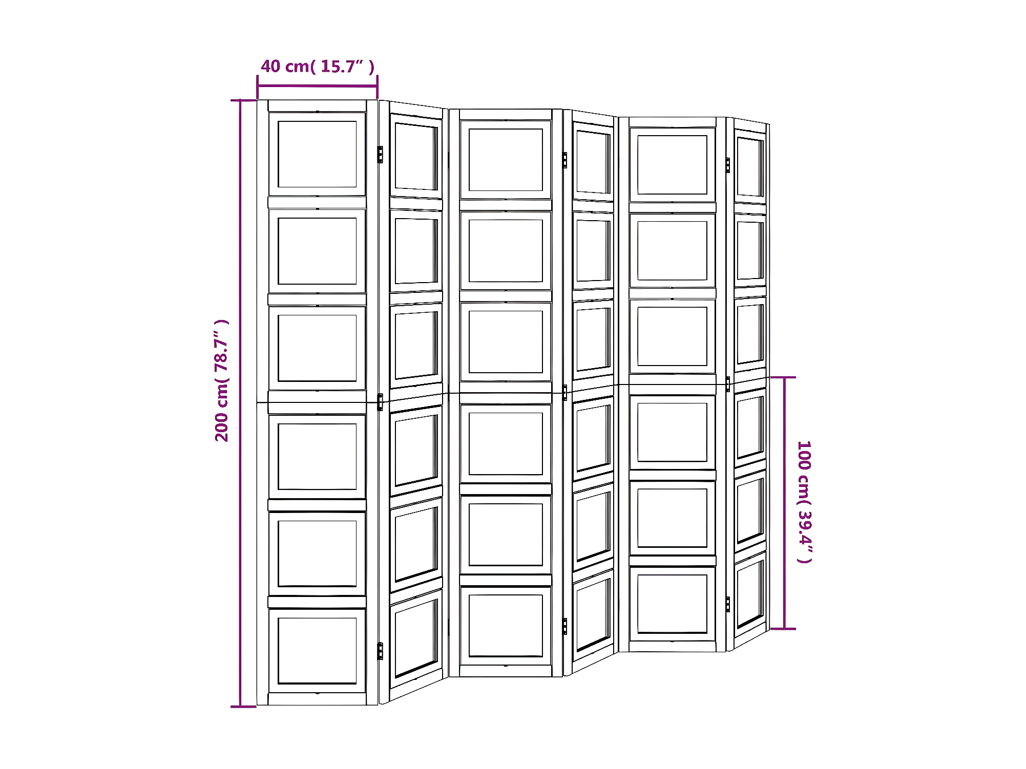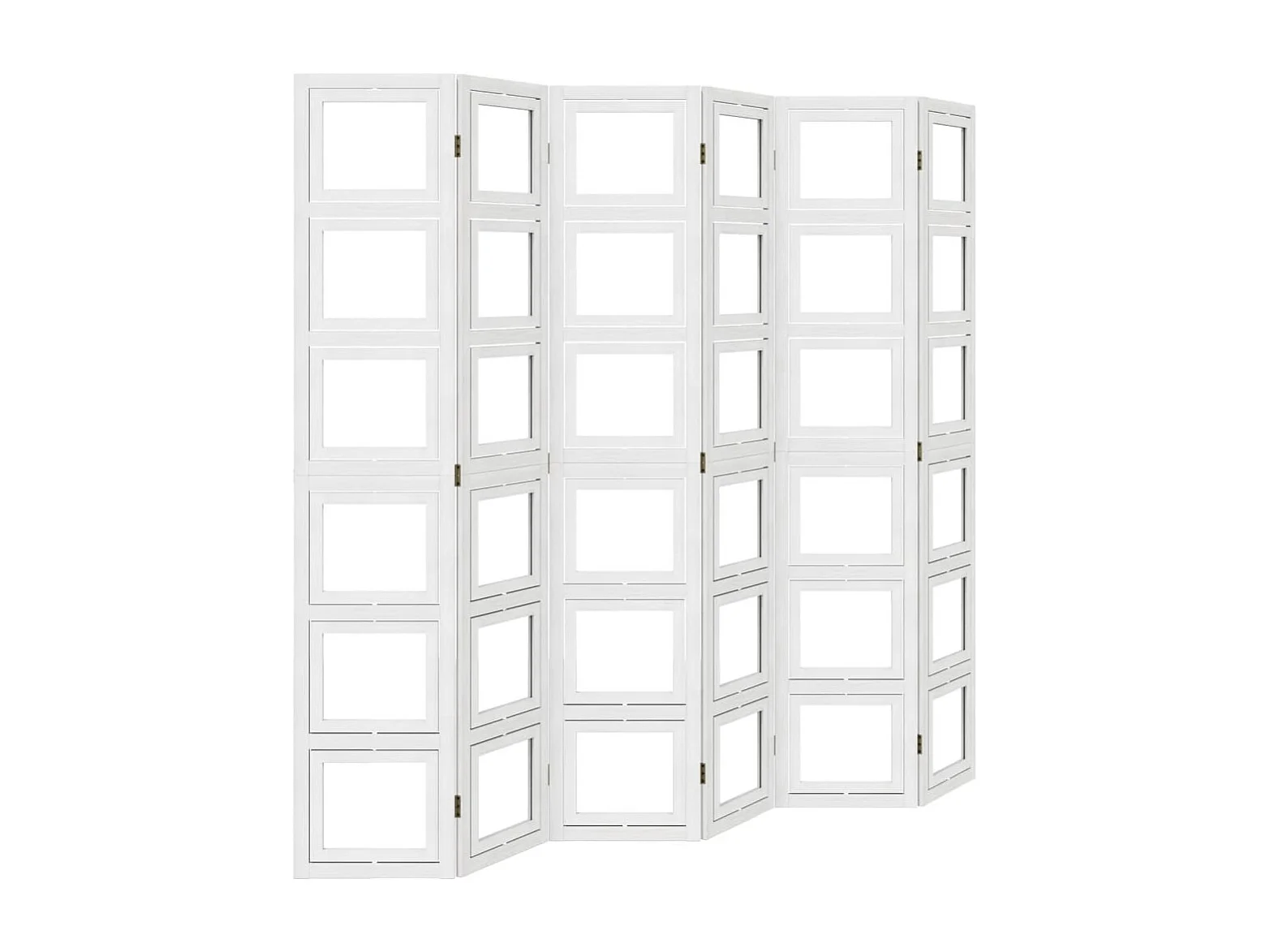 Cloison de séparation 6 panneaux blanc bois de paulownia massif