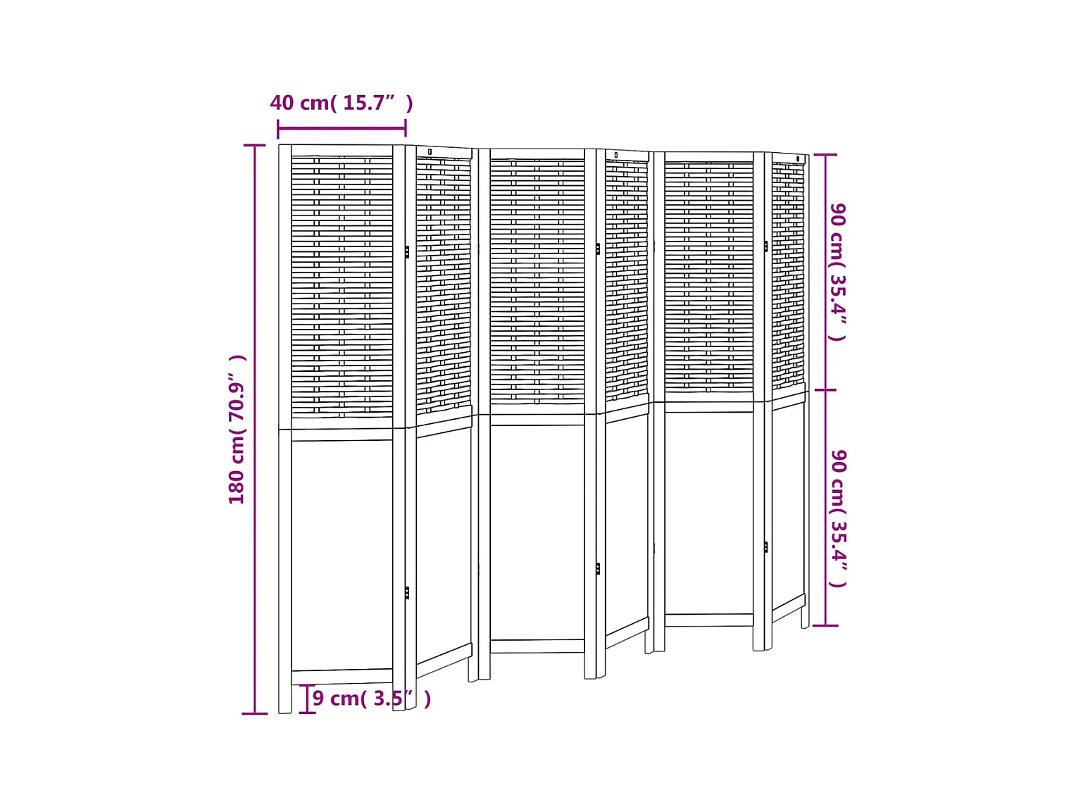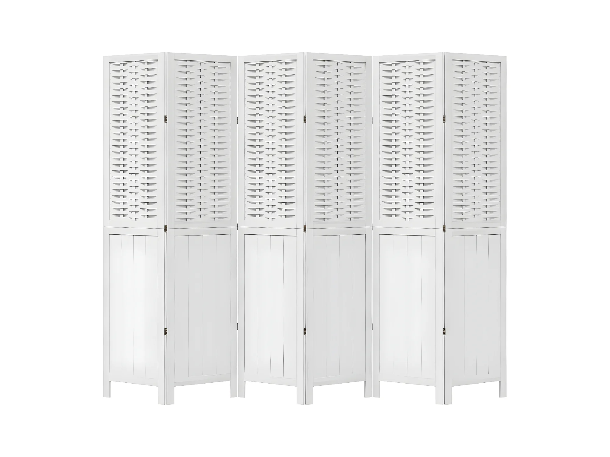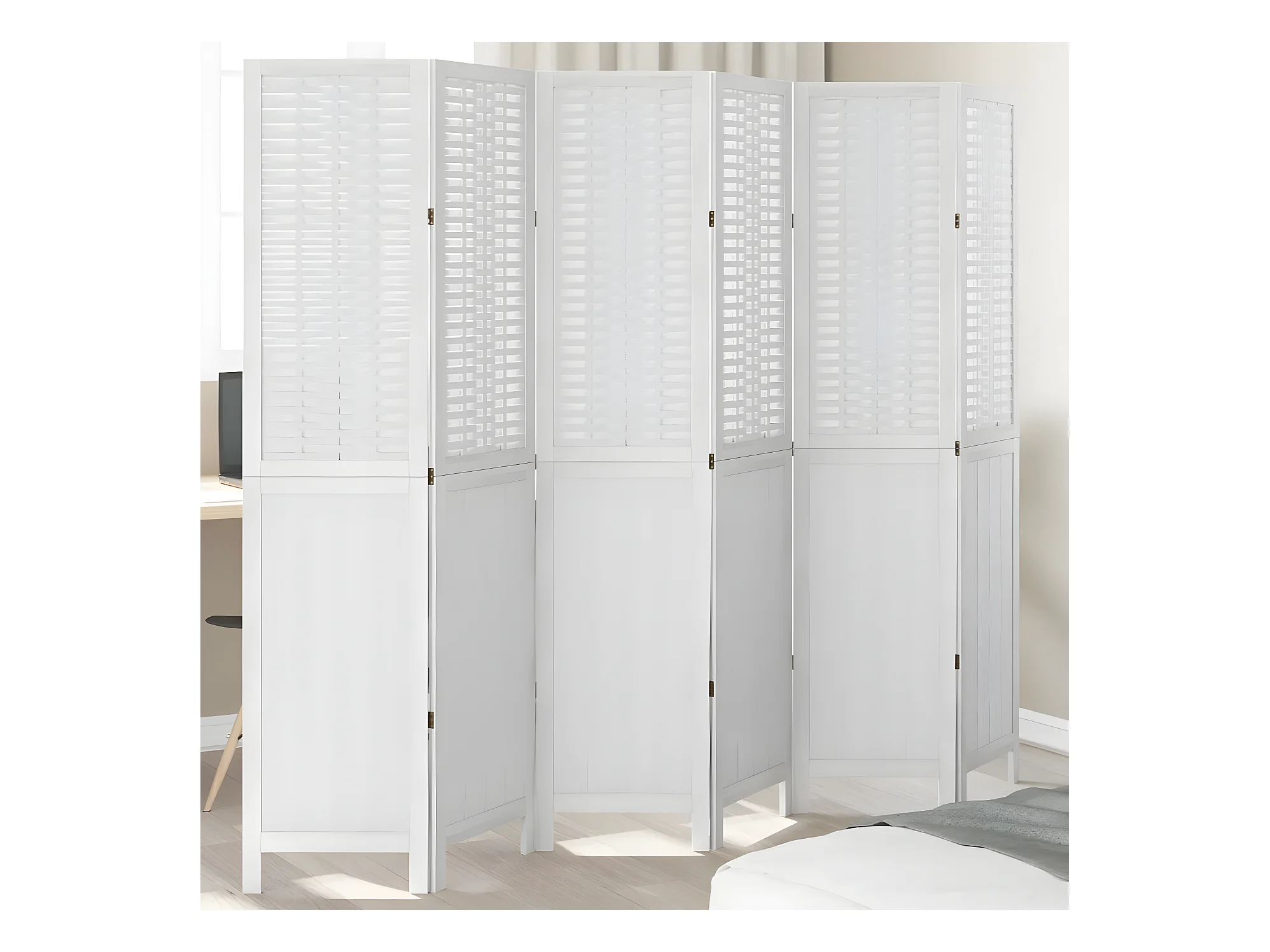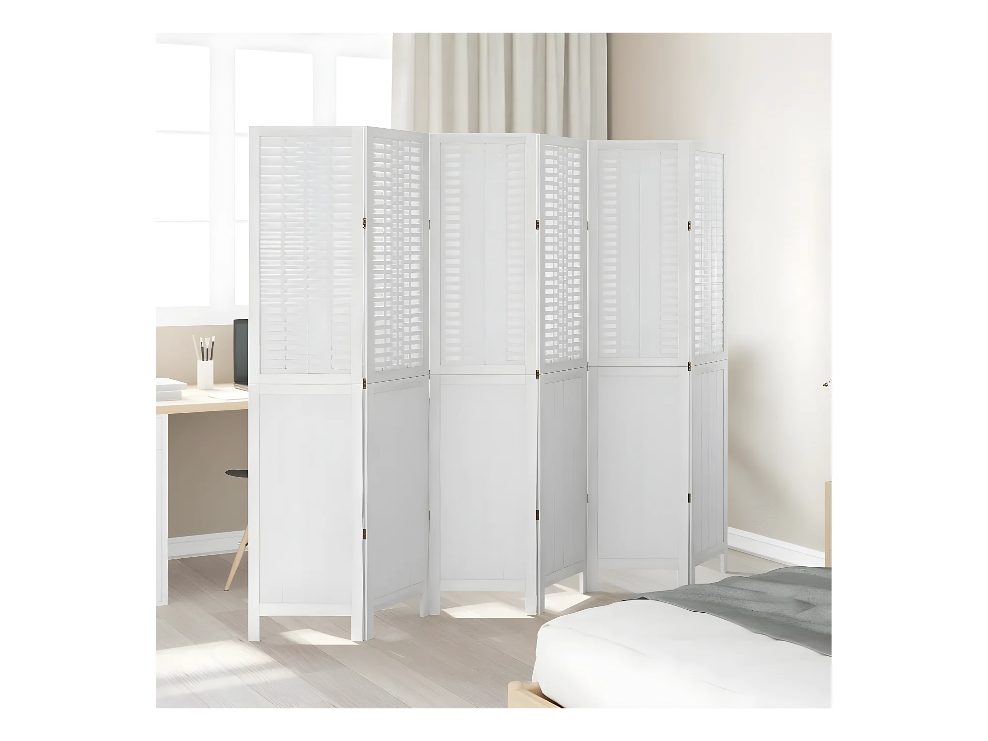 Cloison de séparation 6 panneaux blanc bois de paulownia massif