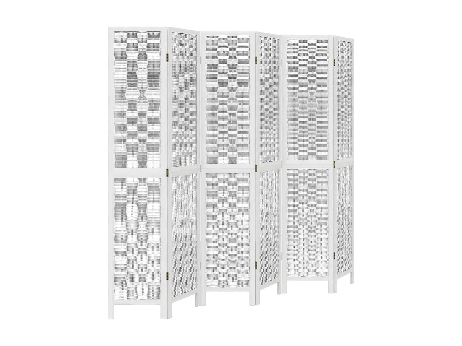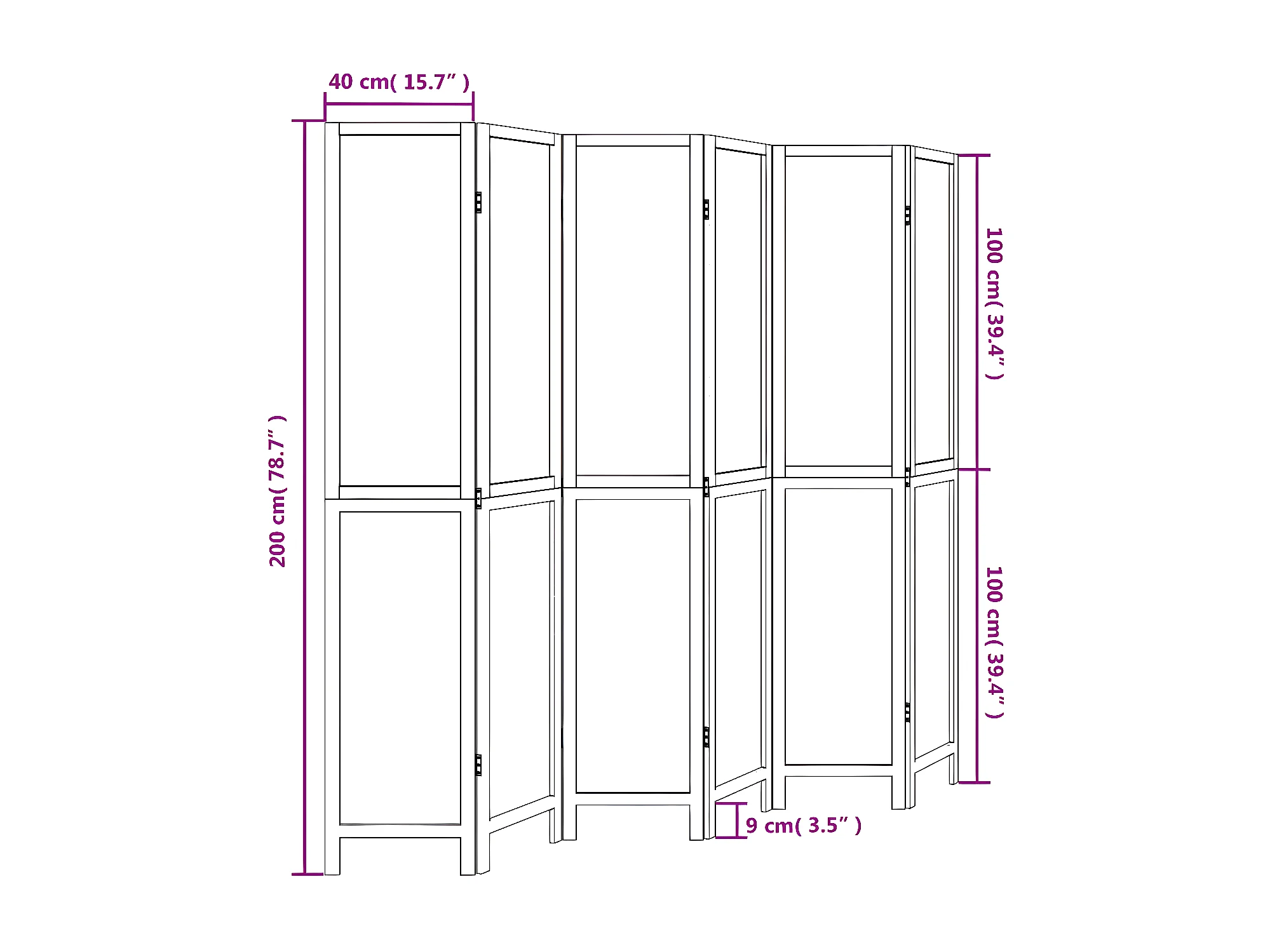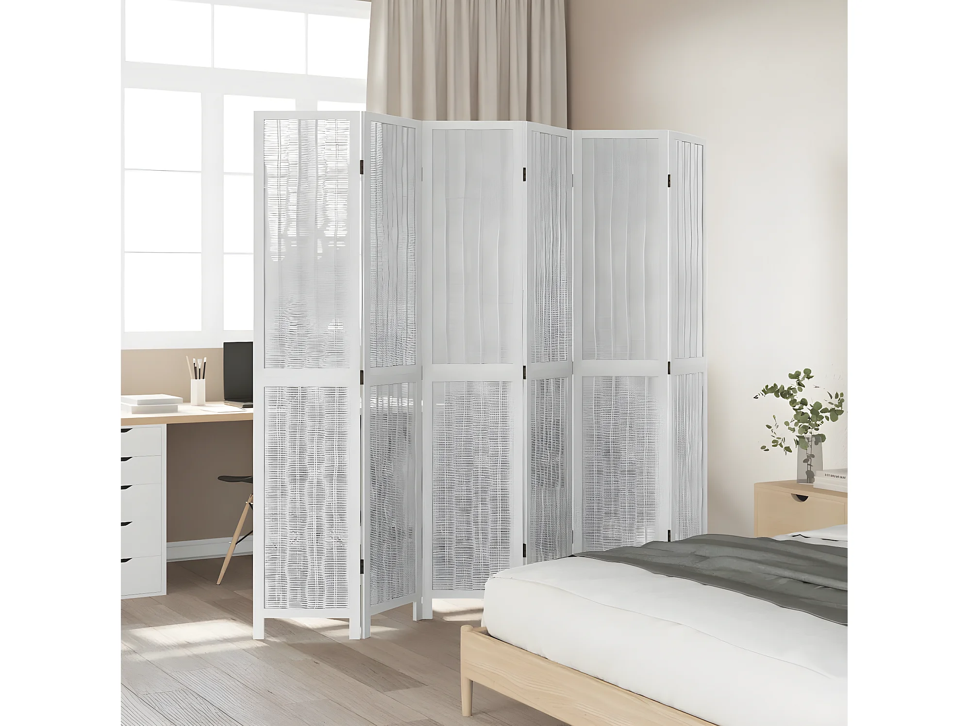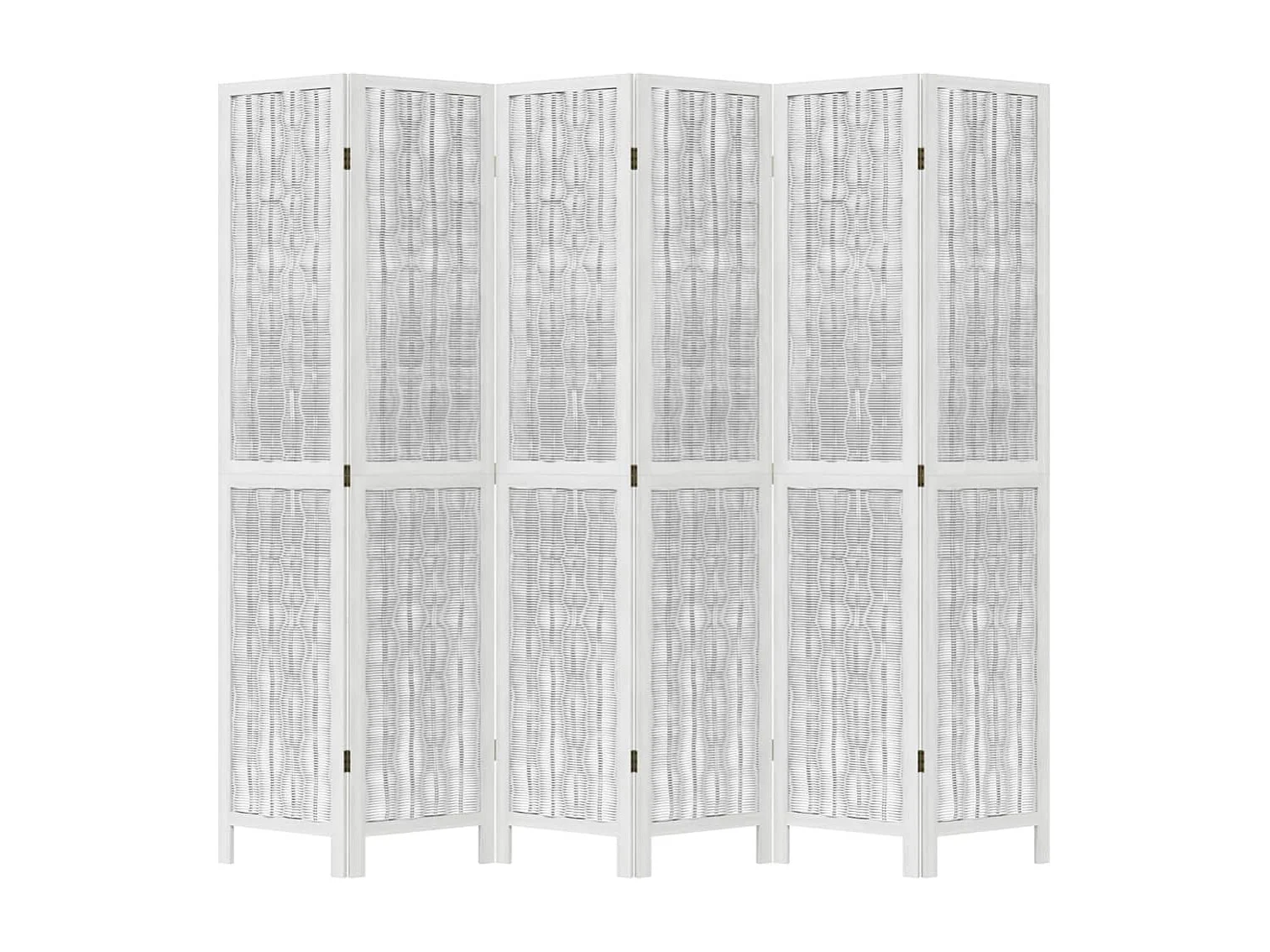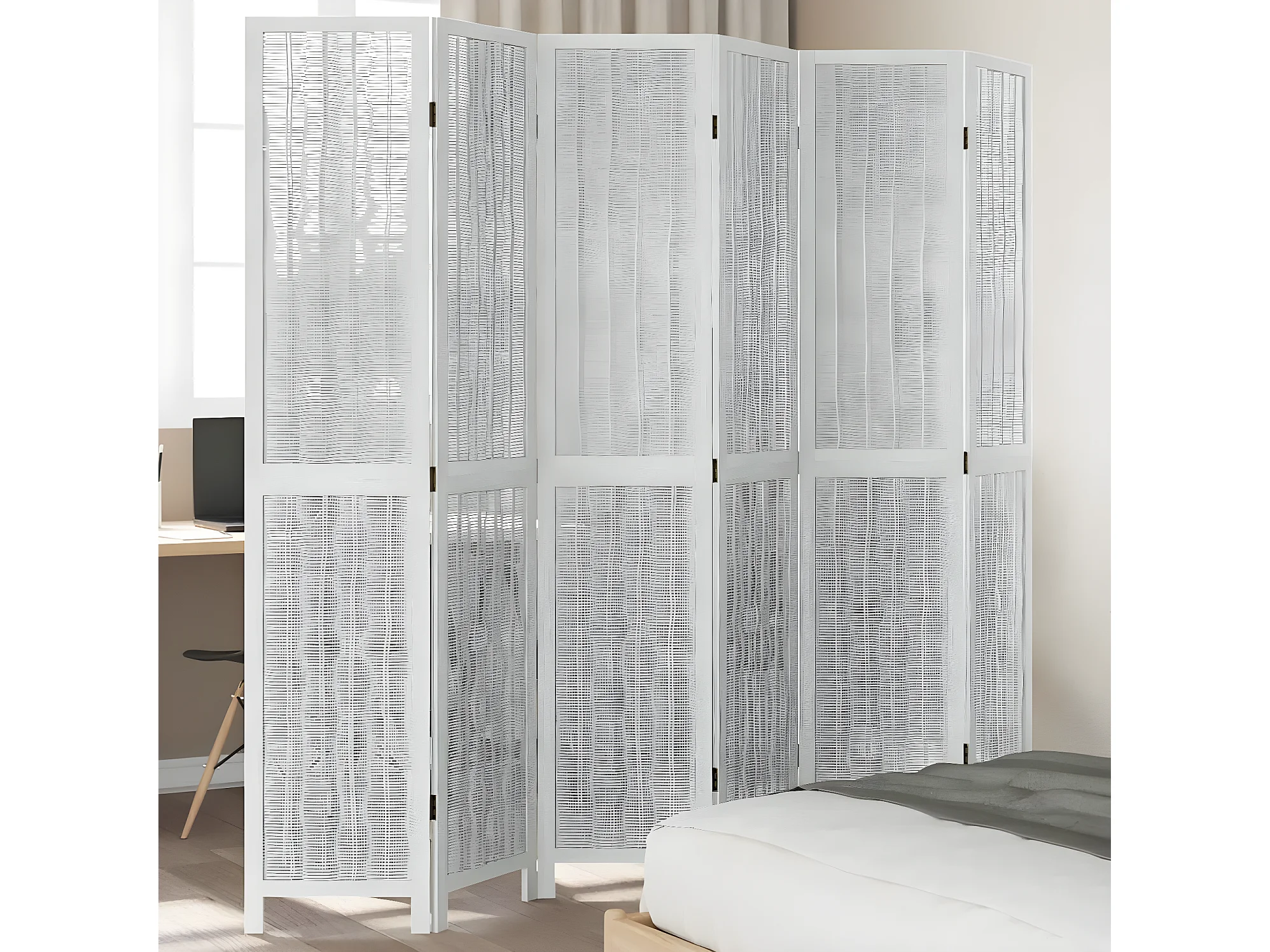 Cloison de séparation 6 panneaux blanc bois de paulownia massif