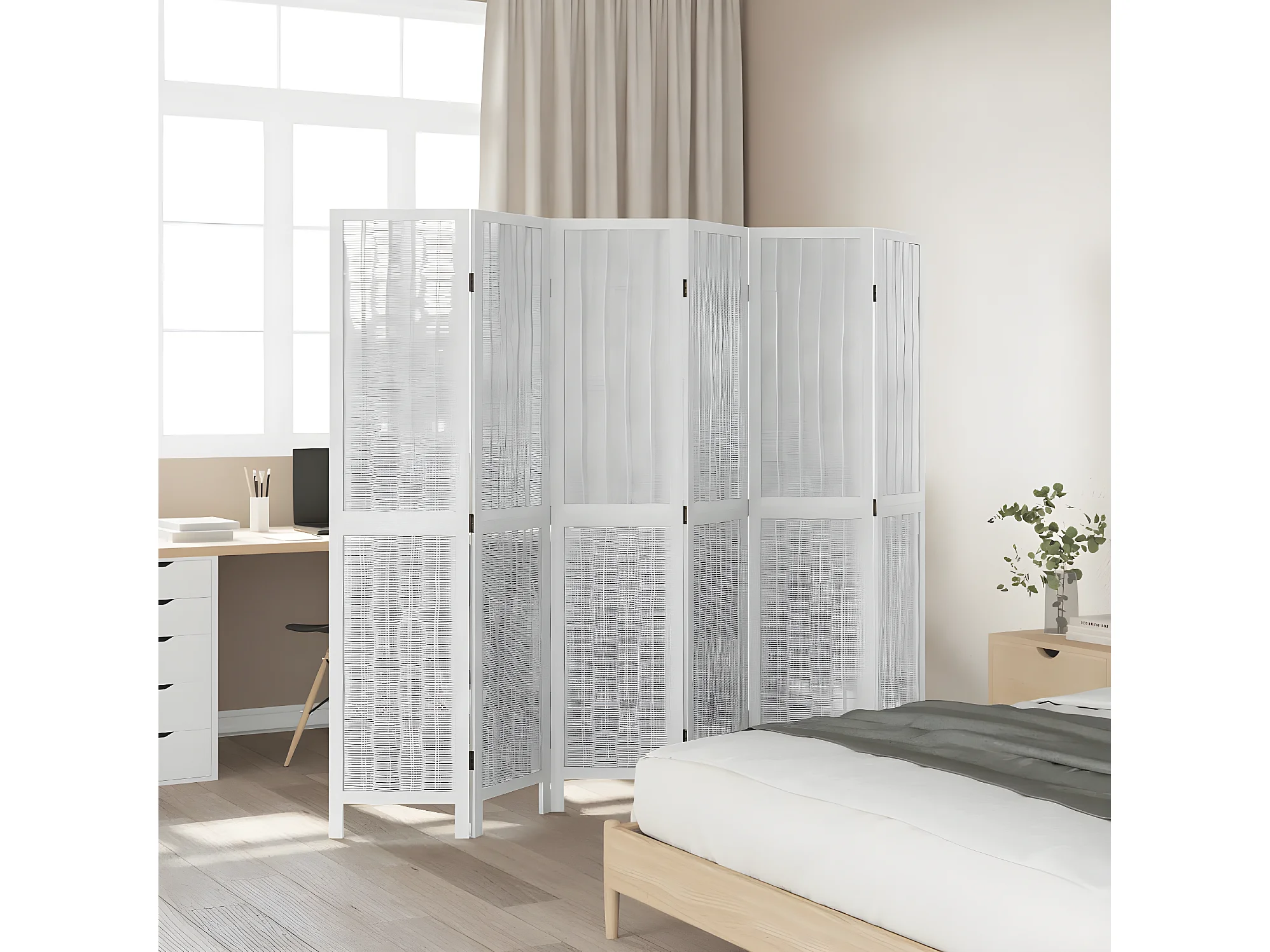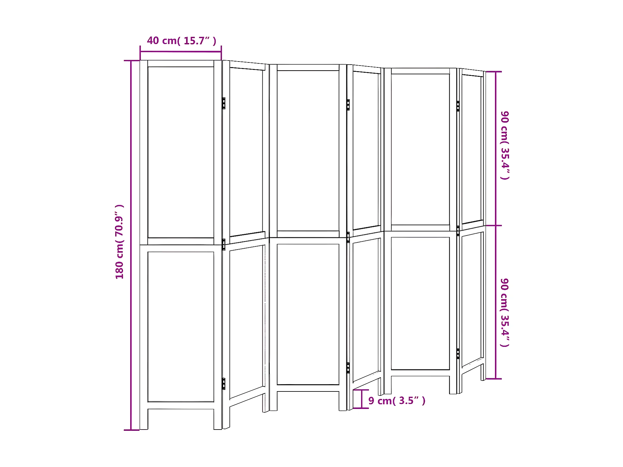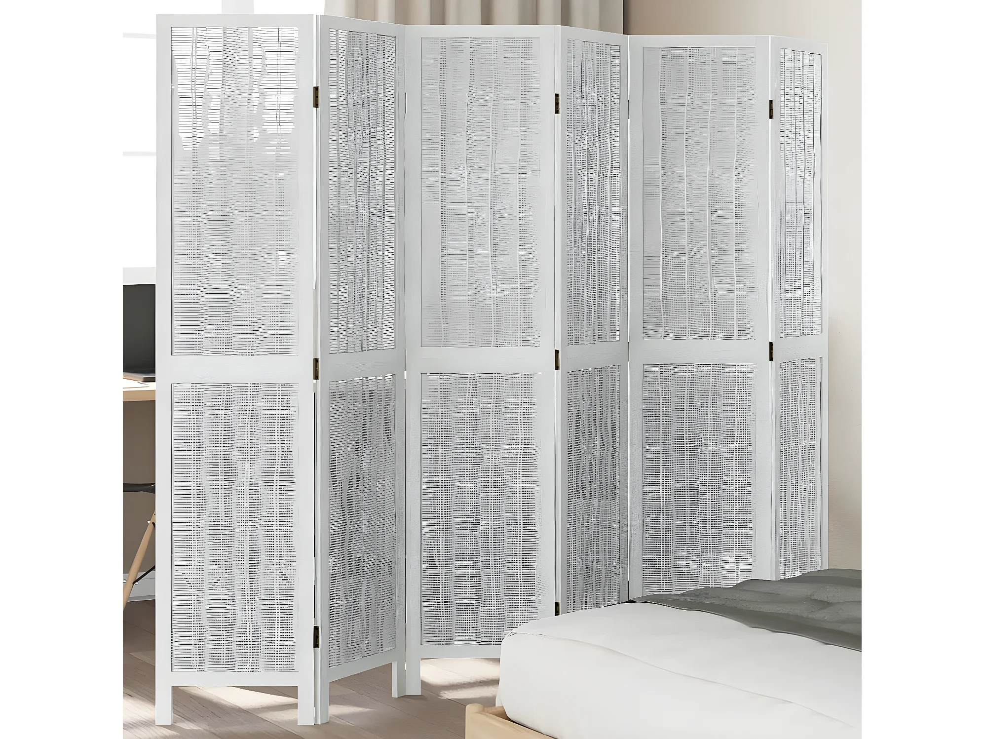 Cloison de séparation 6 panneaux blanc bois de paulownia massif