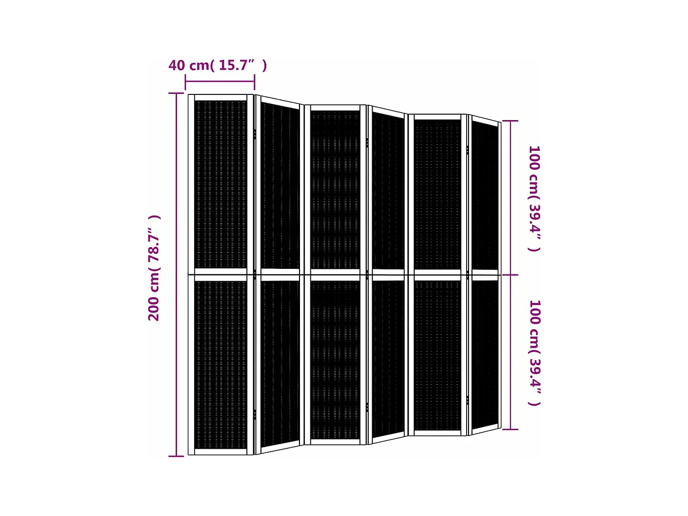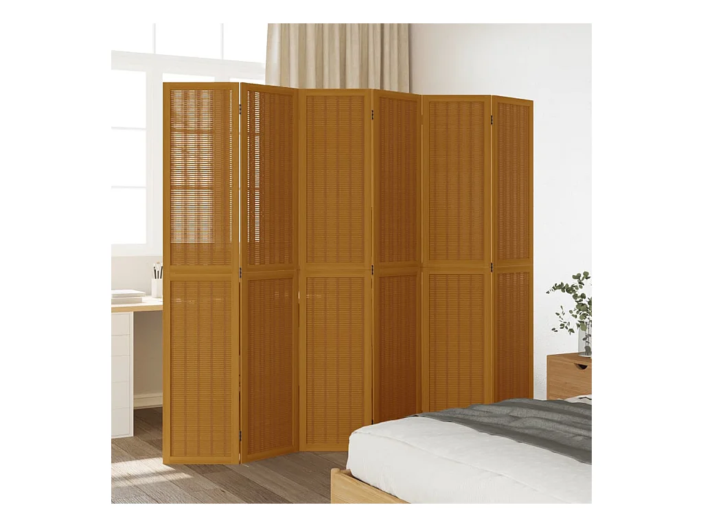 Cloison de séparation 6 panneaux marron bois paulownia massif