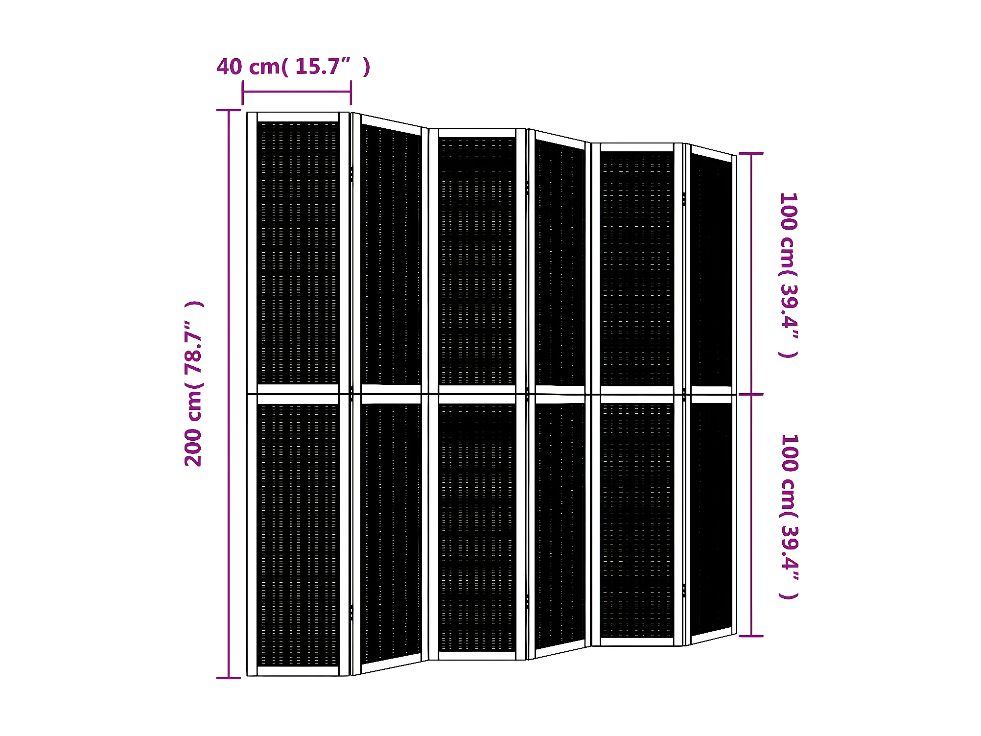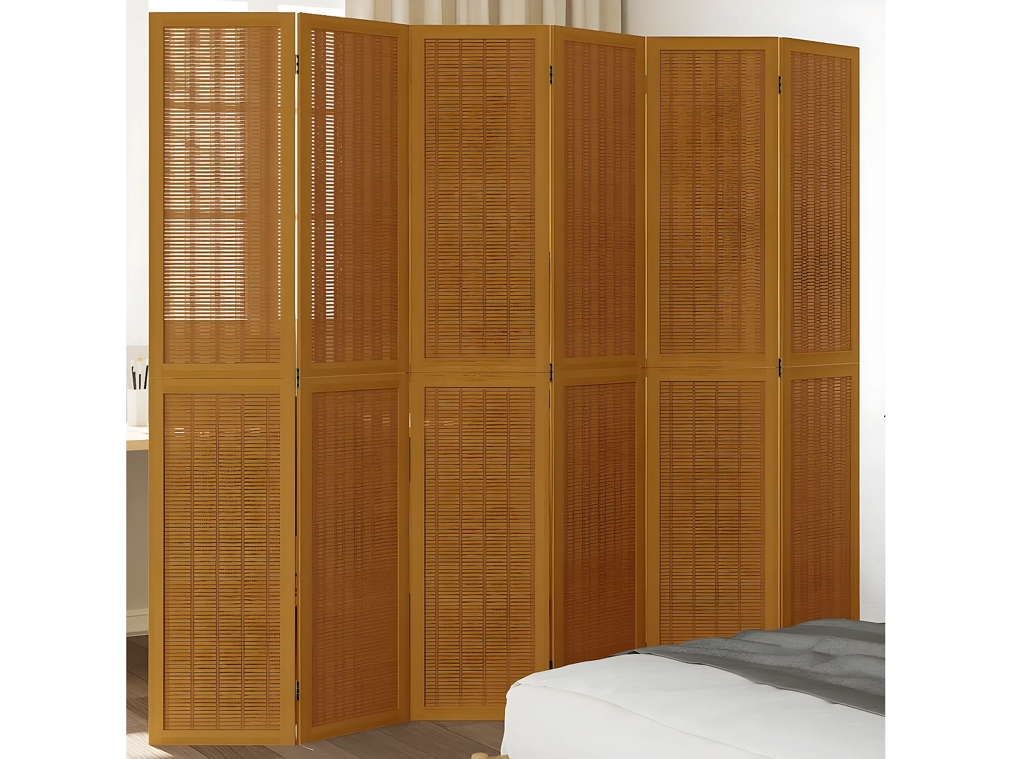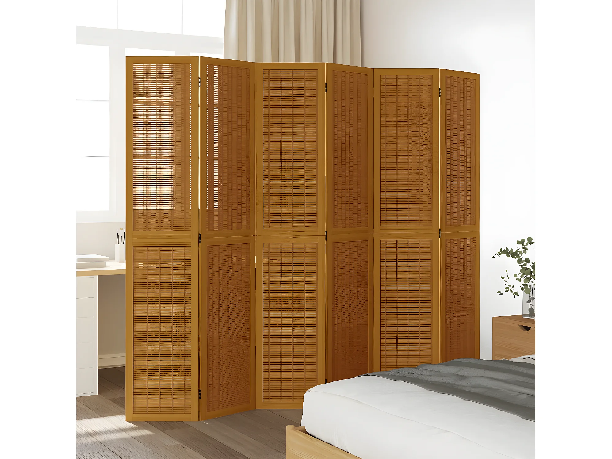 Cloison de séparation 6 panneaux marron bois paulownia massif