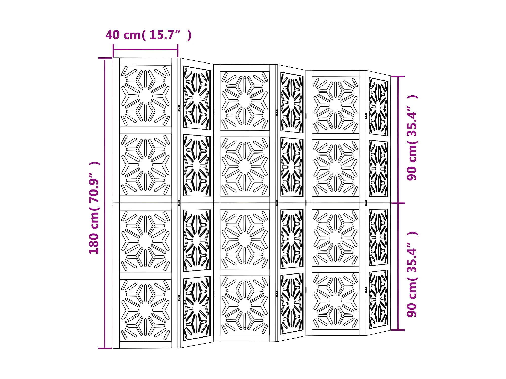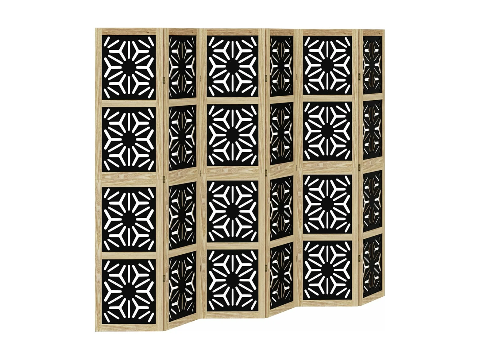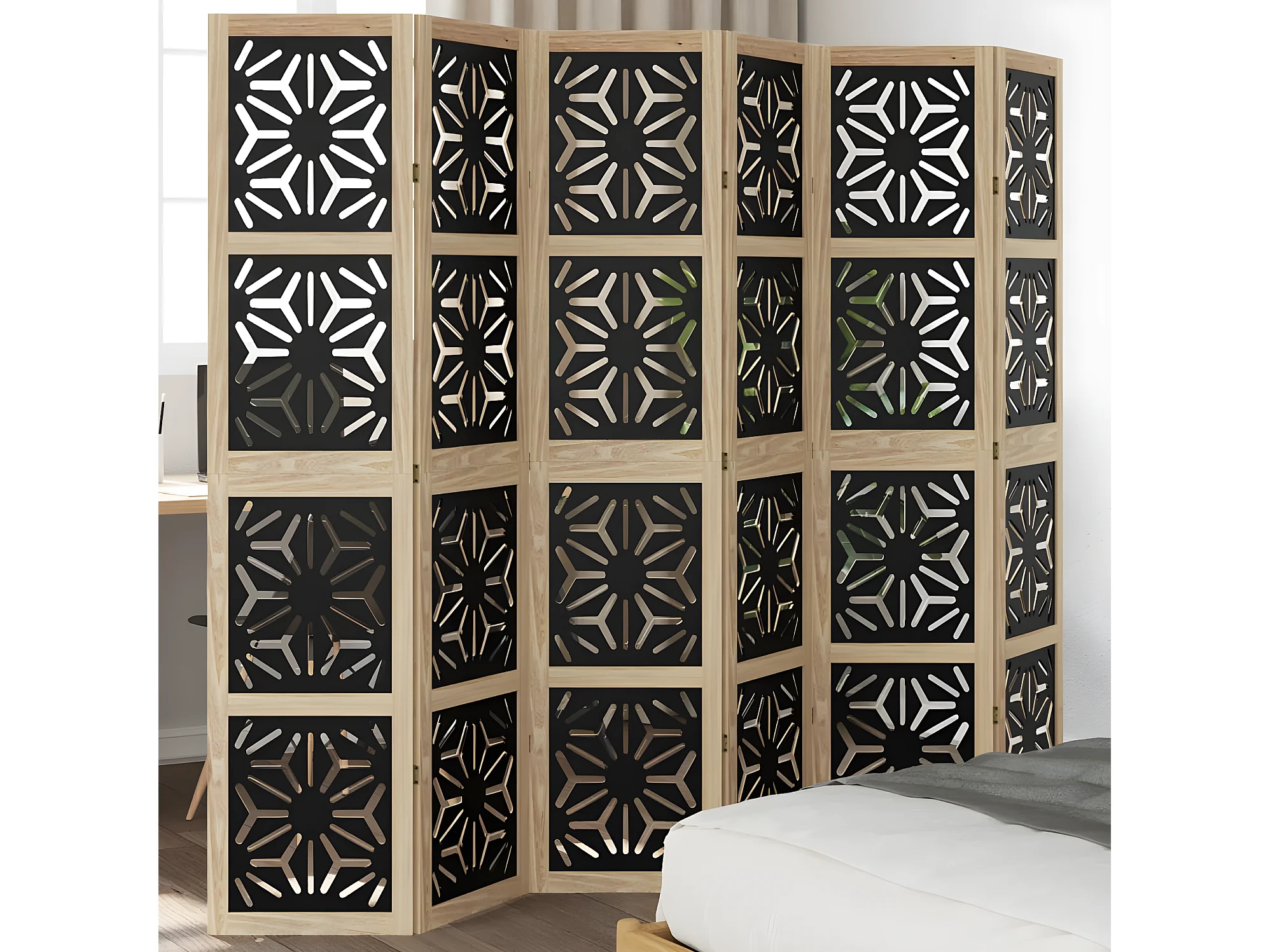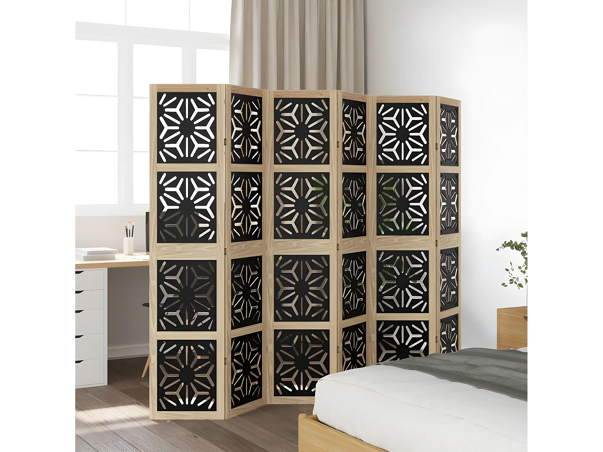 Cloison de séparation 6 panneaux marron noir paulownia massif