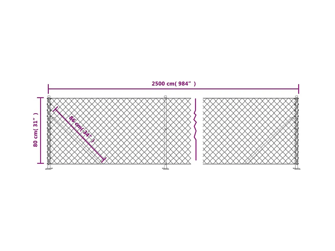 Clôture en mailles de chaîne vert 0,8x25 m