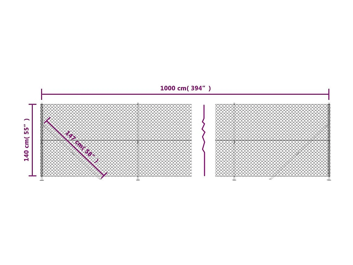 Clôture à mailles losangées avec piquet d'ancrage vert 1,4x10 m