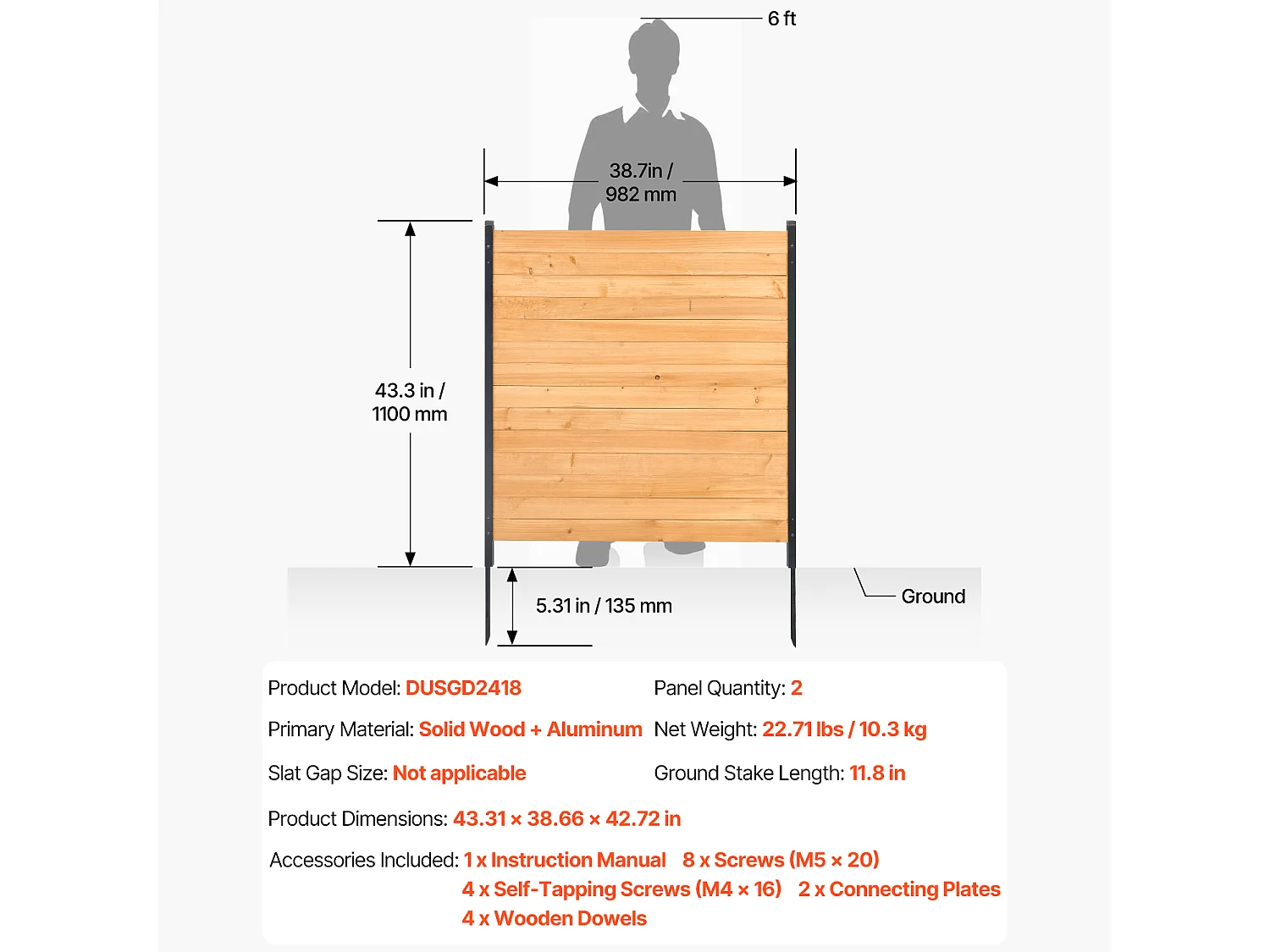 Clôture de Confidentialité Bois SucceBuy, 2 Panneaux, 110 x 98,2 cm pour Climatiseur