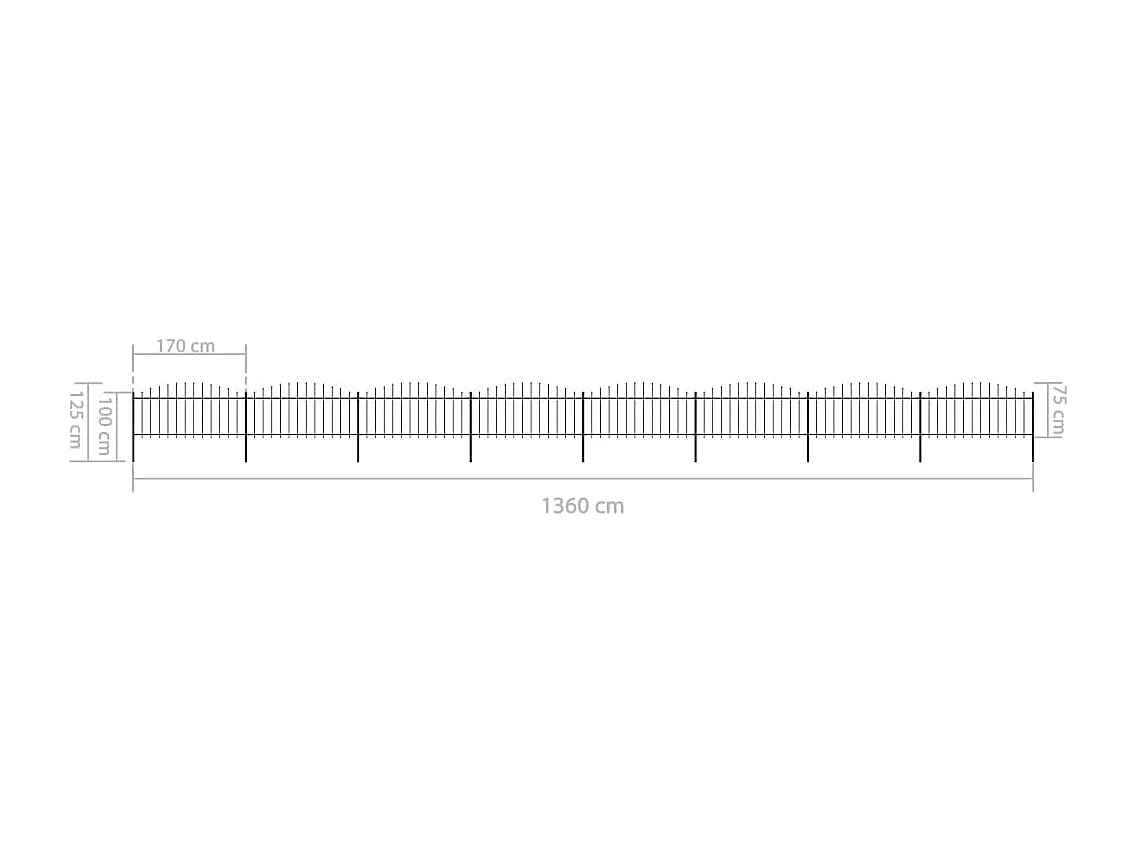 Clôture de jardin à dessus en lance Acier (0,5-0,75)x13,6m Noir