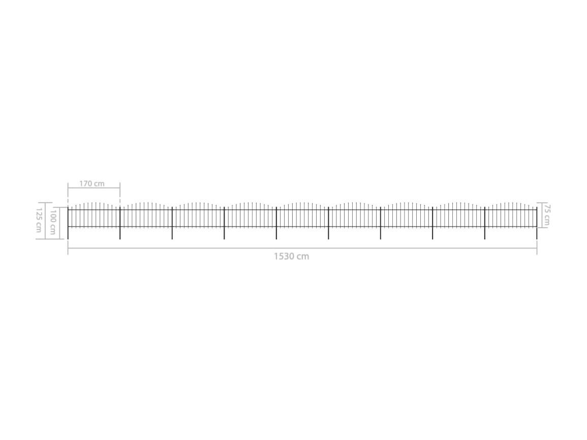 Clôture de jardin à dessus en lance Acier (0,5-0,75)x15,3m Noir