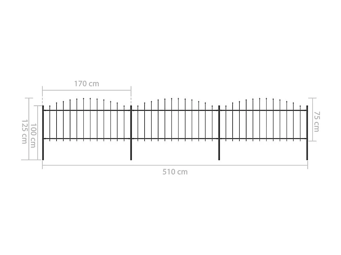Clôture de jardin à dessus en lance Acier (0,5-0,75)x5,1 m Noir