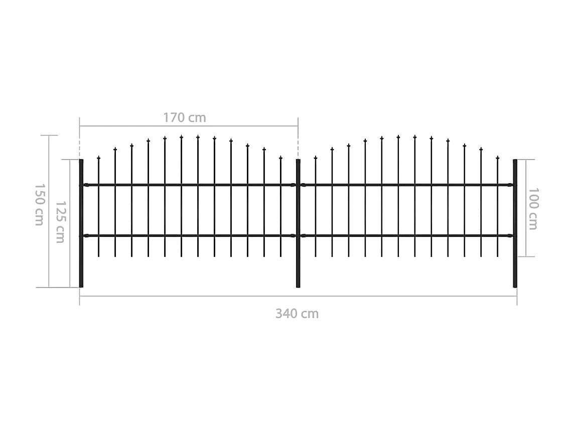 Clôture de jardin à dessus en lance Acier (0,75-1)x3,4 m Noir