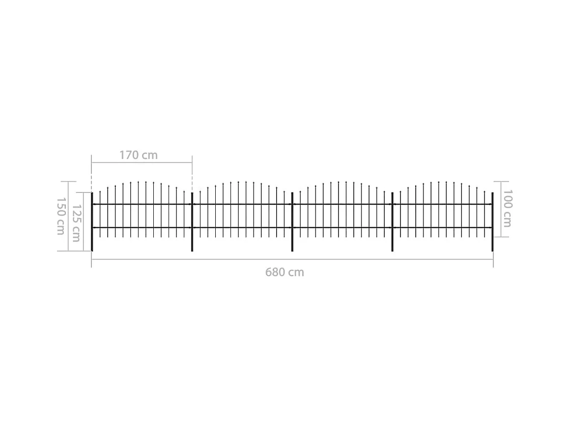 Clôture de jardin à dessus en lance Acier (0,75-1)x6,8 m Noir
