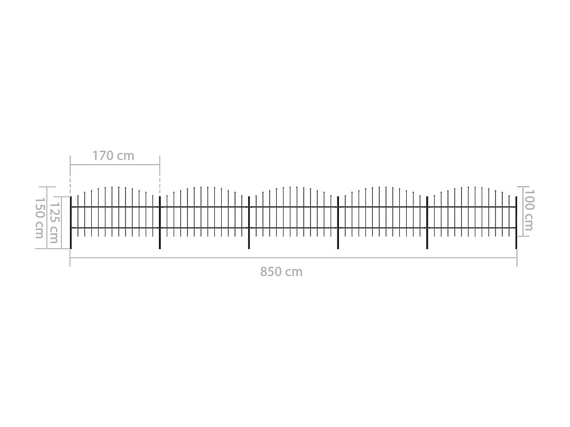 Clôture de jardin à dessus en lance Acier (0,75-1)x8,5 m Noir