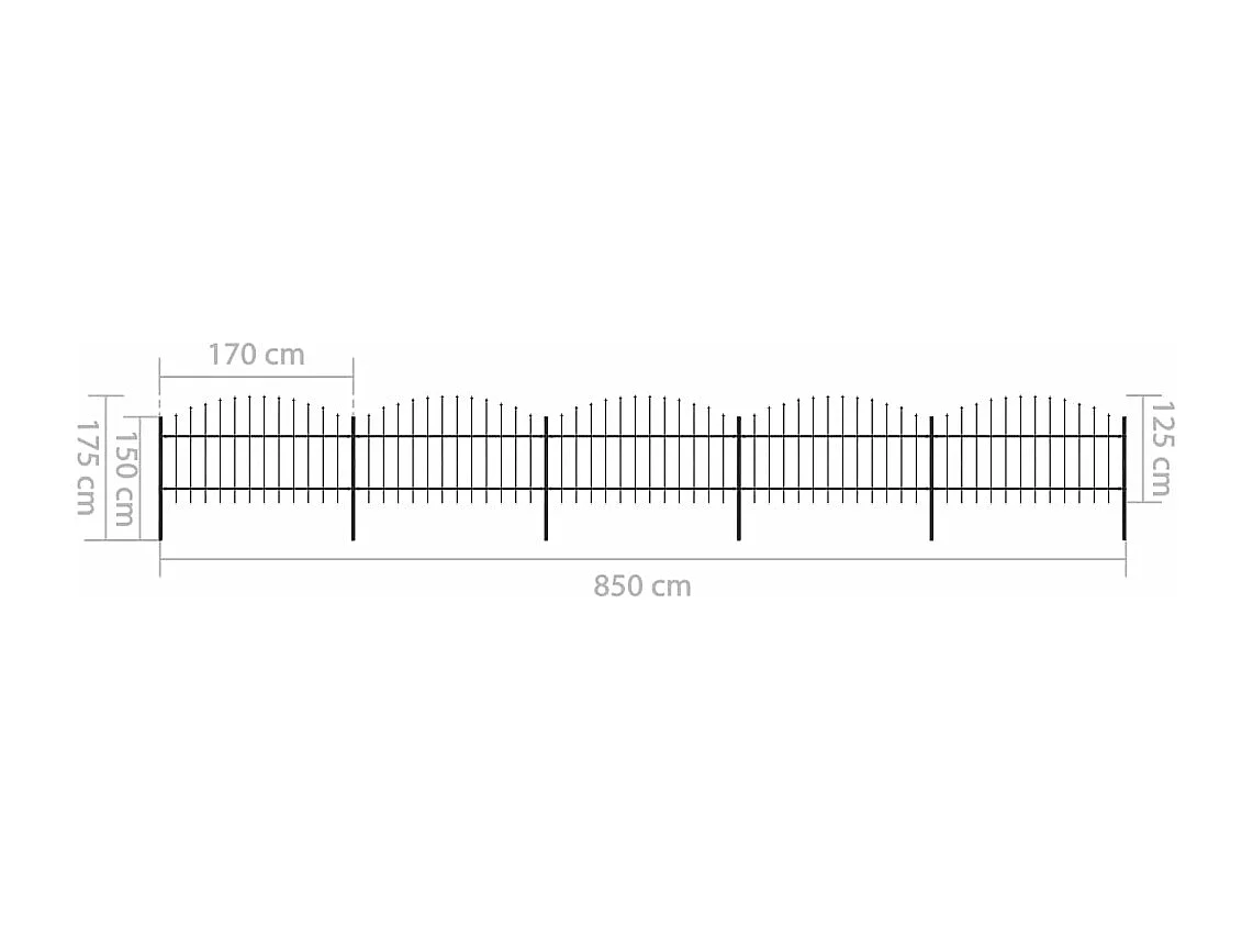 Clôture de jardin à dessus en lance Acier (1-1,25)x8,5 m Noir