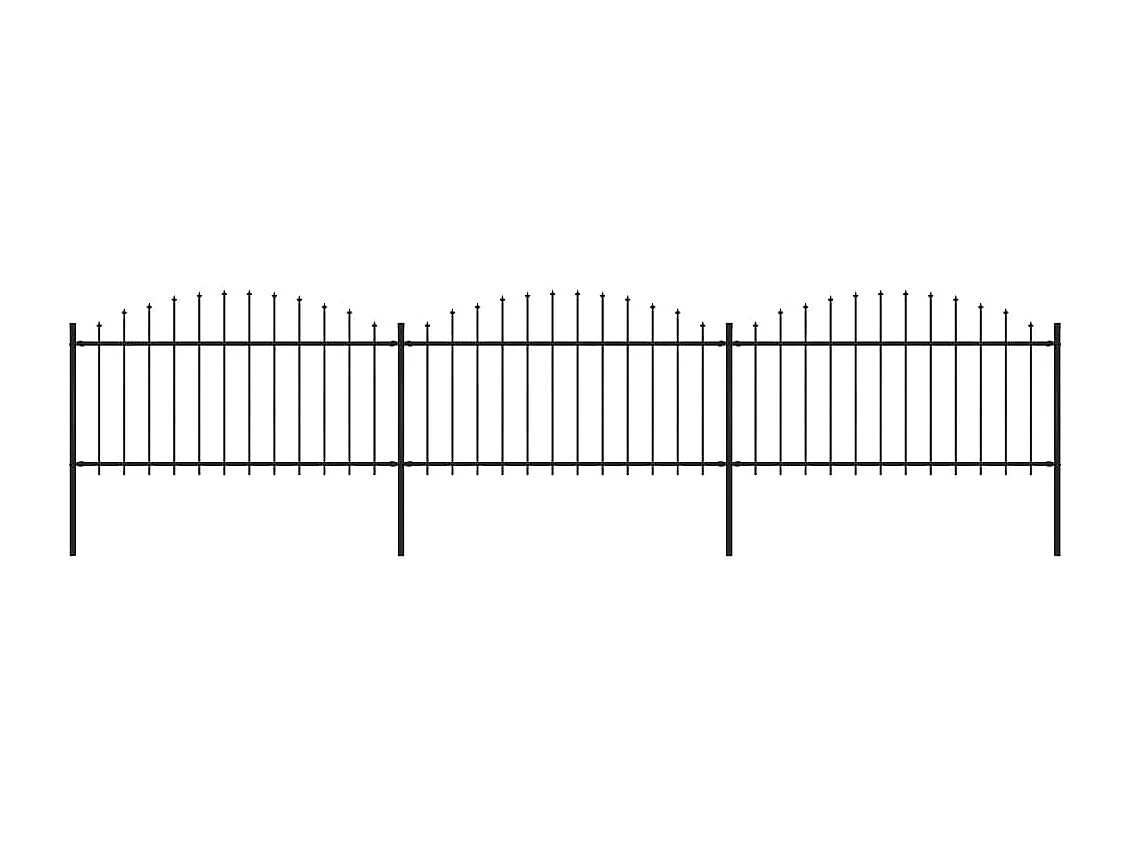 Clôture de jardin à dessus en lance Acier (1,25-1,5)x5,1 m Noir