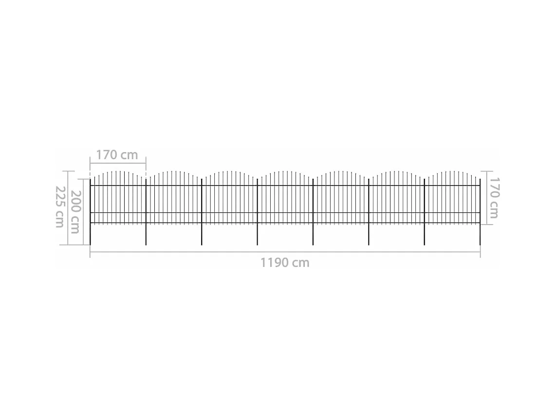 Clôture de jardin à dessus en lance Acier (1,5-1,75)x11,9m Noir