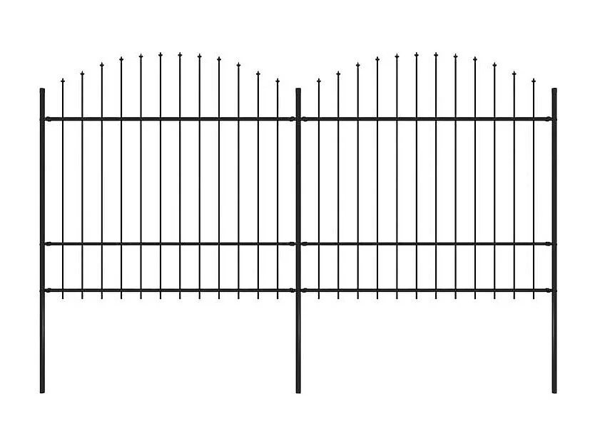 Clôture de jardin à dessus en lance Acier (1,5-1,75)x3,4 m Noir