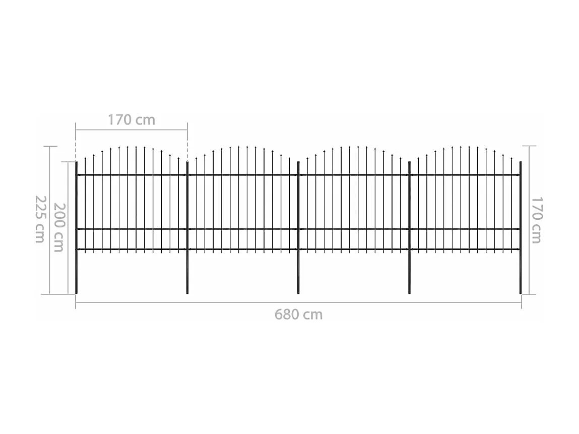 Clôture de jardin à dessus en lance Acier (1,5-1,75)x6,8 m Noir
