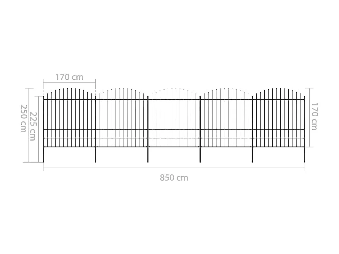 Clôture de jardin à dessus en lance Acier (1,75-2)x8,5 m Noir