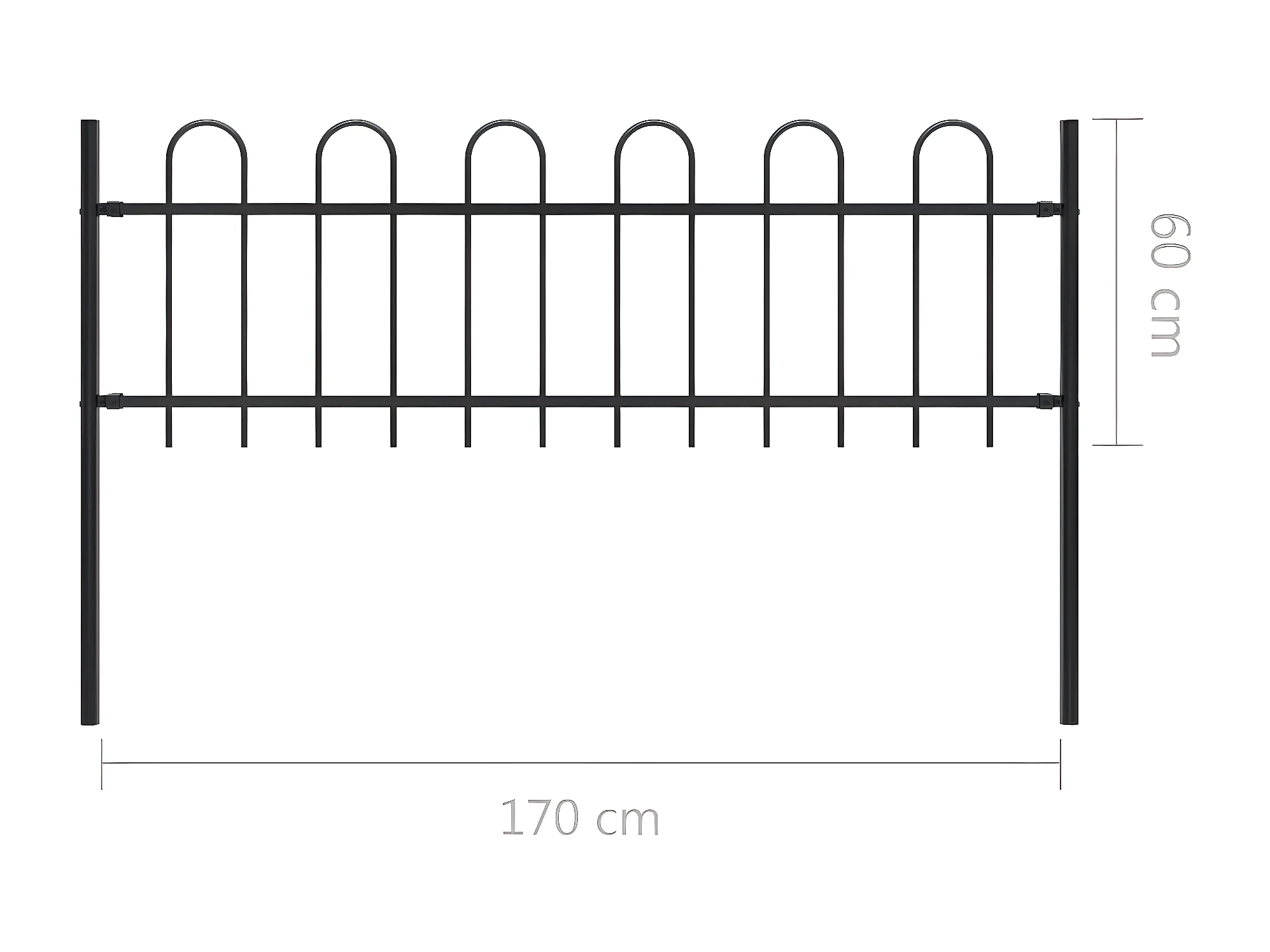 Clôture de jardin avec dessus en cerceau Acier 8,5 x 0,6 m Noir