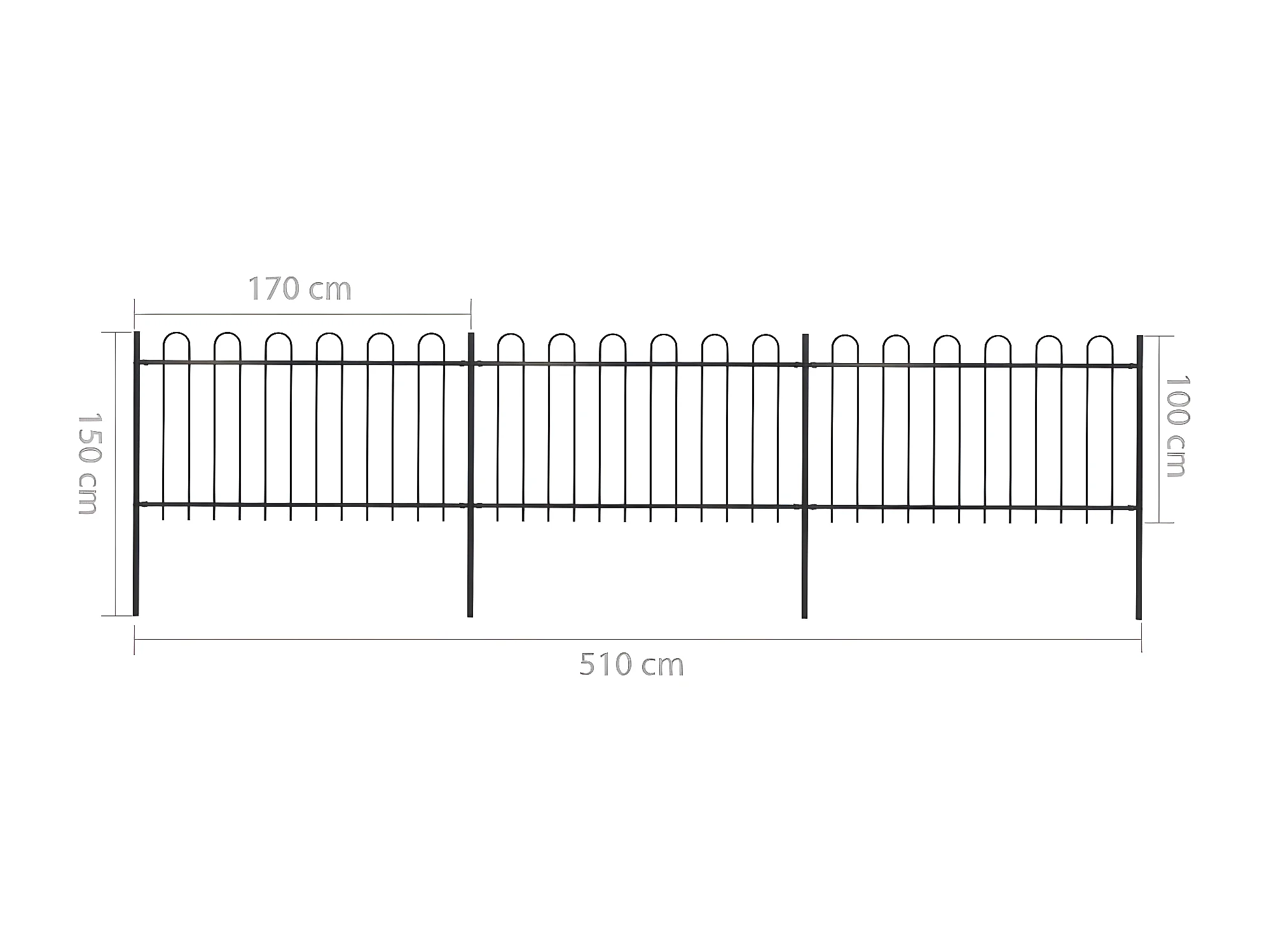 Clôture de jardin avec dessus en cerceau Acier 5,1 x 1 m Noir