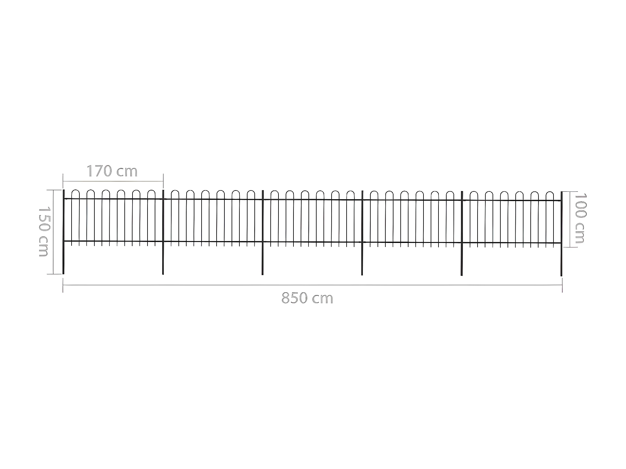 Clôture de jardin avec dessus en cerceau Acier 8,5 x 1 m Noir