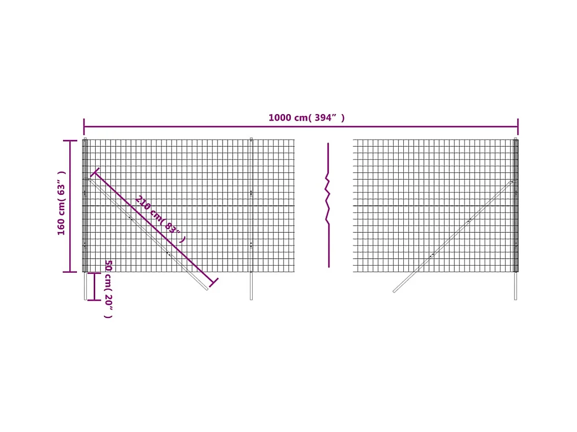 Clôture en treillis métallique et ancrage anthracite 1,6x10 m